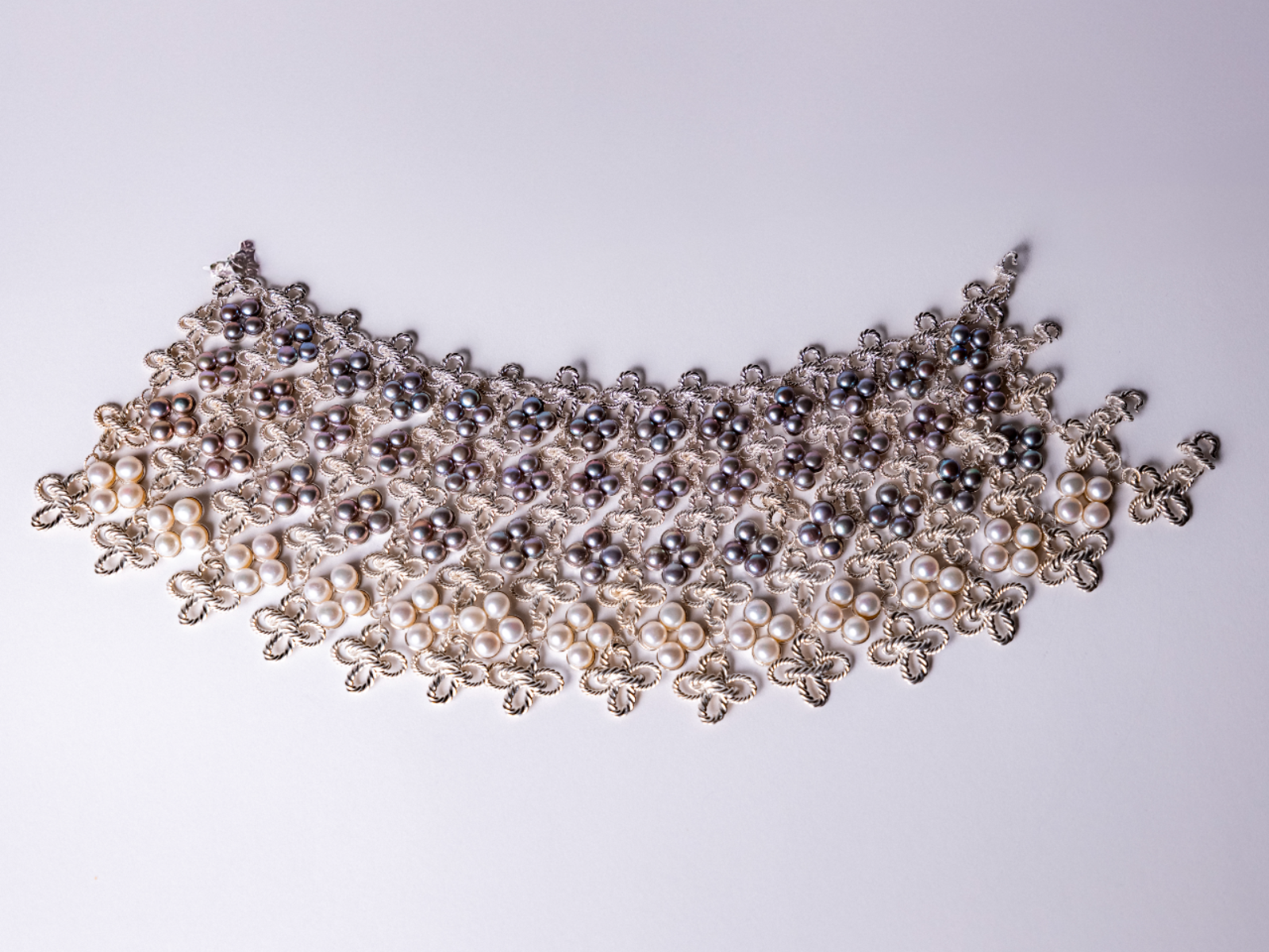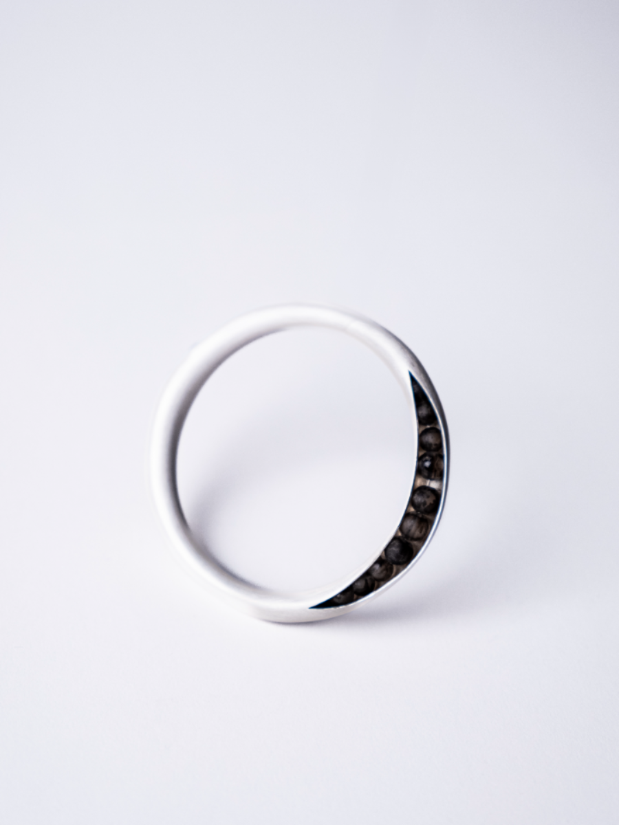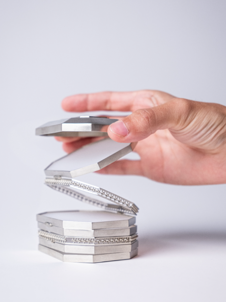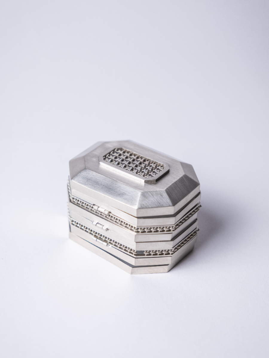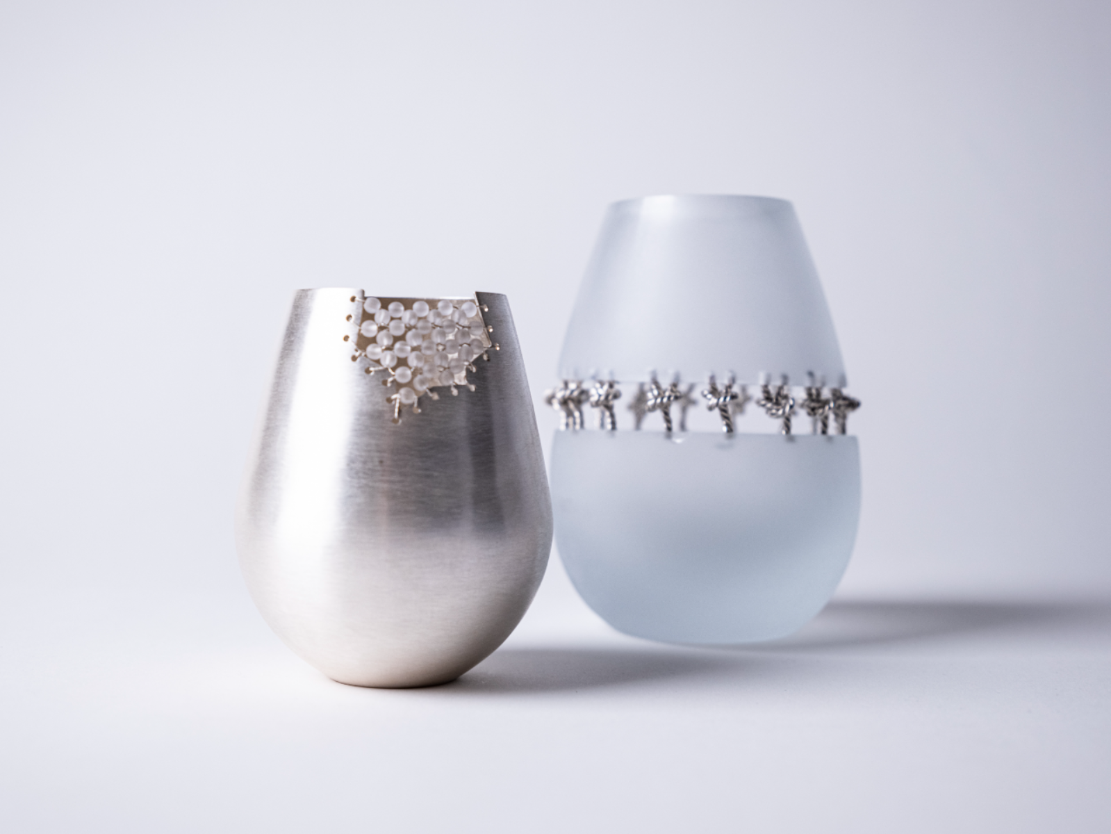 Chuhan’s Collection Echoes in the Blur examines the shifting nature of memory through a series of wearable jewellery and vessels. Using techniques such as knot casting, beading, crocheting, and layering, the project explores how memories are held, distorted, and reassembled over time. Materials such as frosted quartz, mother of pearl, and laser engraved acrylic are chosen for their translucent, hazy qualities—mirroring the way memory fades or fragments. Chuhan frames the body as both vessel and memory site, where inner emotion takes external, physical shape. Through tactile contrasts of softness and rigidity, Echoes in the Blur becomes a meditation on what it means to remember, and how jewellery can hold what words often cannot.