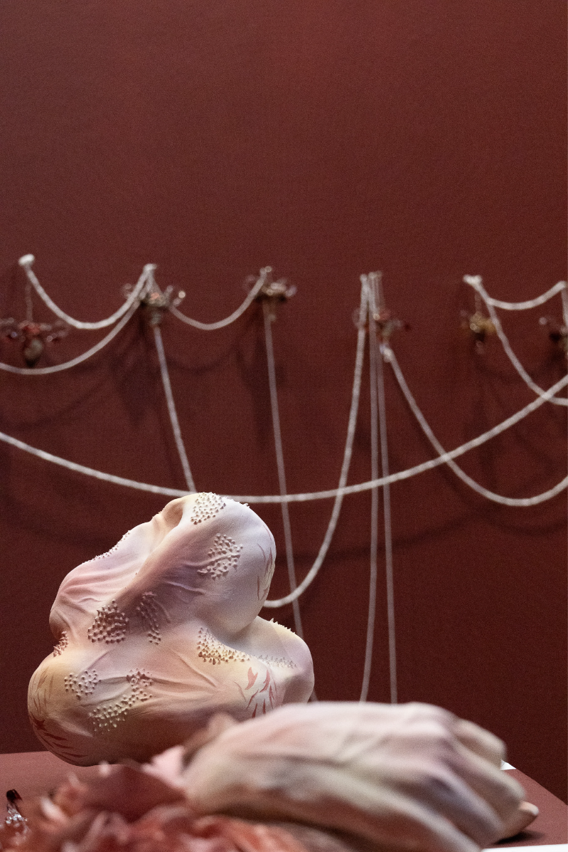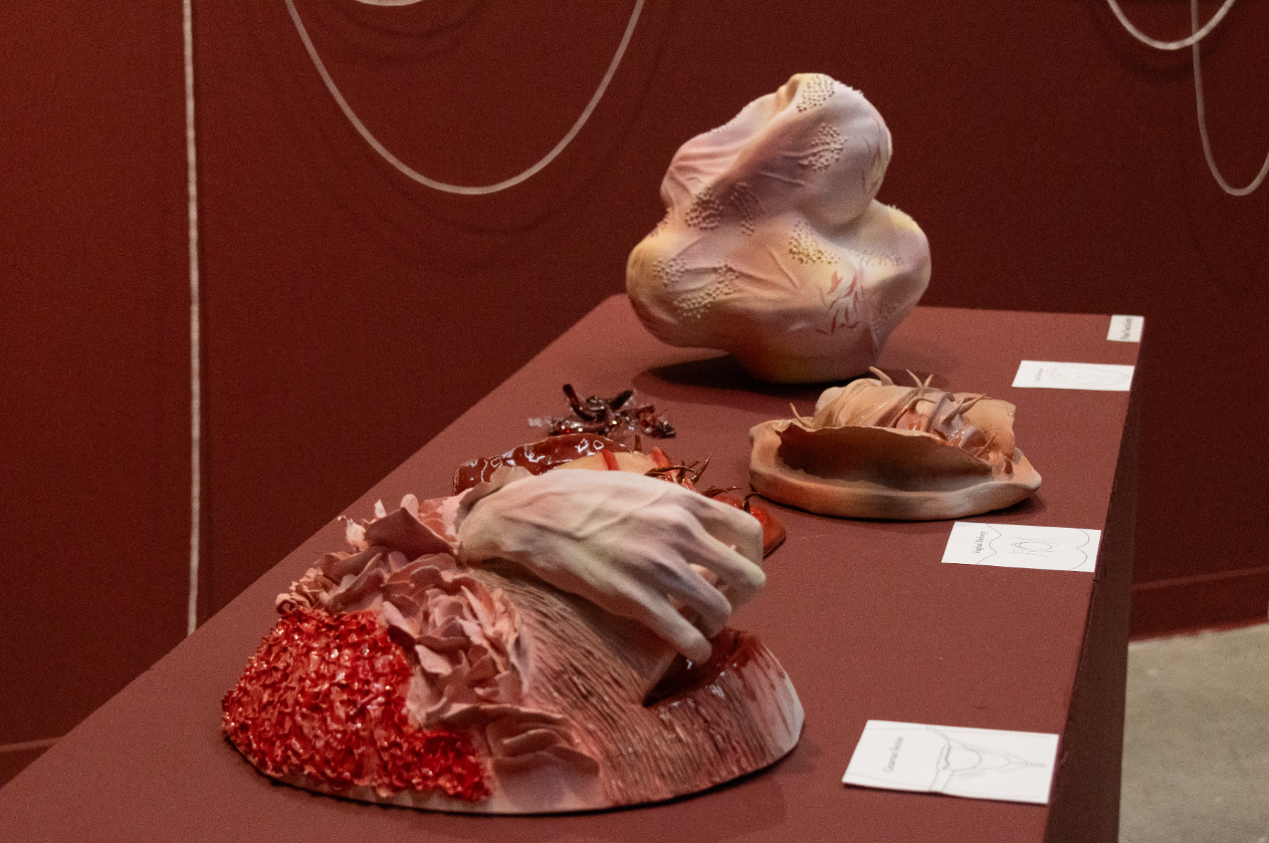 Embracing Motherhood: No Little Thing Discusses the complexities of maternal experiences, focusing on pregnancy, childbirth, and postpartum realities. It does so through a multi-sensory and material-based approach, incorporating ceramics, textiles, glass, 3D printing, and interactive installations to challenge traditional representations of motherhood. It is informed by feminist theories, sensory design principles, and critical design perspective, aiming to create a more in-depth and embodied understanding of maternity. Also a curatorial effort seeking to provide a site for reflection on the emotional, physical, and social complexities of childbirth and motherhood in a gallery setting, the project invites people to use their senses (sight, touch, smell, sound) to engage with the objects on display. The intent is to create a means to open up reflection and conversation on maternal identity and potentially building emotional connections to the topic of motherhood. Throughout my work, it has been set as a means to consider maternity’s emotional, physical, and social complexities. Challenging passive viewing by creating an array of objects in glass, ceramics, and cloth and situating them in an immersive, participatory space, I have sought to challenge passive viewing, disrupt idealized portrayals of motherhood, and provide space for critical reflection.