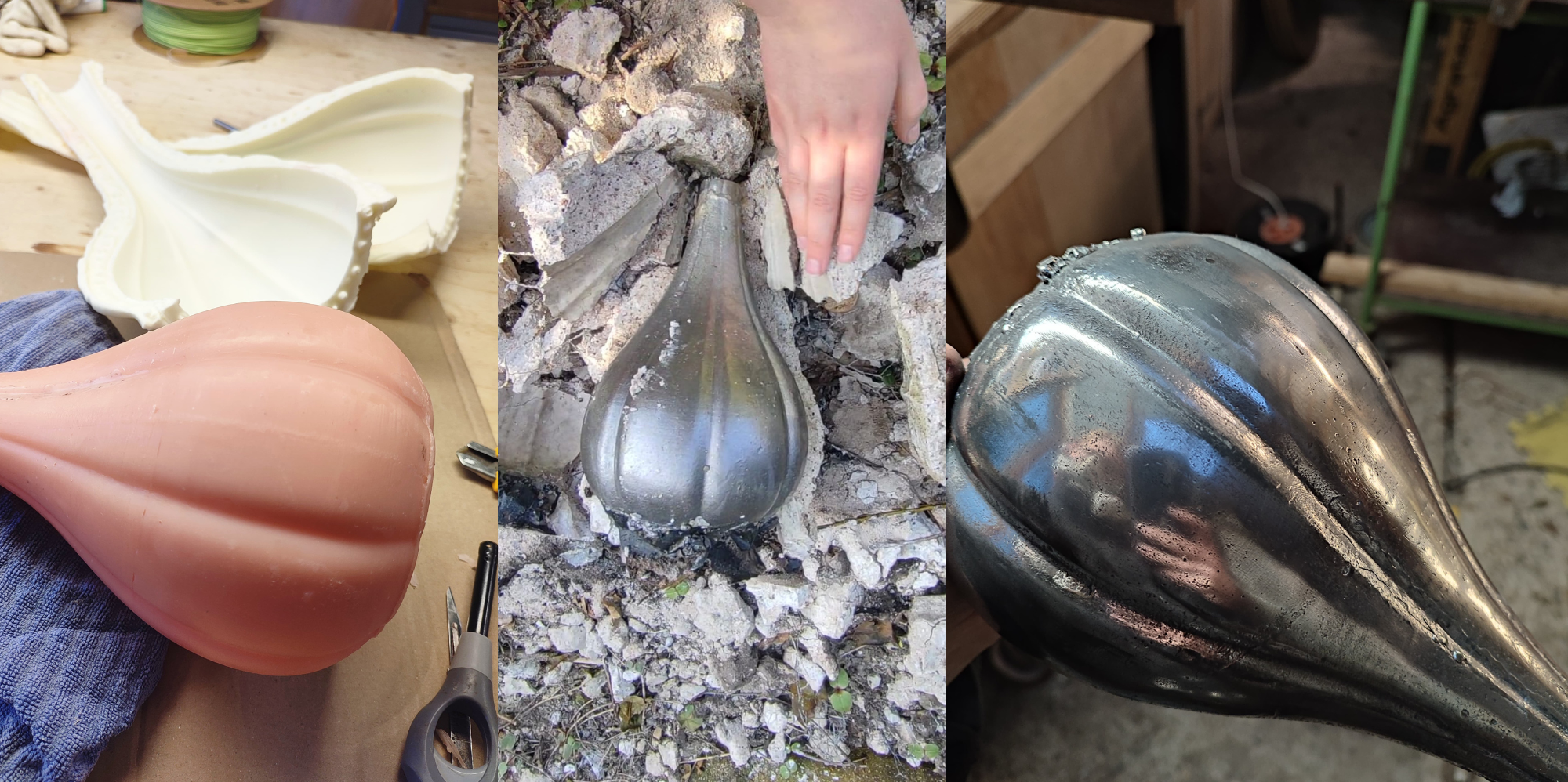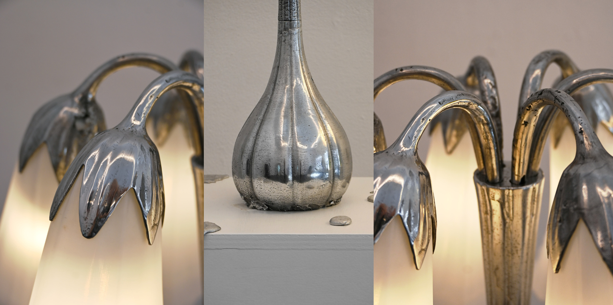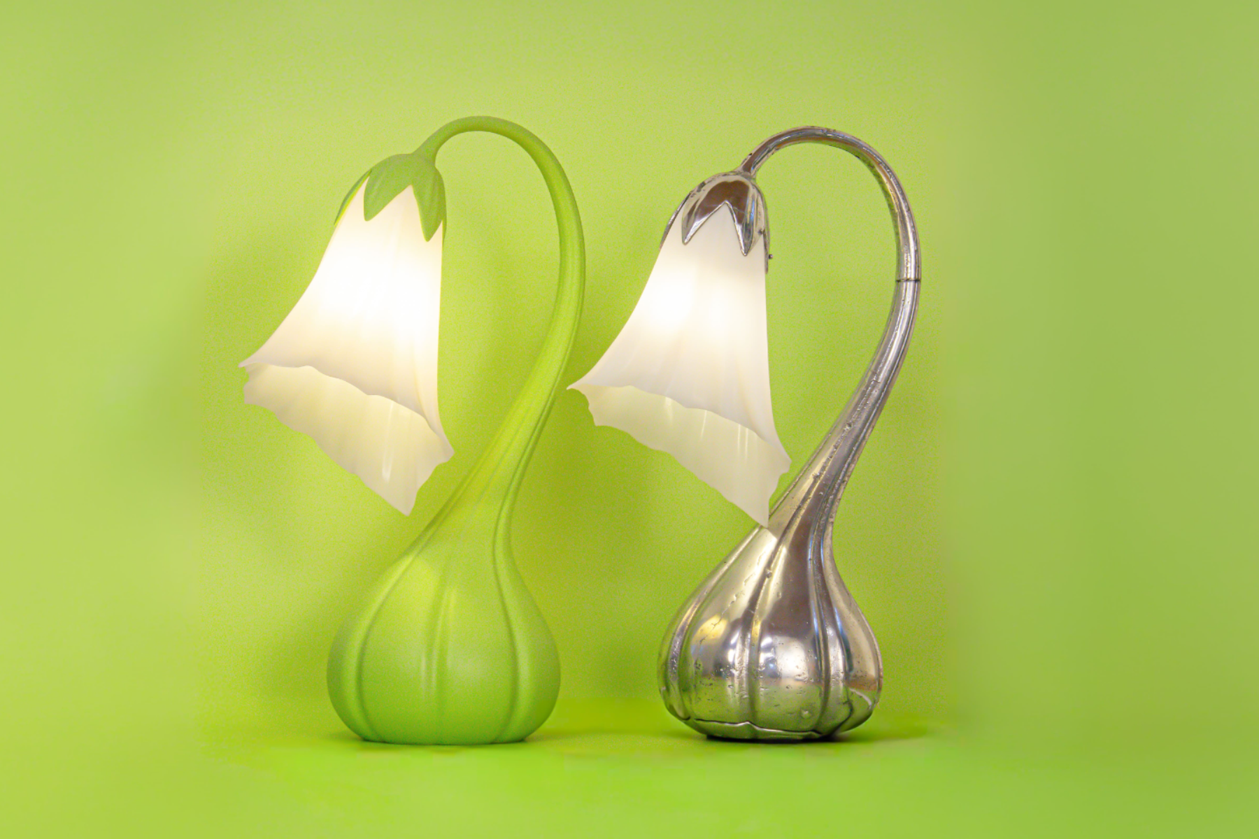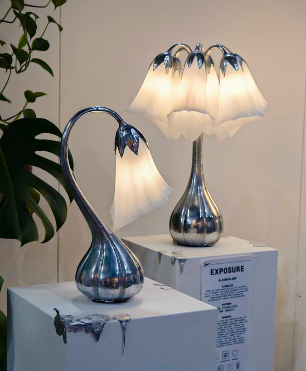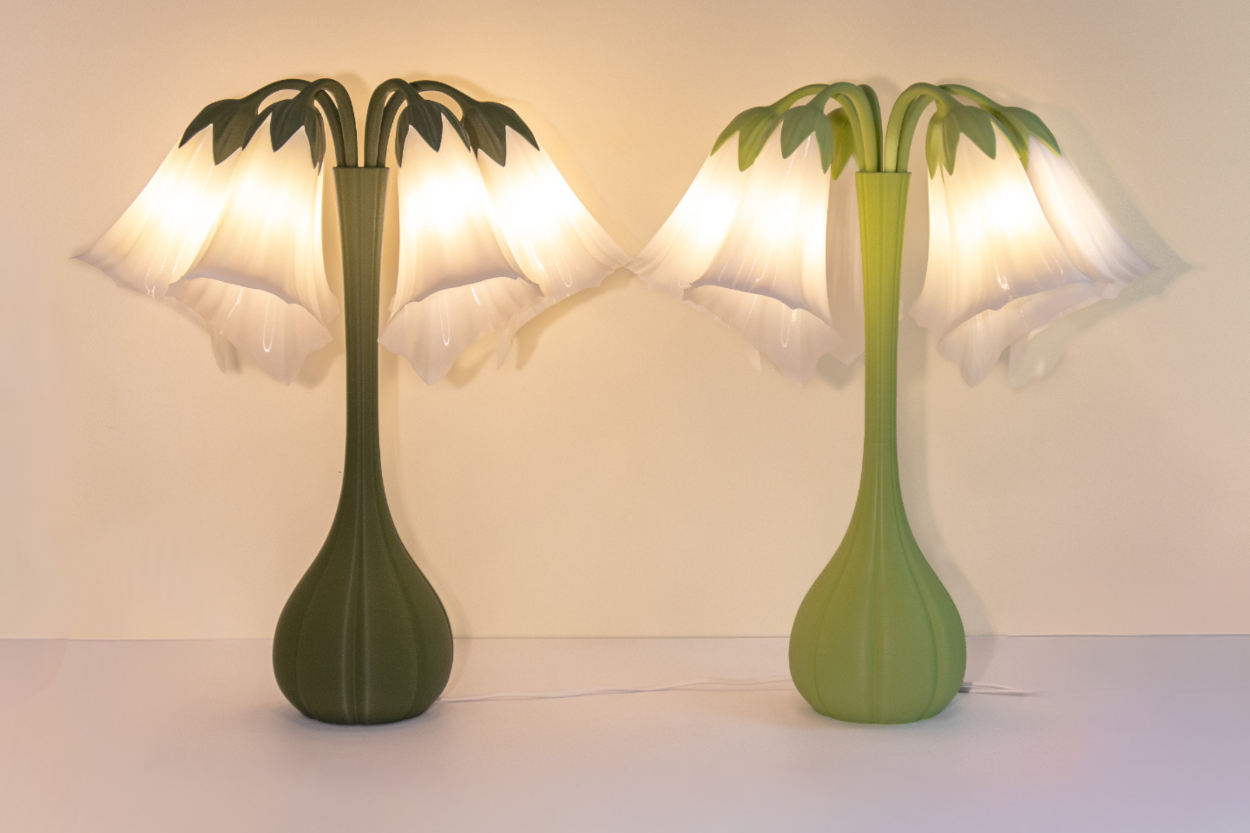 These lamps explore the balance between craft and technology. They originate from the same sketches and digital designs, but have followed two different paths. The plastic lamps were 3D-printed and then carefully post-processed. The metal lamps underwent a labor-intensive, artisanal process: molds were created, lost-wax techniques were applied, and the metal was finished, sanded, and polished. By using techniques such as 3D modeling and 3D printing, I am able to create any form I want. Where I would normally be limited by my own skills, for example, when striving for perfect symmetry and flawless curves, I now have that freedom, because I leave that part to technology. This way, I avoid the limitations of handwork, while still maintaining the same characteristic finish. Together, the lamps form both a contrast and a fusion. A dialogue between craft and technology, where old and new techniques strengthen each other. Materials used: AZ91 (a magnesium alloy) and PETG (polyethylene terephthalate glycol) PLA (polylactic acid) and PETG (polyethylene terephthalate glycol)