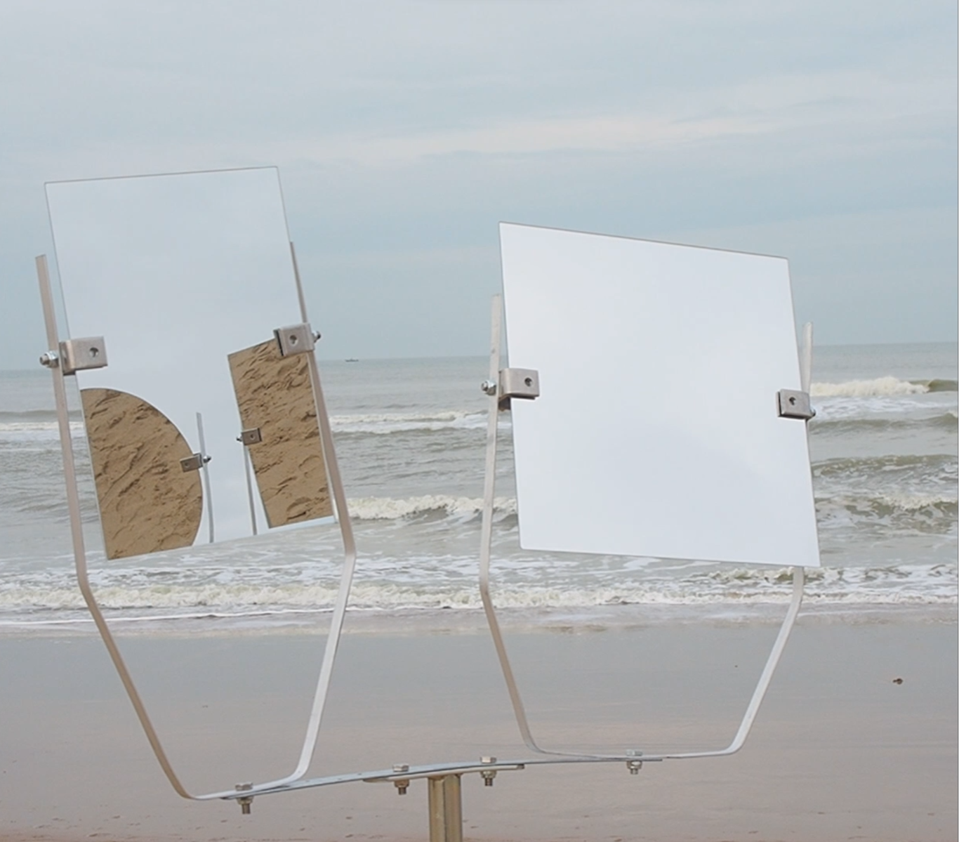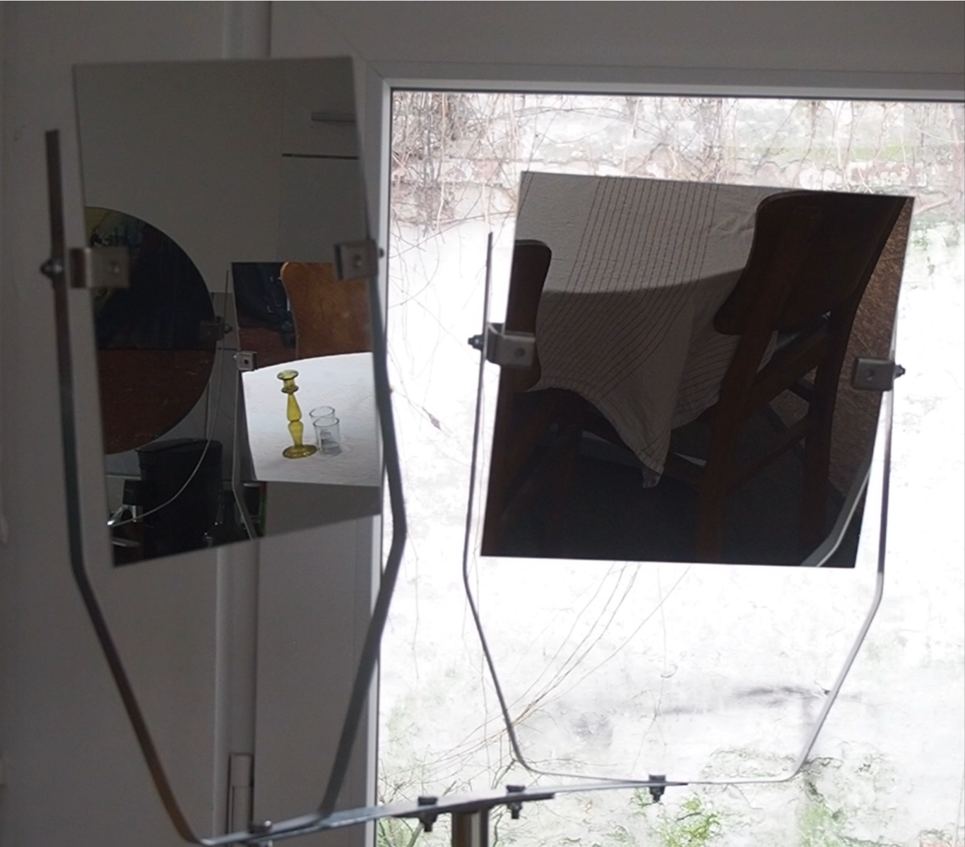 Eyeing the caught sight is a video essay about staring. Mirror installations cast a gaze upon scenes across various landscapes—scenes where little, and yet a lot, seems to be happening. They stare. In the image captured by the mirror, other things become visible. The video essay is presented as a video installation and invites the viewer to follow this movement of looking—without the urge to understand immediately. It explores the gesture of staring across different landscapes. Perhaps you only begin to wonder afterwards what it was you actually saw—in the impression it left behind.