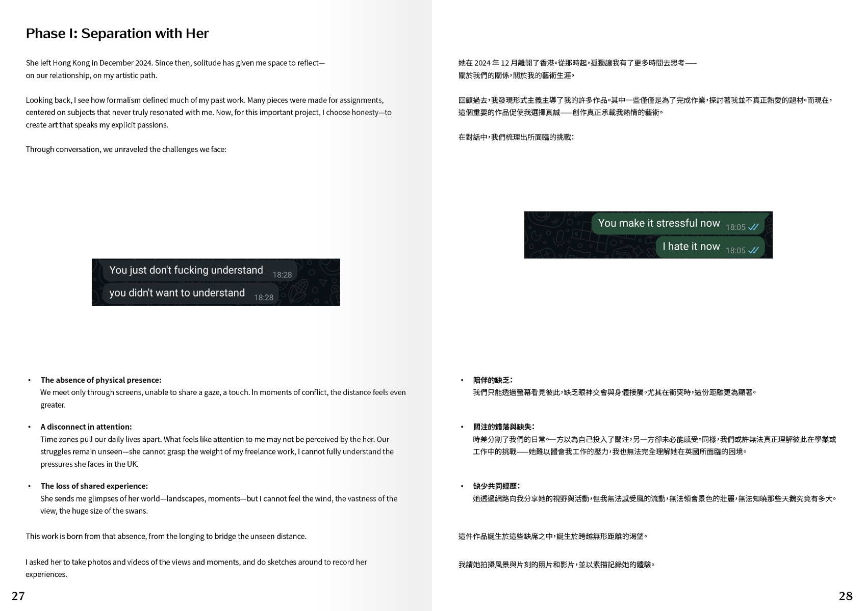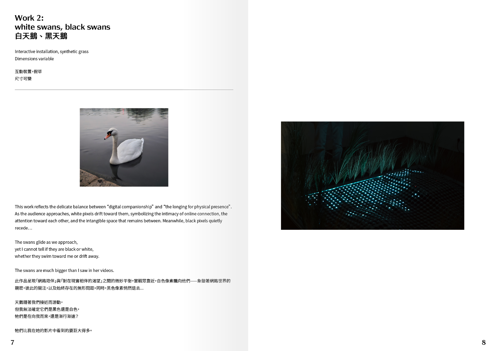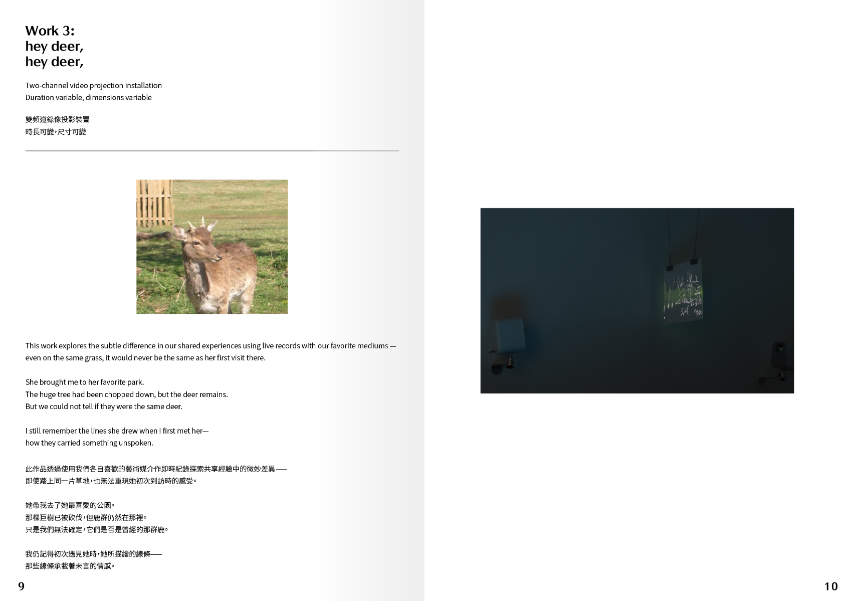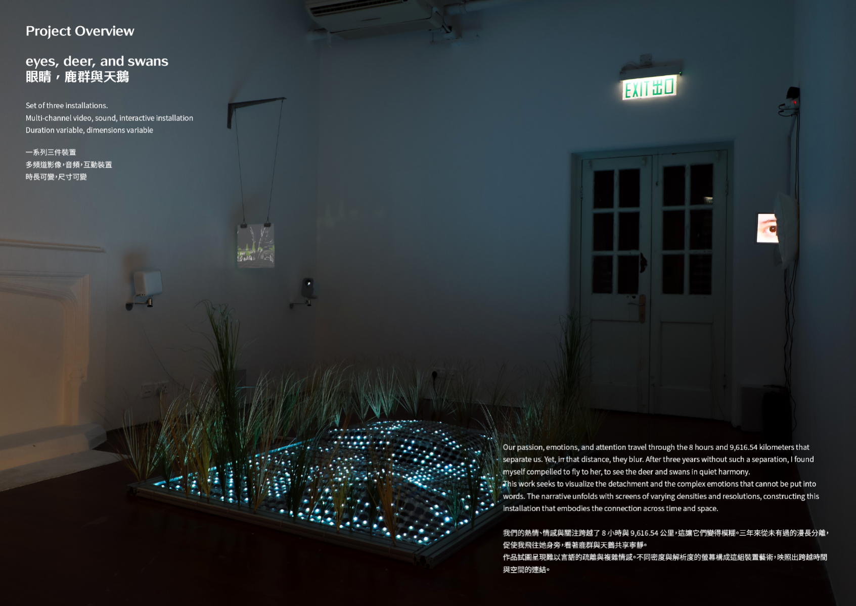 Our passion, emotions, and attention travel through the 8 hours and 9,616.54 kilometers that separate us. Yet, in that distance, they blur. After three years without such a separation, I found myself compelled to fly to her, to see the deer and swans in quiet harmony. This work seeks to visualize the detachment and the complex emotions that cannot be put into words. The narrative unfolds with screens of varying densities and resolutions, constructing this installation that embodies the connection across time and space.