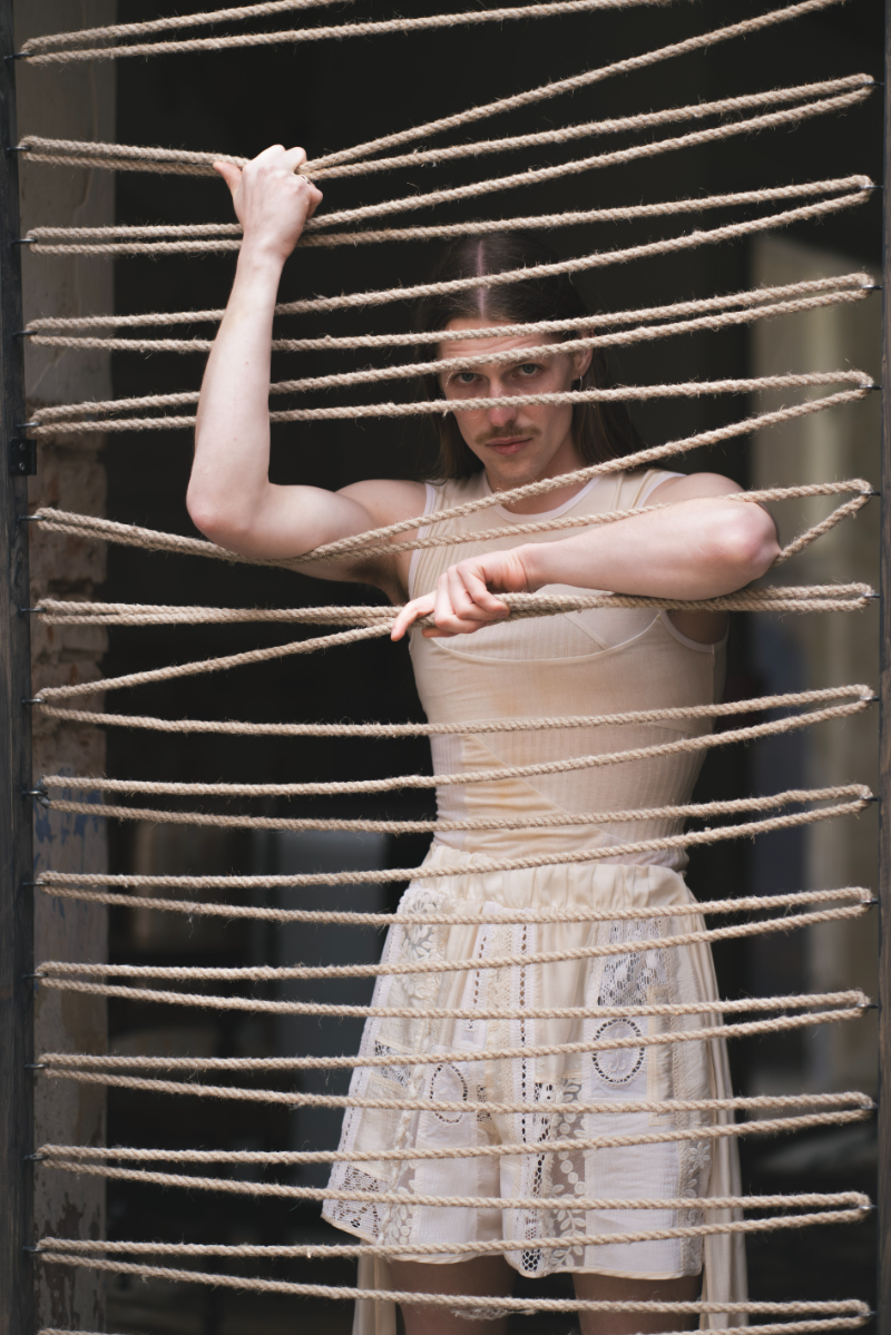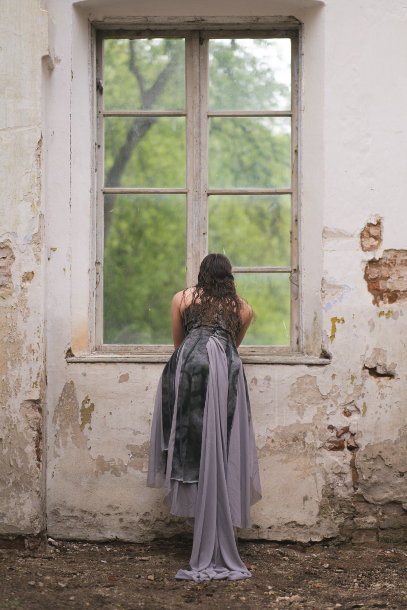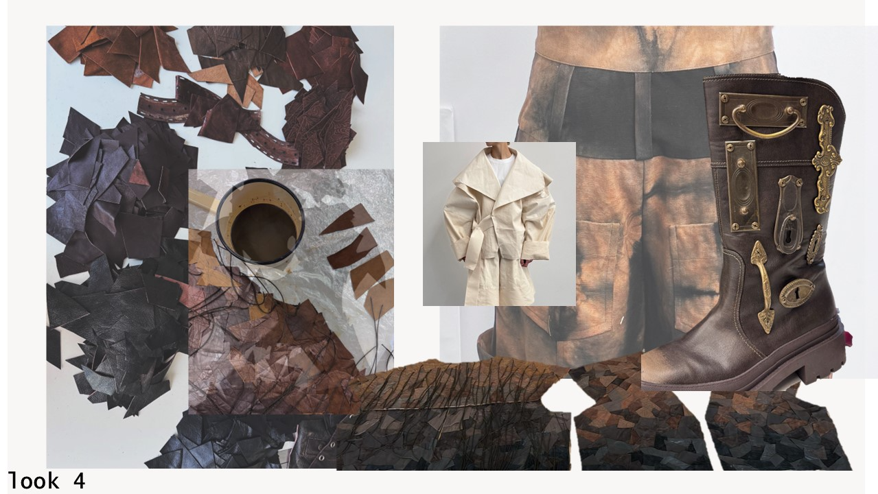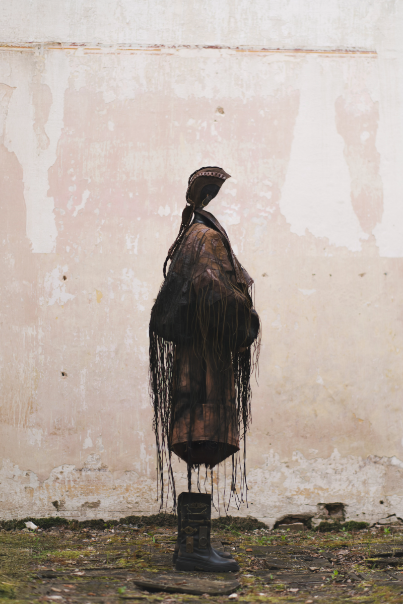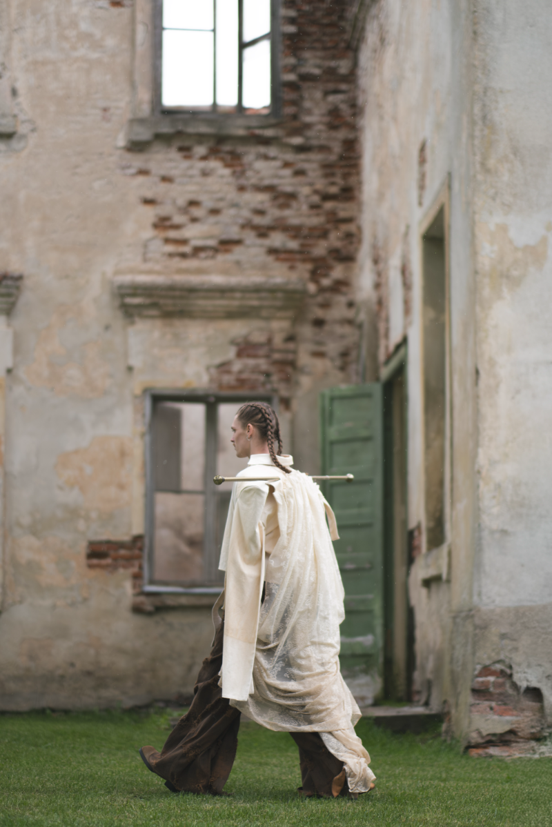 "Home Sweet Home" is an experimental fashion collection that deconstructs the multi-layered concept of home in the context of mass migration, geopolitical and ecological changes. Here, the garments are upcycled and crafted from materials sourced from my family’s home interiors, flea markets, and thrift shops. The transformation of past objects into new forms and meanings echoes the collection's themes of loss, resilience of memory and the transformative power of time. The emotion of the collection swings like a pendulum between harmonious comfort and aggressive heaviness: home is perceived not as a static physical space, but as an ever-changing emotional landscape, built by personal and collective sentiments and experiences. Through colour, materiality and construction, each model serves as a fragment of a larger visual narrative about our modern identity shaped by the complex relationship with our homes. Whilst acting as an allegory for the personal quest for home and belonging, the collection raises the question: What does it mean to belong to a place in a world that is constantly moving and changing?