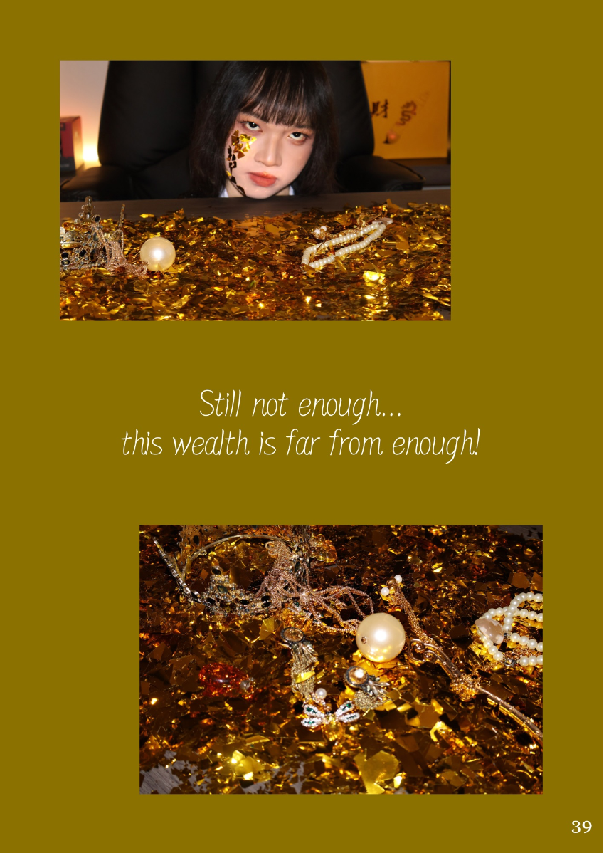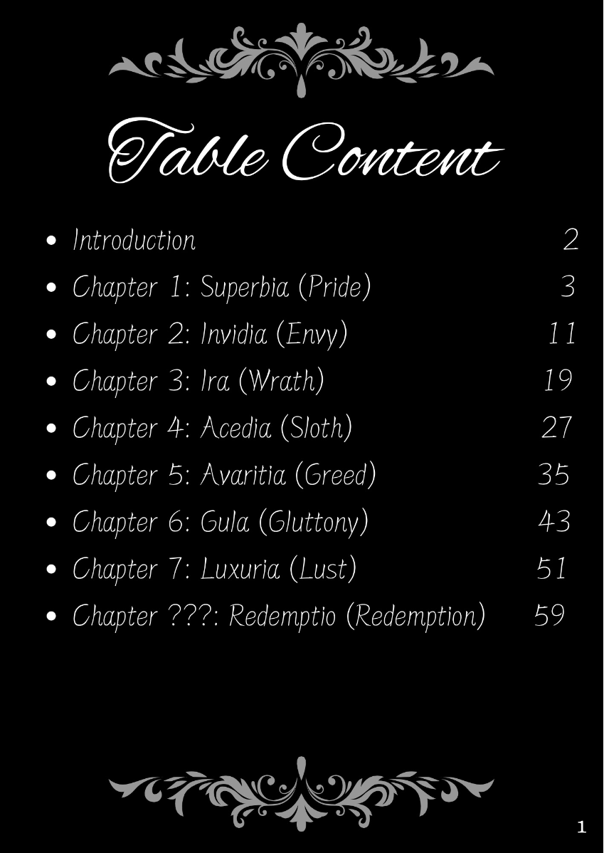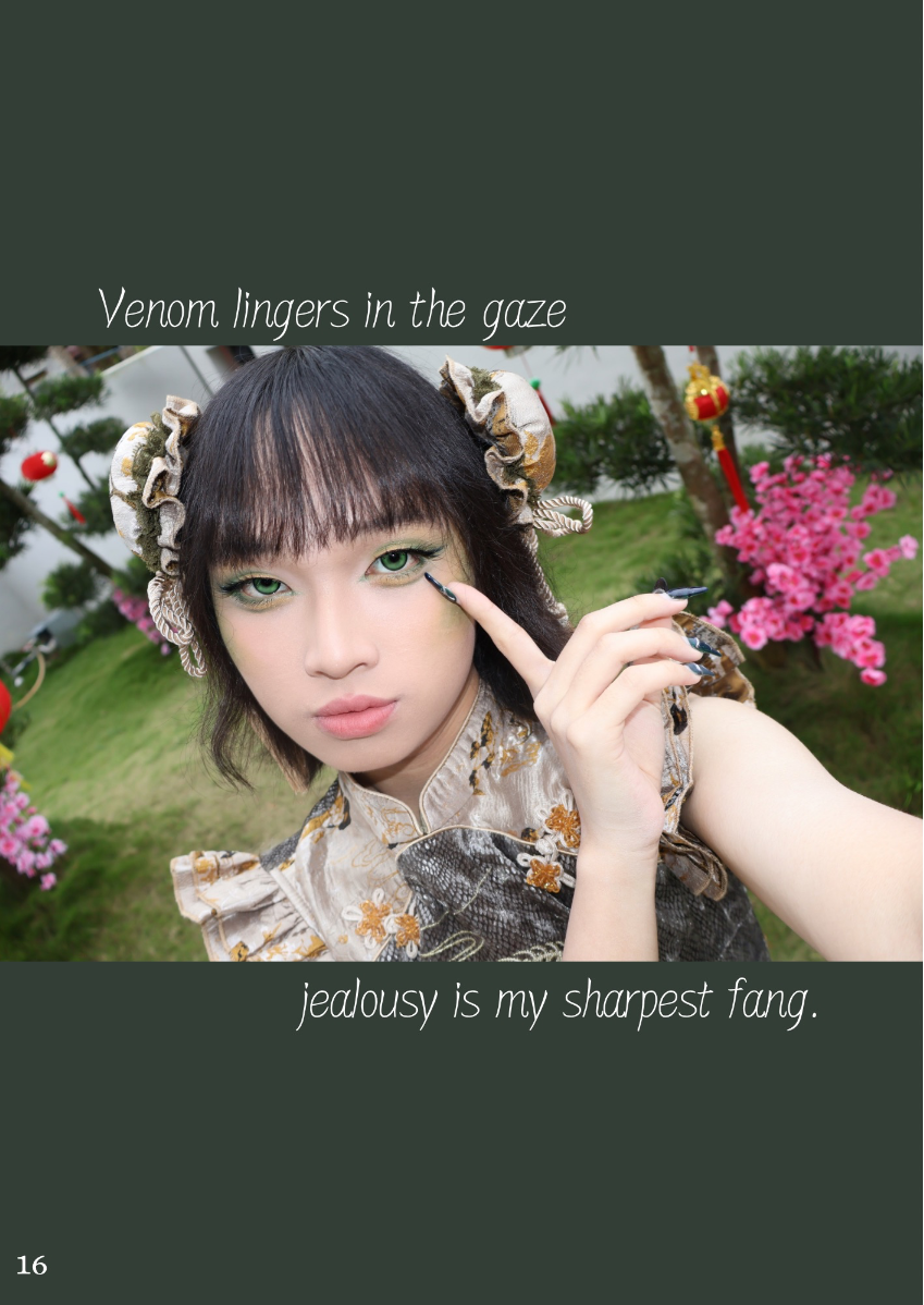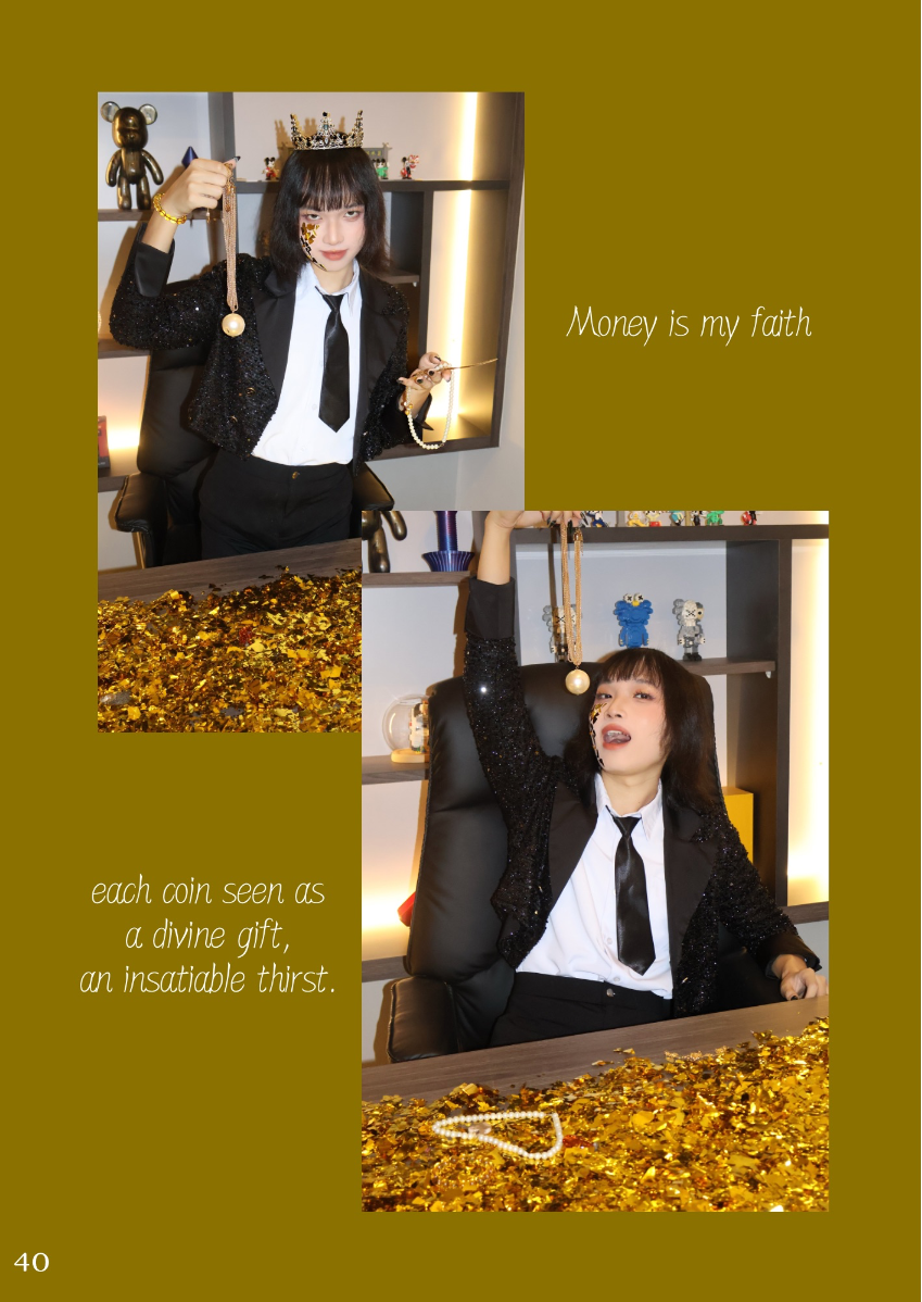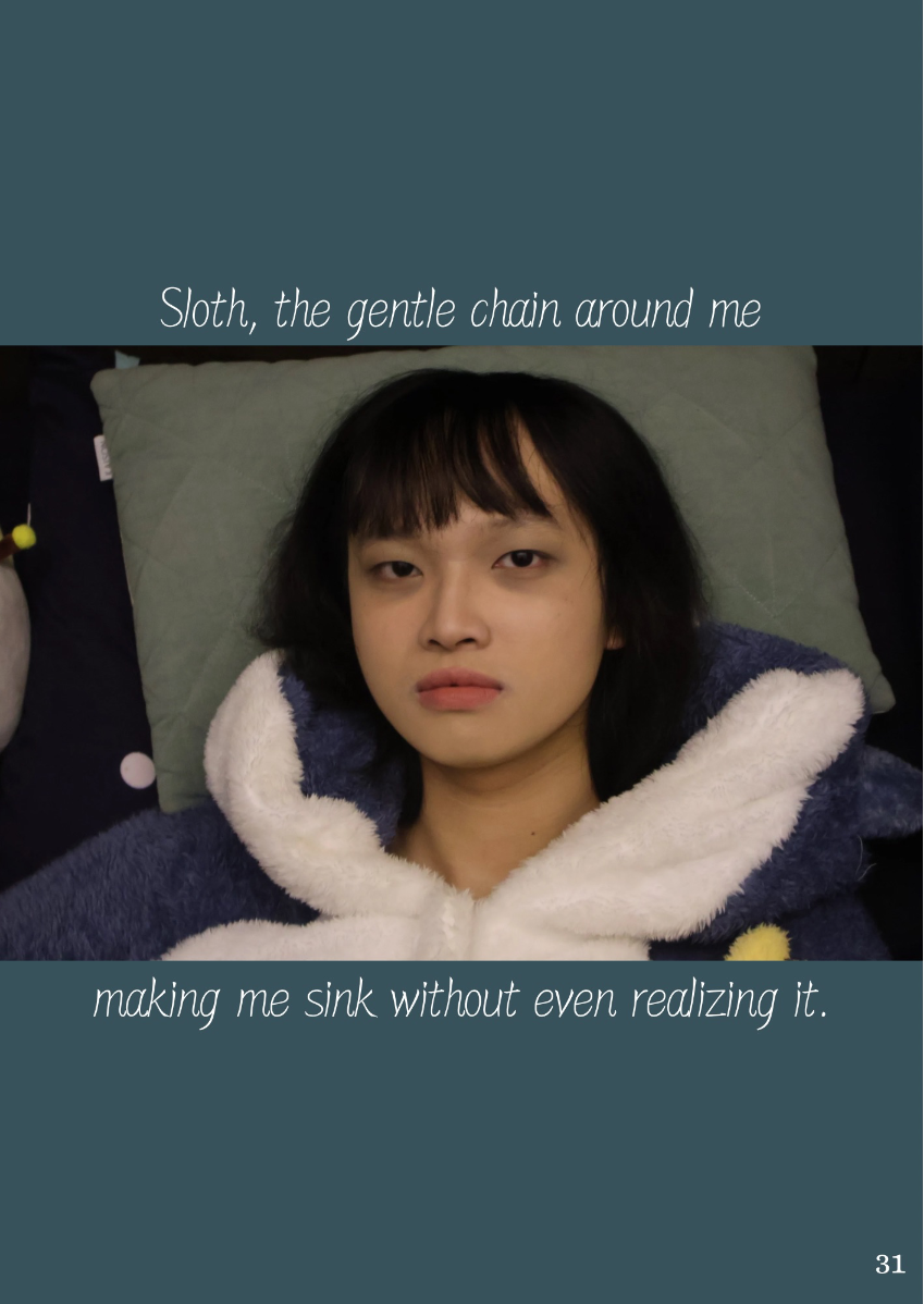 This lookbook is inspired by the concept of the Seven Deadly Sins, a classification of the worst human vices in Catholic doctrine. The Seven Deadly Sins - Pride, Envy, Wrath, Sloth, Greed, Gluttony and Lust - are seen as the root of immoral behavior, often triggering a series of negative behaviors and habits. Each sin represents a different aspect of human nature, showing the dark side of human nature. Through this series of works, I try to explore these themes of temptation, excess and moral degradation, and express them in my own way. Each outfit, look and overall atmosphere is designed to embody the sin it represents, transforming the abstract concept of sin into a concrete visual expression. However, in addition to the display of these sins, this lookbook also hopes to present the theme of "redemption" - a process of self-transcendence and redemption from sin. The embodiment of each sin is not only a depiction of human depravity, but also a reflection on change and purification. In the face of our own weaknesses and temptations, redemption provides a ray of hope and guides us to a higher moral realm. Through this visual journey, I invite the audience to find a spiritual dialogue between sin and redemption, and to think about the possibility of personal growth and moral rejuvenation.