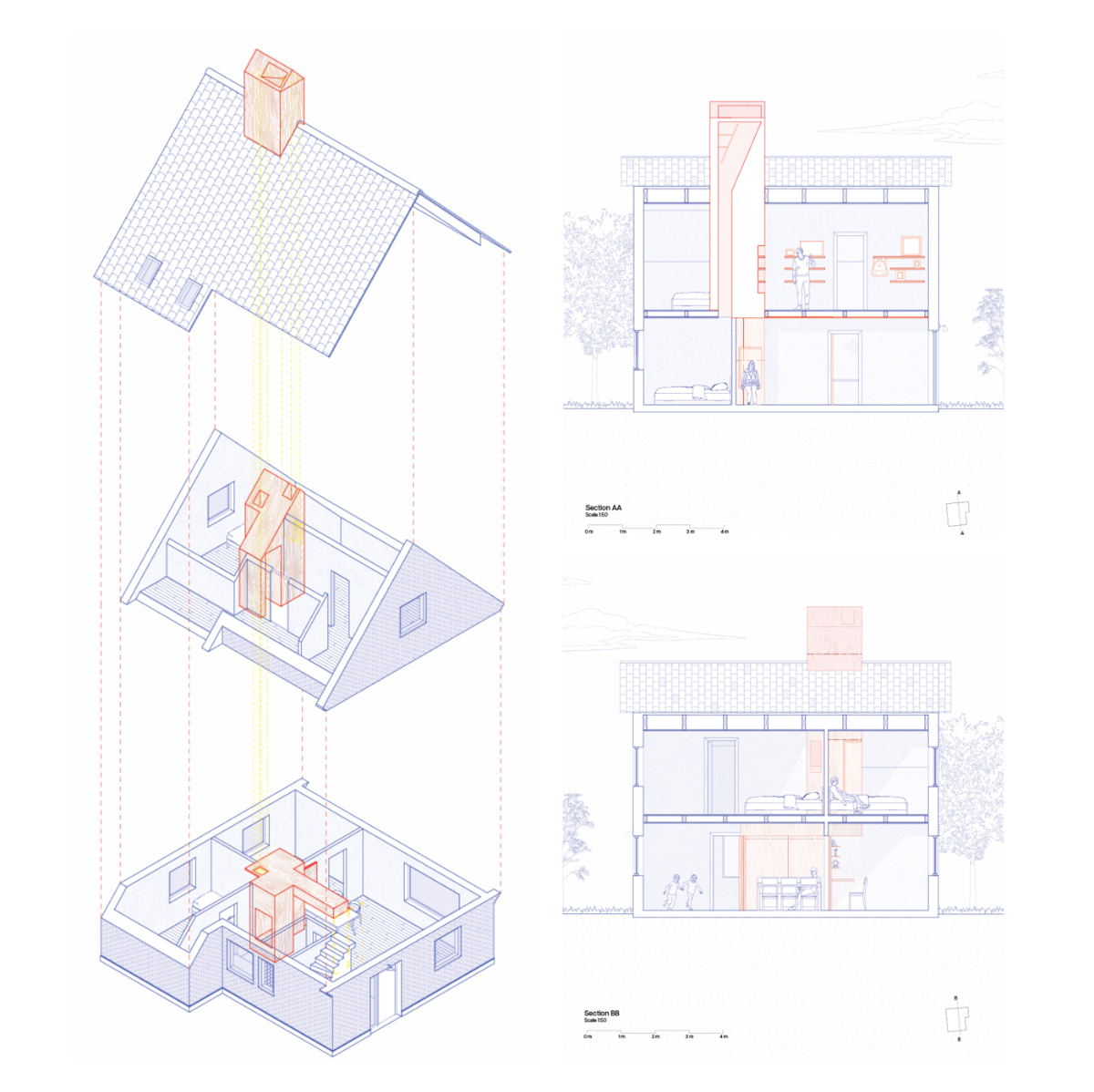 The project proposes an alternative exploration to the conventional care home; one that is not institutional nor isolated but embedded directly into the rythms of daily life. Set in Havnebyen, a Danish Village marked by an aging population and strong local identity, “Finding Home” explores Young Onset Dementia (YOD) care not as a facility but as a spatial and social infrastructure rooted in community. The project aligns itself not only with the UN sustainability goals but also the associated pledge to leave no one behind. We do this by measuring progress from behind and focusing on people with YOD who face the most stigmatization and medical mistreatment.