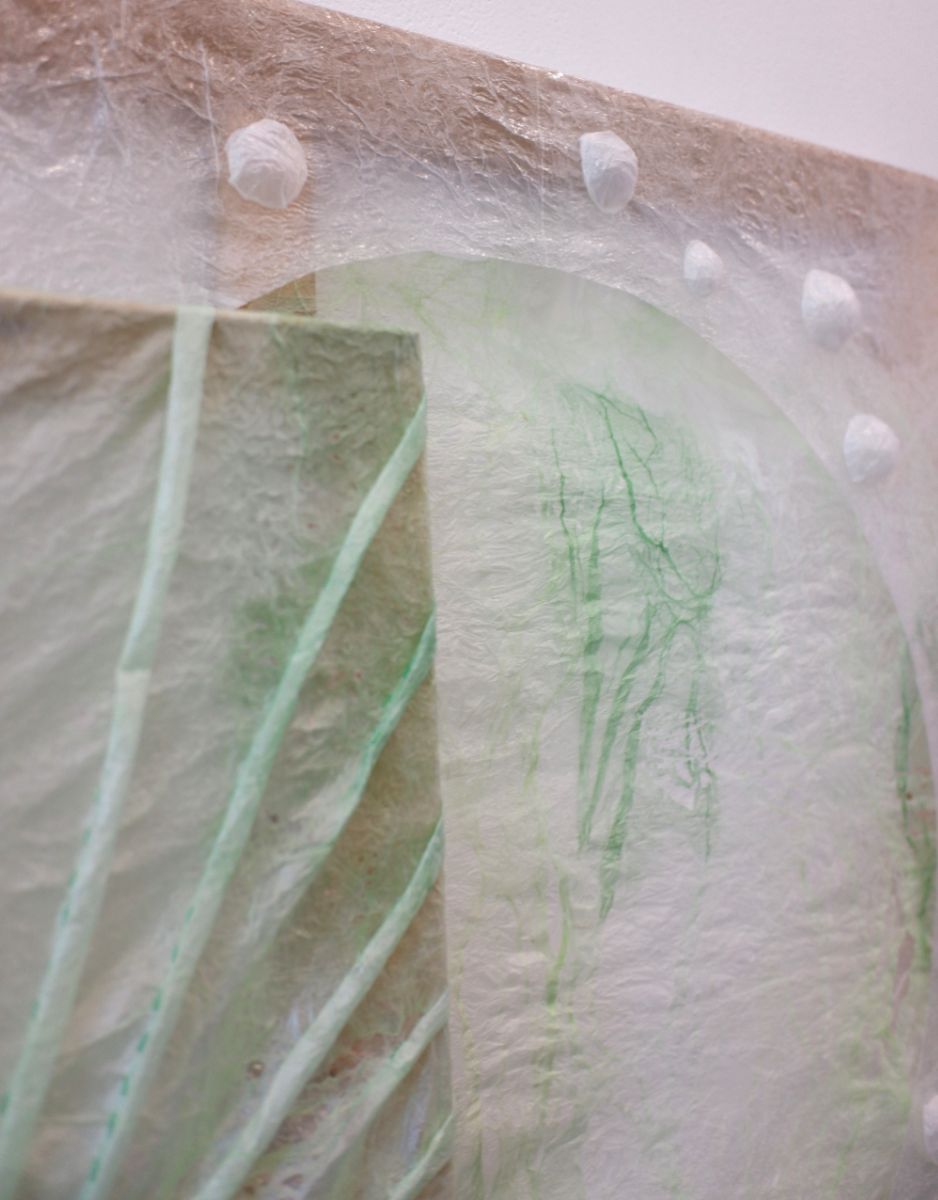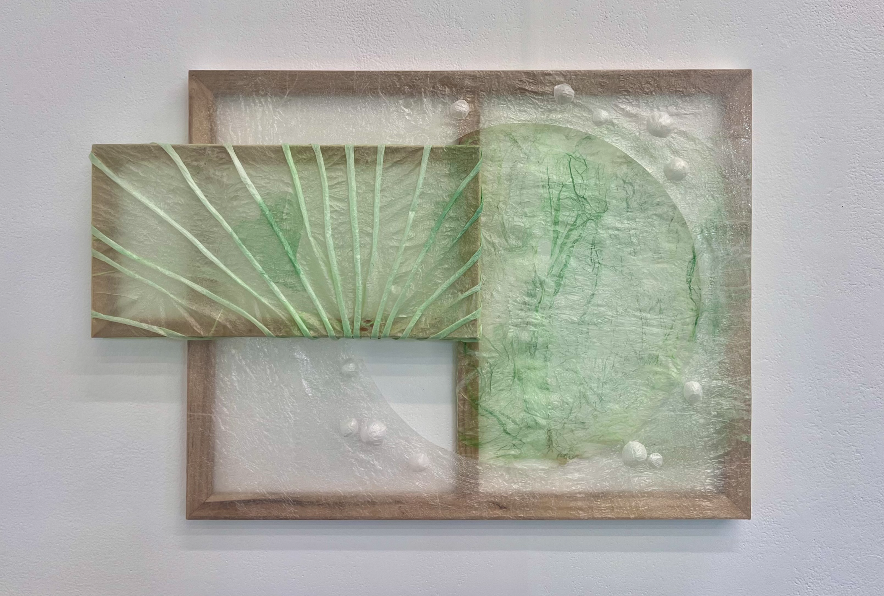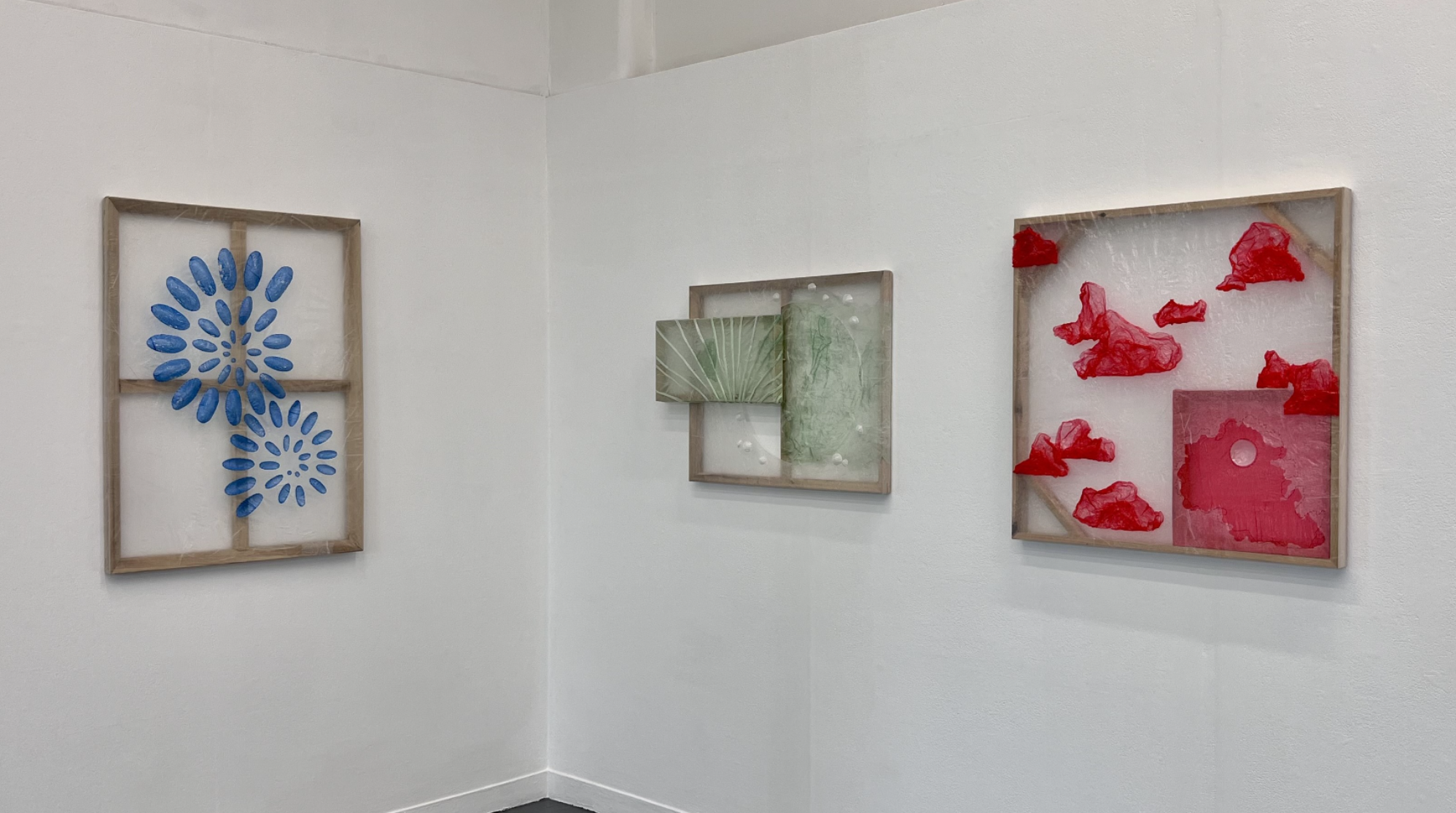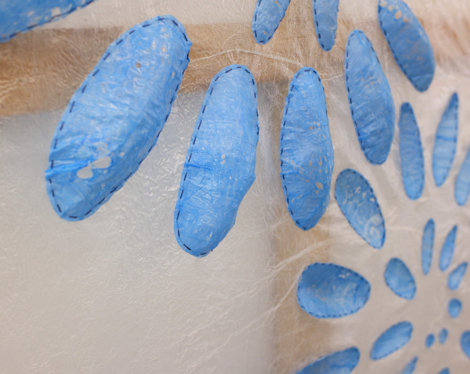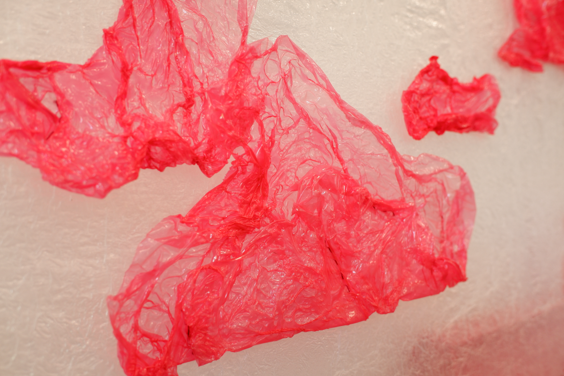 This collection of 3 artworks – “Can I still return to the Earth?” “It’s picturesque now,” and “A future is woven” – reflects on the state of our relationship with the environment through the manipulation of used materials originally created for single use. Soft plastics from retail waste are fused together create a textile that can be stitched and formed into 3D shapes, contemplating how the future of textiles might look when we can no longer grow natural fibres and must face the massive waste issues we have created. One of the most common symbols of prehistoric time, fossils tell us about the forms of life captured many years ago but they would no longer recognise the unnatural polymers that we have turned their kin into to create many of the items we use daily. Warm coloured skies are often a pretty sight but the red cast of bushfire smoke threatens to become a more familiar scene with increasingly intense and deadly summer seasons all over the world. Fungi might be the solution to our plastic problem at both ends. Recent developments have found ways to grow mycelium into specific shapes to replace protective plastic packaging while fungi in other places has demonstrated its ability to break down some of our imperishable plastics that can be found in landfills. But until that becomes a widespread solution, these artworks explore the possibility of material reuse in a post-apocalyptic world.