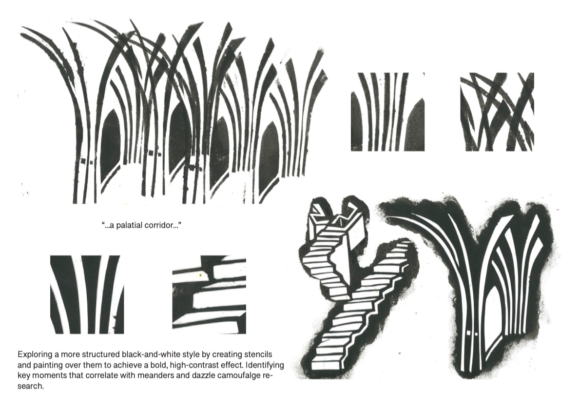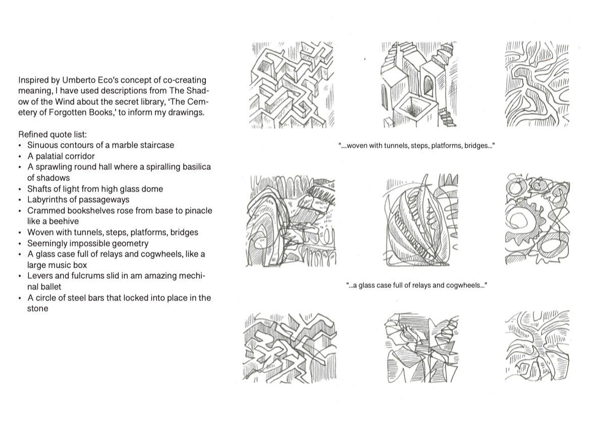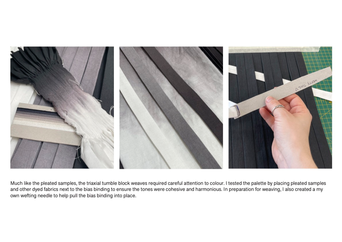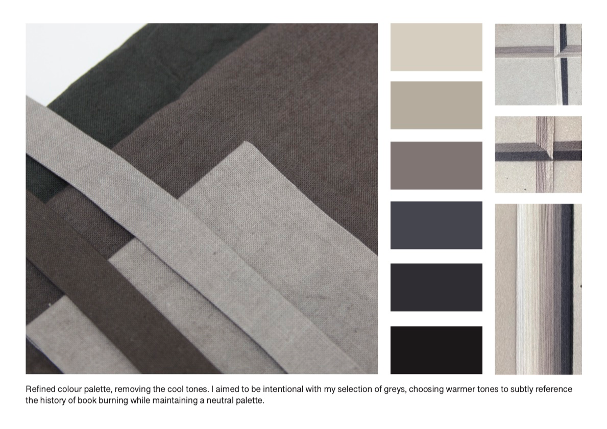 During World War II, thousands of books from the Bavarian State Library were hidden in the chapel of Schloss Haimhausen, later my school. This story of rescue and its link to my own life, inspired my exploration of books as symbols of memory and censorship. From ancient book burnings to modern bans in the US and UK, the control of knowledge persists. My textiles use optical illusions, labyrinth forms, and tessellations to explore visibility and erasure. Influenced by Umberto Eco, Eric Gjerde, and M.C. Escher, I create ash-toned, illusion-based fabrics that invite close reading, echoing the act of uncovering hidden histories.