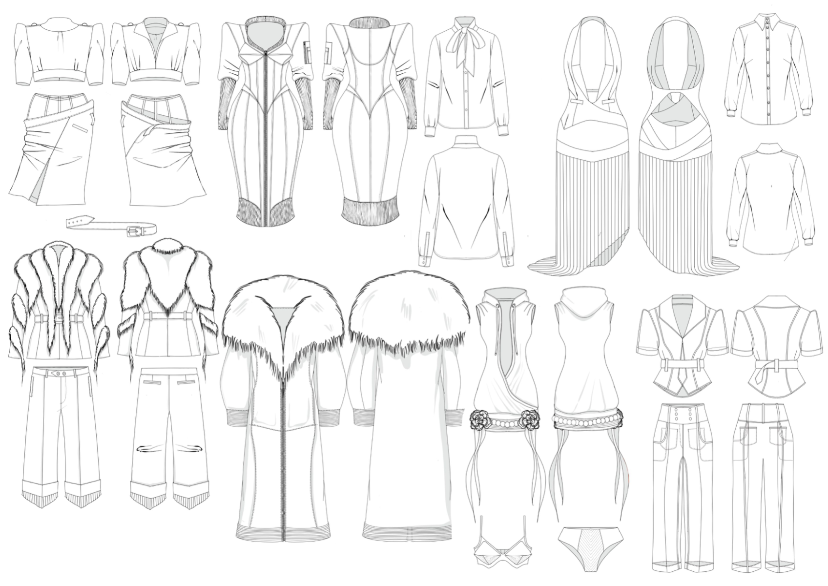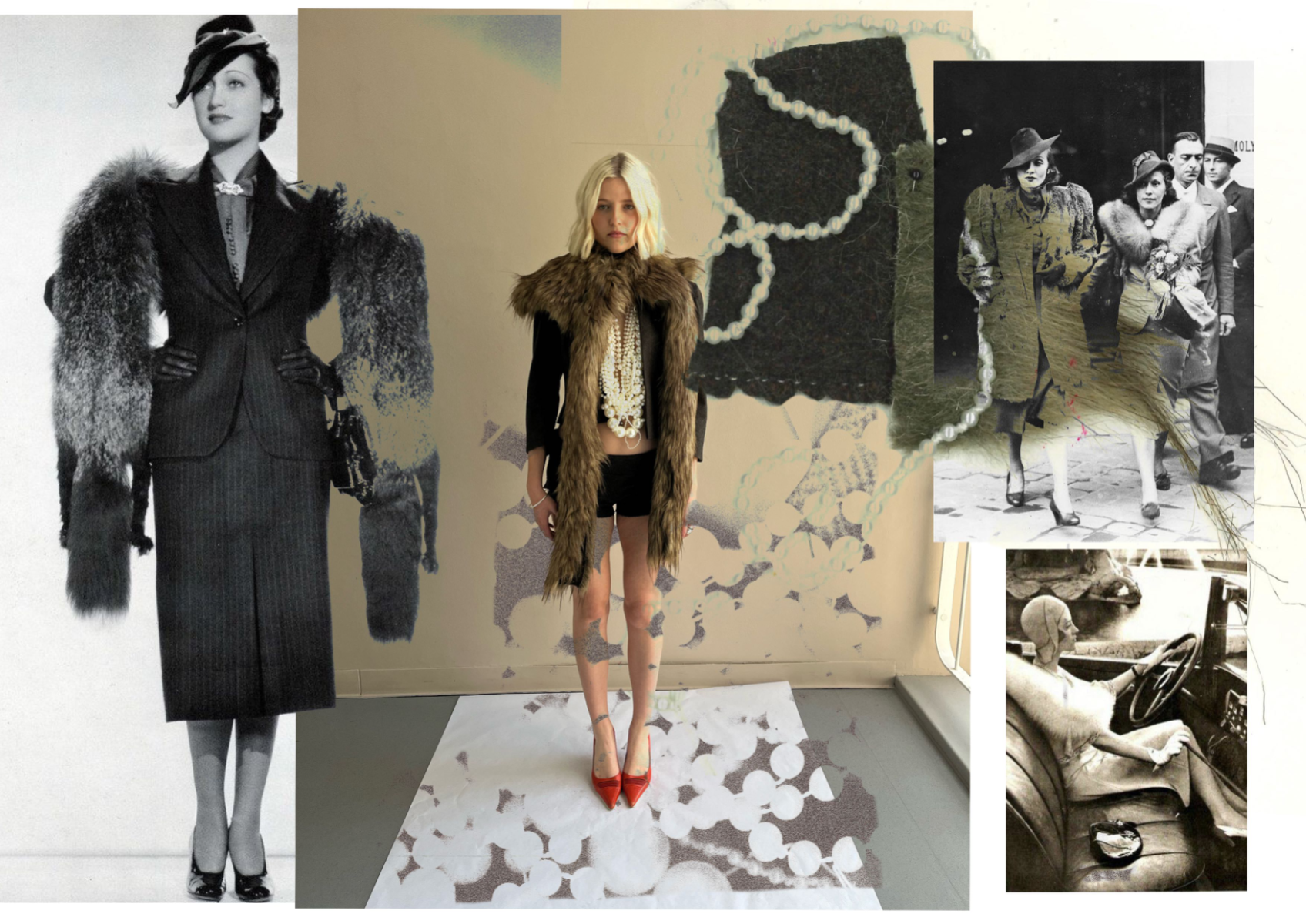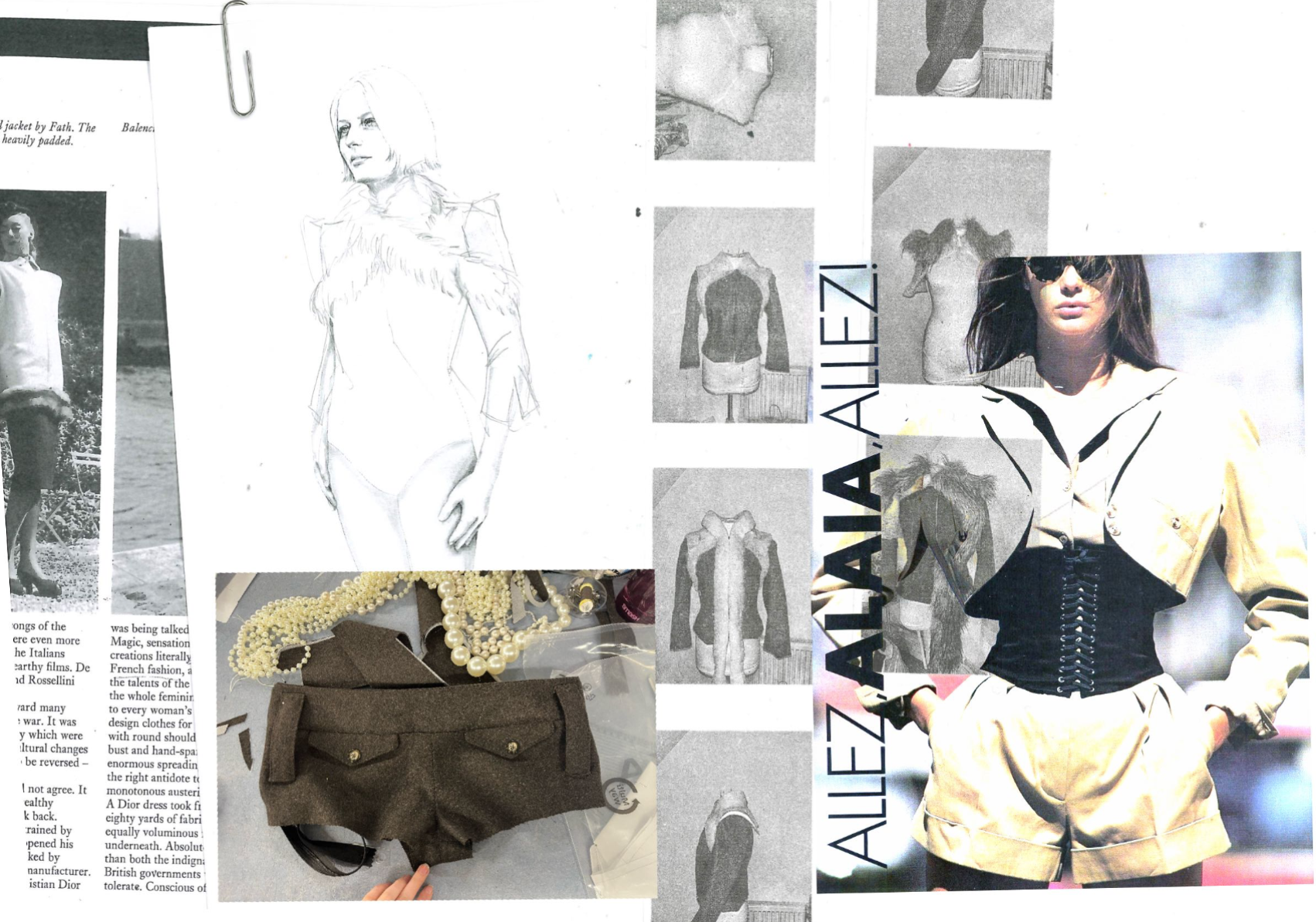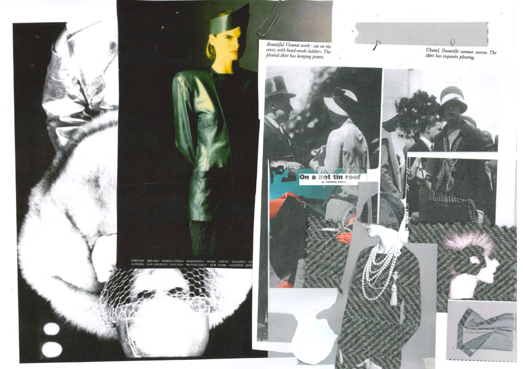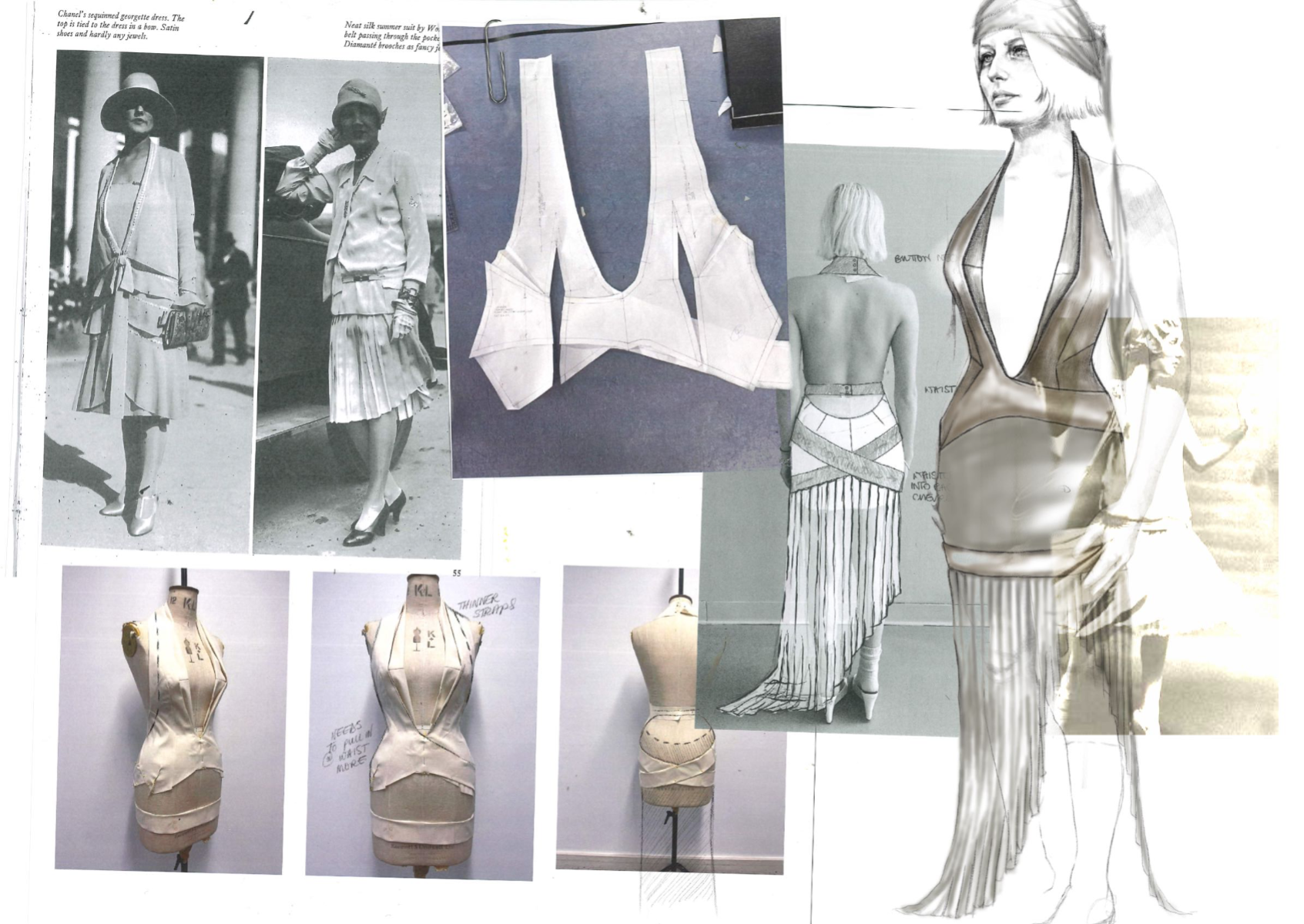 At the heart of Hotsy Totsy is a persona: my interpretation of a 1920s term used to describe someone ostentatiously fashionable. She’s a woman of the past, dressed for the future—immaculate, in control, and magnetic without trying. Influenced by classic military uniforms from the 1940s—particularly the MA-1 bomber and flight suit—combined with the opulence of 1930s silhouettes, the collection offers a sharp, satirical take on vintage glamour reimagined through a modern lens. I paired luxurious and utilitarian fabrics to echo the blend of 1930s elegance and 1940s military structure. A palette of greys, taupes and greens—punctuated by bright orange—references artillery linings. Detail-heavy topstitching reinforces craftsmanship, while trompe l’oeil effects reveal mesh underskirts and underwear at the back of garments for a playful twist. Draping techniques developed during my placements helped shape sensual, wrapped forms—especially the twisted waistcoat dress, which merges seduction and strength.