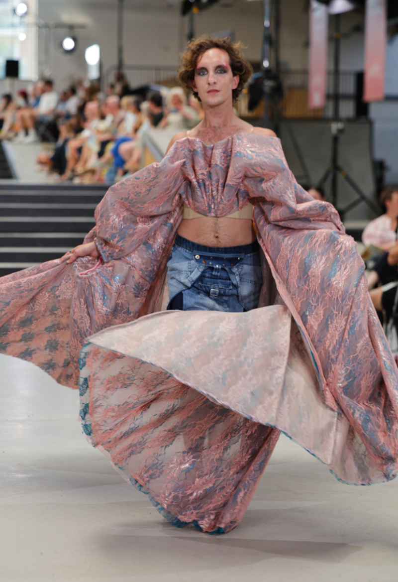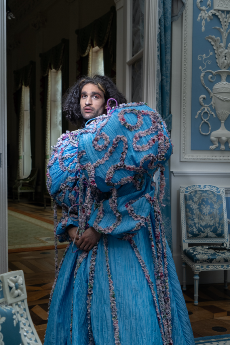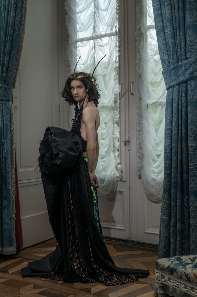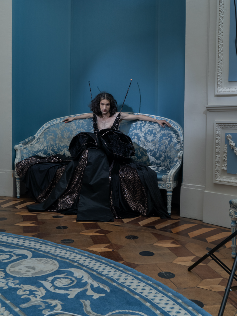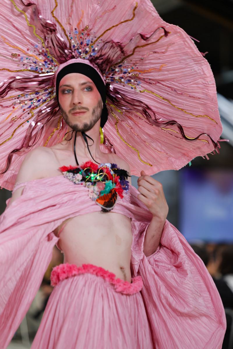 Imelda Marcos is a controversial image in the Philippines. She is the former first lady in the Philippines, known for her three thousand pairs of shoes and who hides diamonds in diapers as she fled the country. She uses beauty as a political tool. She justifies her beauty as a moral standard that everybody must aspire to be and to have. For the poor Filipinos, She is the image of beauty and the image of wealth. The value of beauty and image of money became synonymous. It is not because we value money more than beauty but because our society is structured on money. The story of money is our greatest invention according to Harrari. I am fascinated with this display of beauty. The line between opulence and tackiness, that spot between sweet perfume and rot. It is in this thin line where I try to grasp for the moment: diamonds in diapers. I made a couture collection for men. I try to capture a new sense of beauty in the collection by using men/they who are rough and raw. The collection tries to be couture luxury out from nothing, capturing the wealth myths of Imelda. I was trying to think like Imelda. I try to imitate and embody her values.I try to capture what is beautiful for Imelda. For her, Beauty is not luxury but an Art. She is the combination of Diamonds and Diaper. Hopefully, the collection will open a conversation and awareness on the influence of the Marcoses in the Philippine politics. This influence extended to erasing and distortion of Philippine history, as they glamorise the Marcos era. The use of beauty in this collection is my political tool in honouring the victims of the Marcoses and preserving the real history