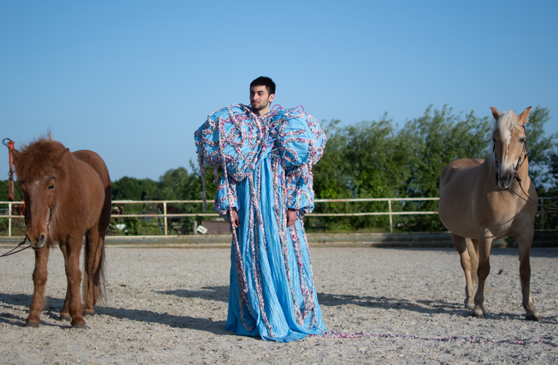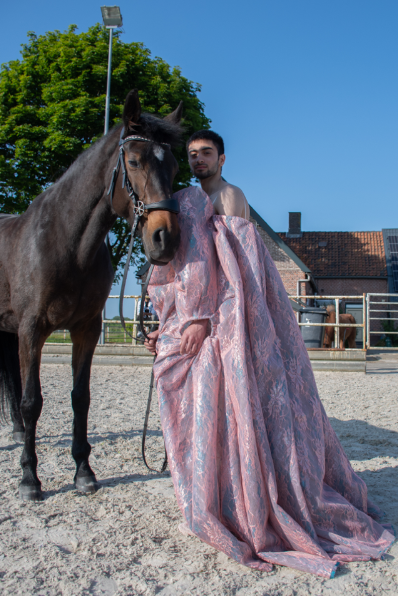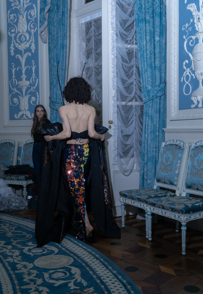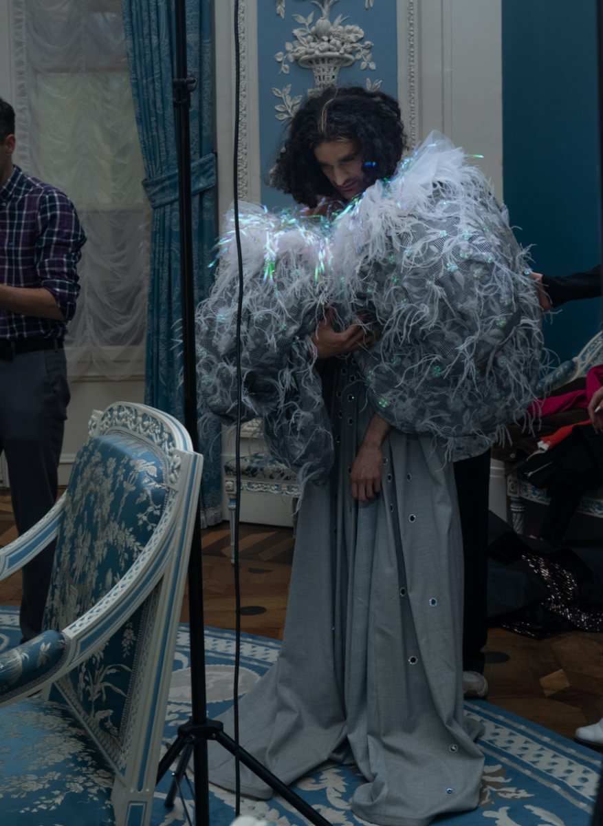 Imelda Marcos is a controversial image in the Philippines. She is the former first lady in the Philippines, known for her three thousand pairs of shoes and who hides diamonds in diapers as she fled the country. She uses beauty as a political tool. She justifies her beauty as a moral standard that everybody must aspire to be and to have. For the poor Filipinos, She is the image of beauty and the image of wealth. The value of beauty and image of money became synonymous. It is not because we value money more than beauty but because our society is structured on money. The story of money is our greatest invention according to Harrari. I am fascinated with this display of beauty. The line between opulence and tackiness, that spot between sweet perfume and rot. It is in this thin line where I try to grasp for the moment: diamonds in diapers. I made a couture collection for men. I try to capture a new sense of beauty in the collection by using men/they who are rough and raw. The collection tries to be couture luxury out from nothing, capturing the wealth myths of Imelda. I was trying to think like Imelda. I try to imitate and embody her values.I try to capture what is beautiful for Imelda. For her, Beauty is not luxury but an Art. She is the combination of Diamonds and Diaper. Hopefully, the collection will open a conversation and awareness on the influence of the Marcoses in the Philippine politics. This influence extended to erasing and distortion of Philippine history, as they glamorise the Marcos era. The use of beauty in this collection is my political tool in honouring the victims of the Marcoses and preserving the real history