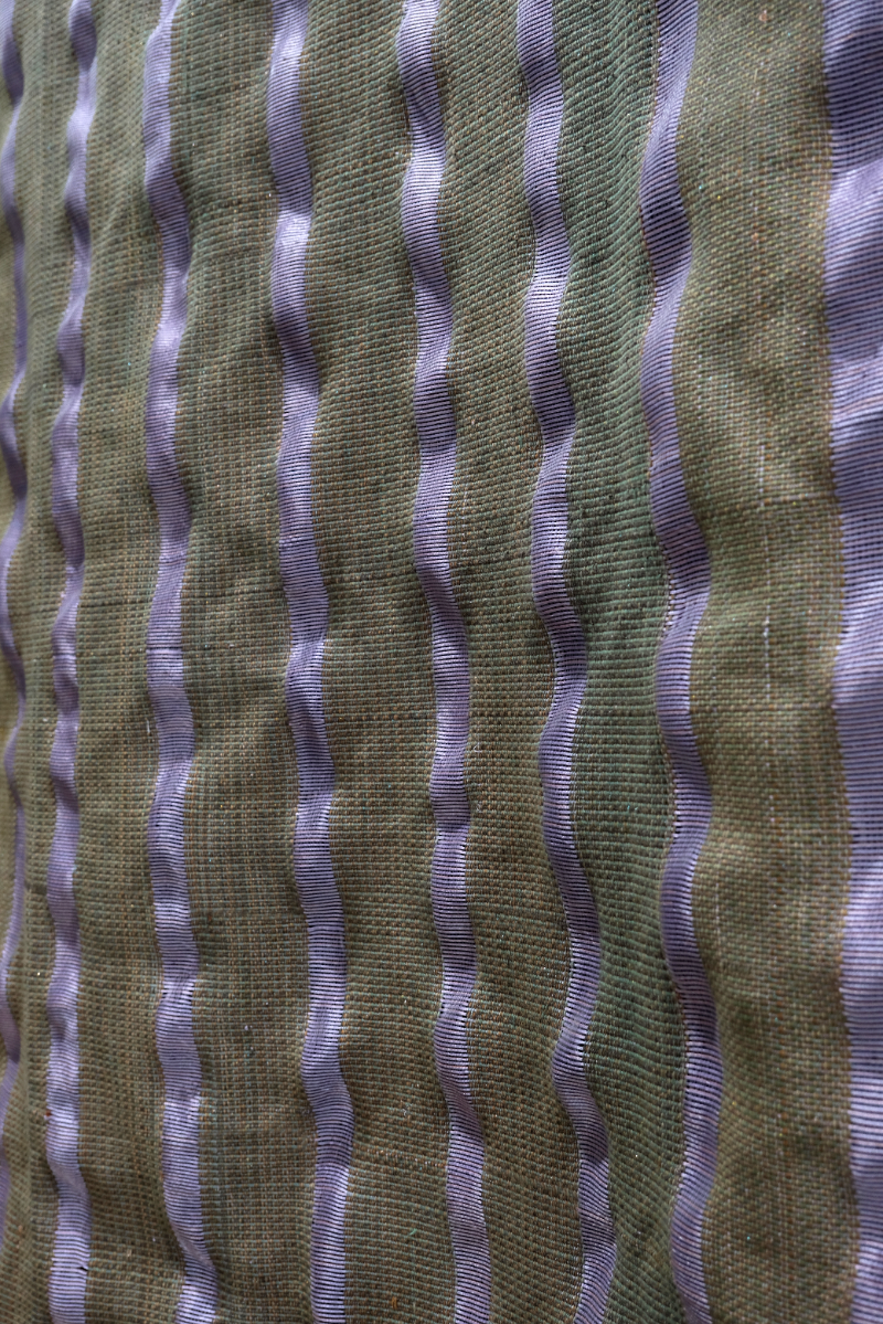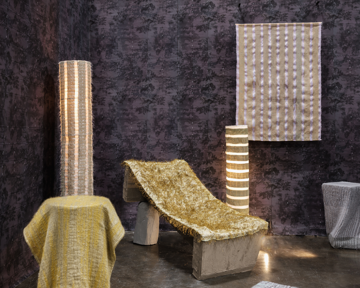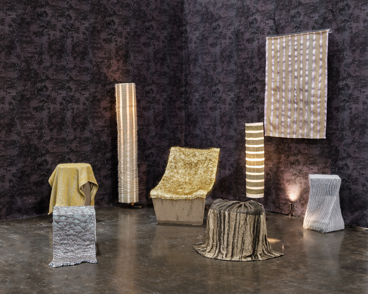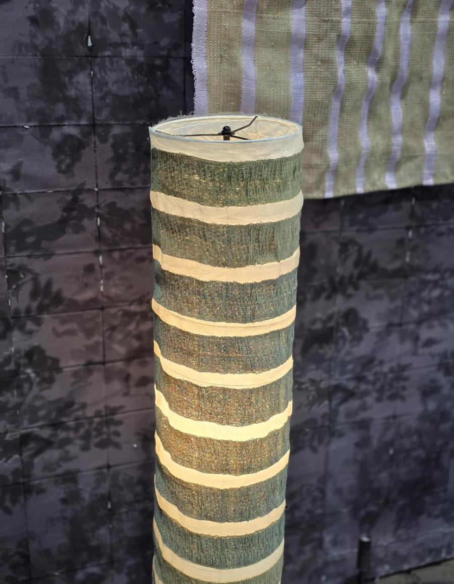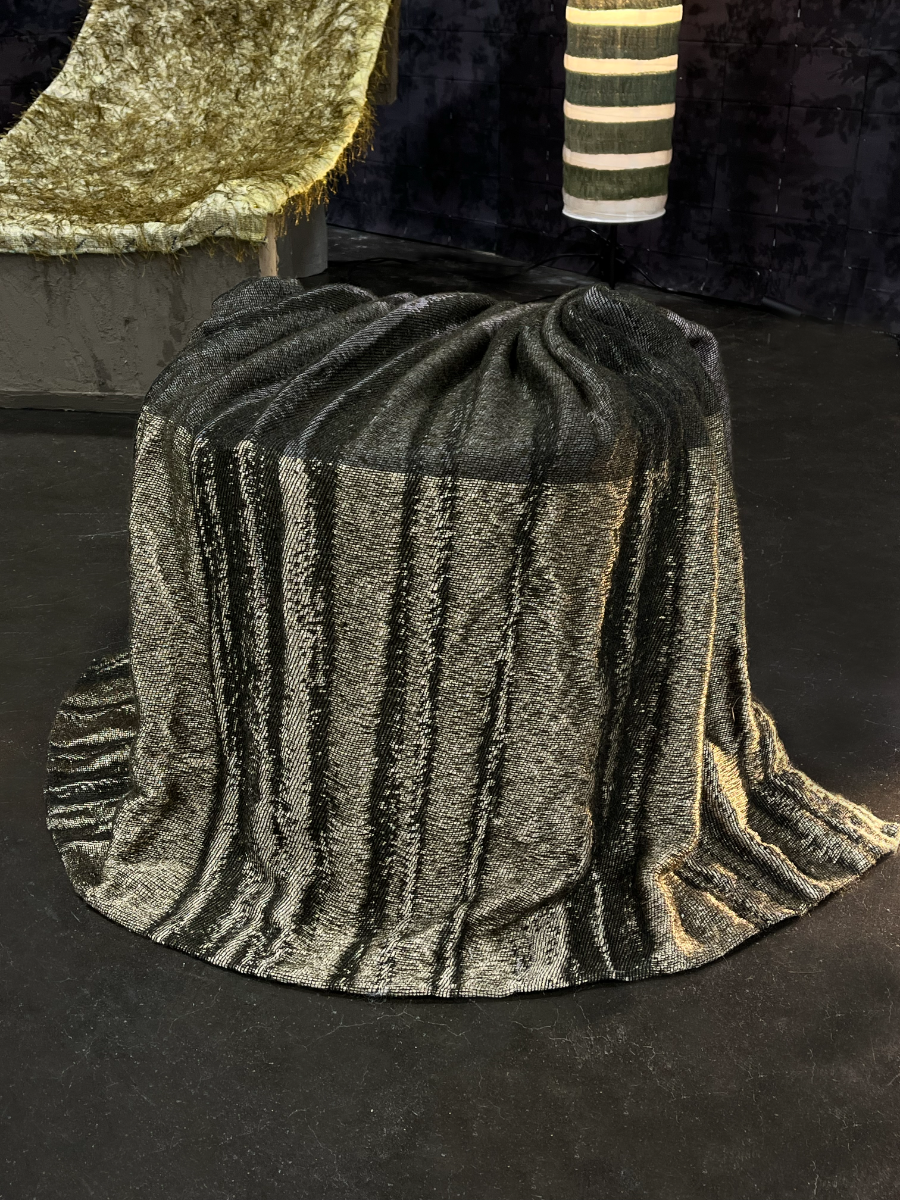 “Can a woven textile hold stillness? Can it speak through silence? ”Immersive Stillness in Poetic Space: Textiles for an Uncertain World is a thesis that investigates how woven textiles can serve as vessels for emotional resonance and meditative stillness. Amid accelerating environmental and cultural change, this project explores how poetic space—shaped by materiality, light, and silence—can offer grounding and emotional refuge. The research unfolds through personal narrative, architectural and artistic case studies, hands-on weaving processes using dobby and Jacquard looms, and pattern design. Ultimately, it proposes a new way of inhabiting interior space—one that embraces presence, softness, and quiet depth. Each woven textile is presented as a material in its own right, offering potential value and possible applications for future use in interior spaces.