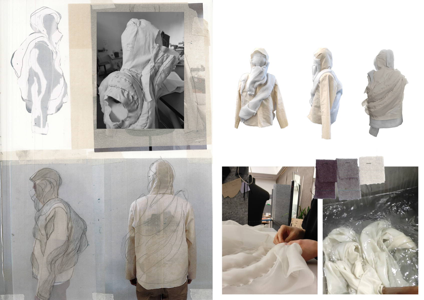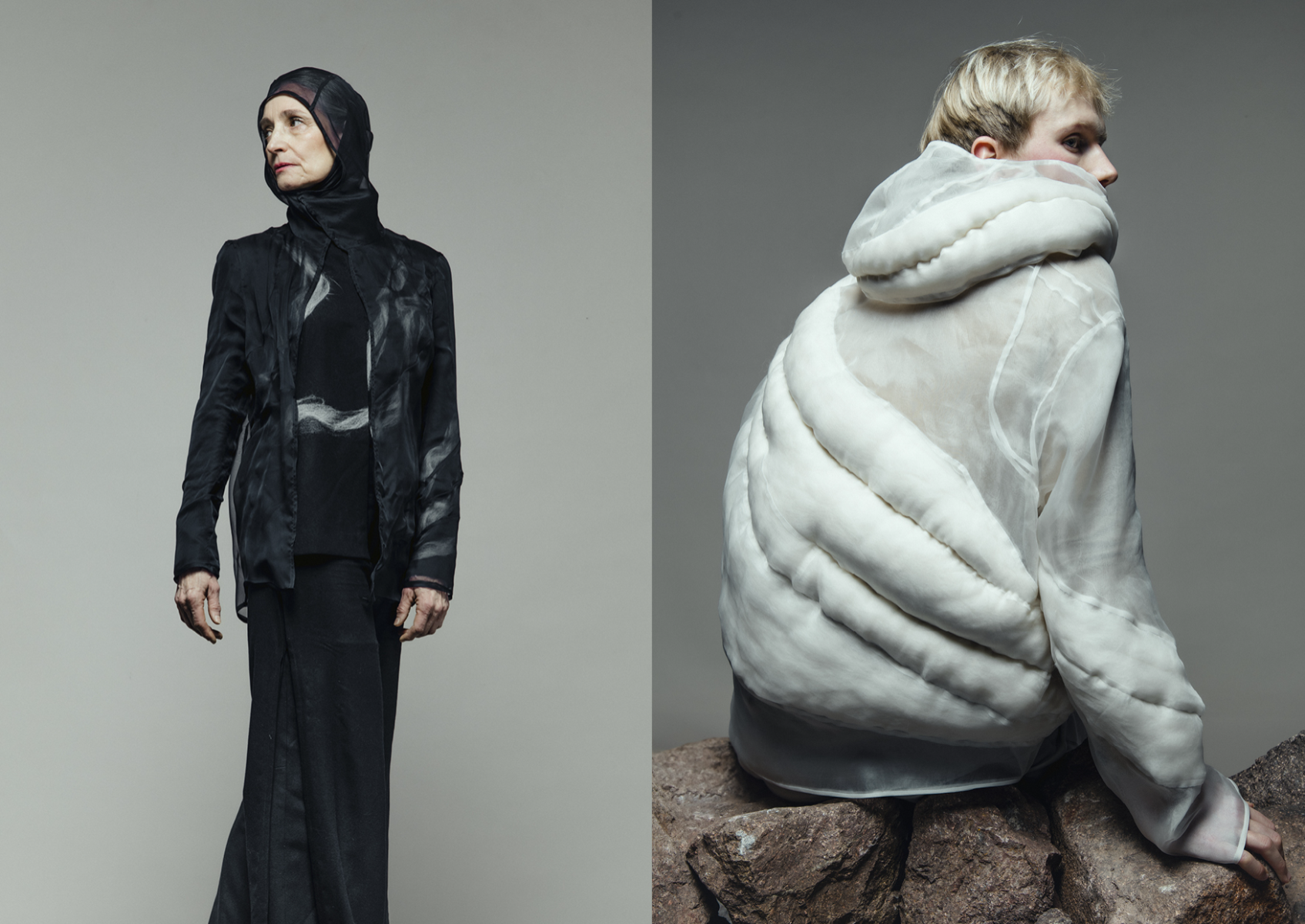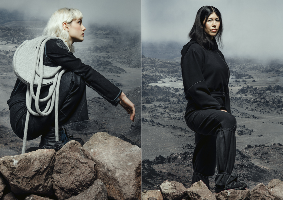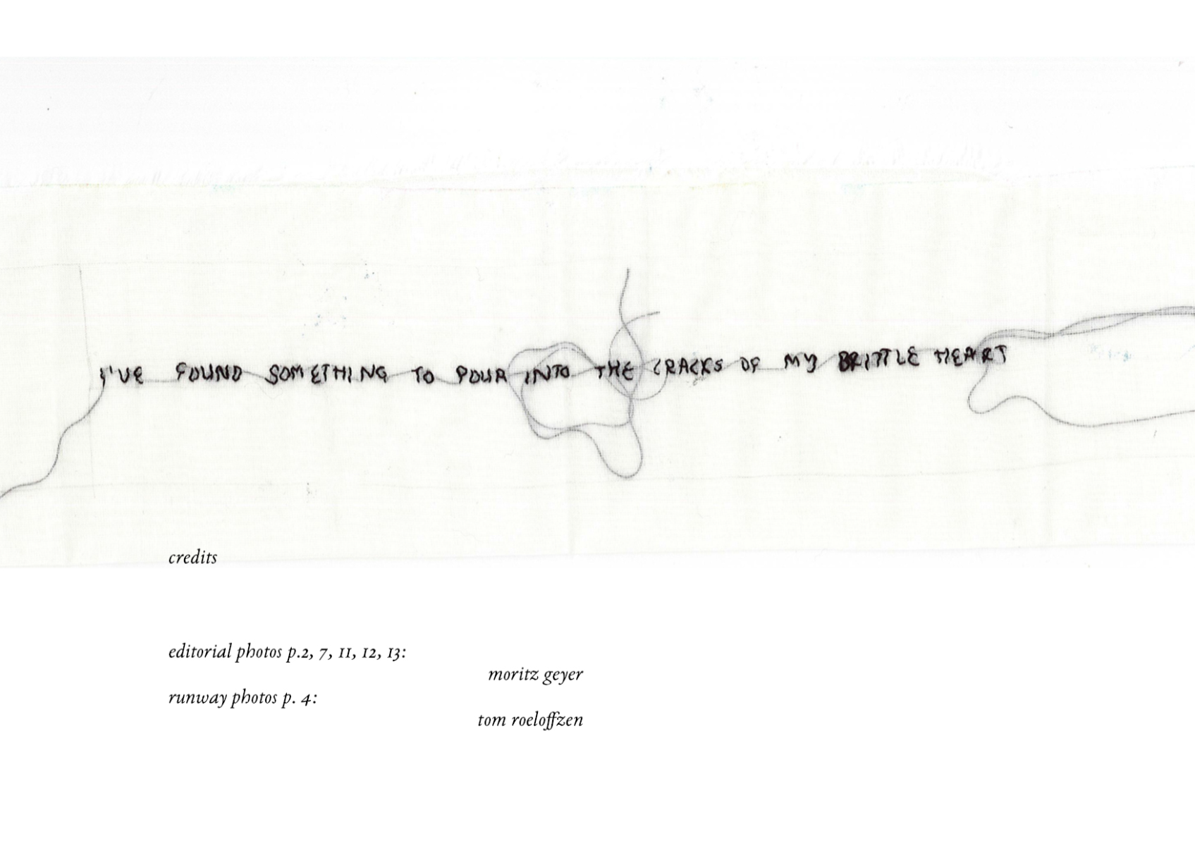 ‘I‘ve found something to pour into the cracks of my brittle heart’ is dedicated to the pleasure of feeling oneself in nature and translates these impressions into a fashion collection. As objects that lie directly on the skin and influence the relationship between body and outside world, the collection is intended to stimulate the connection between the rational and the knowledge that comes from feeling one‘s own surroundings. The aim is to connect with nature, the material and the process itself.