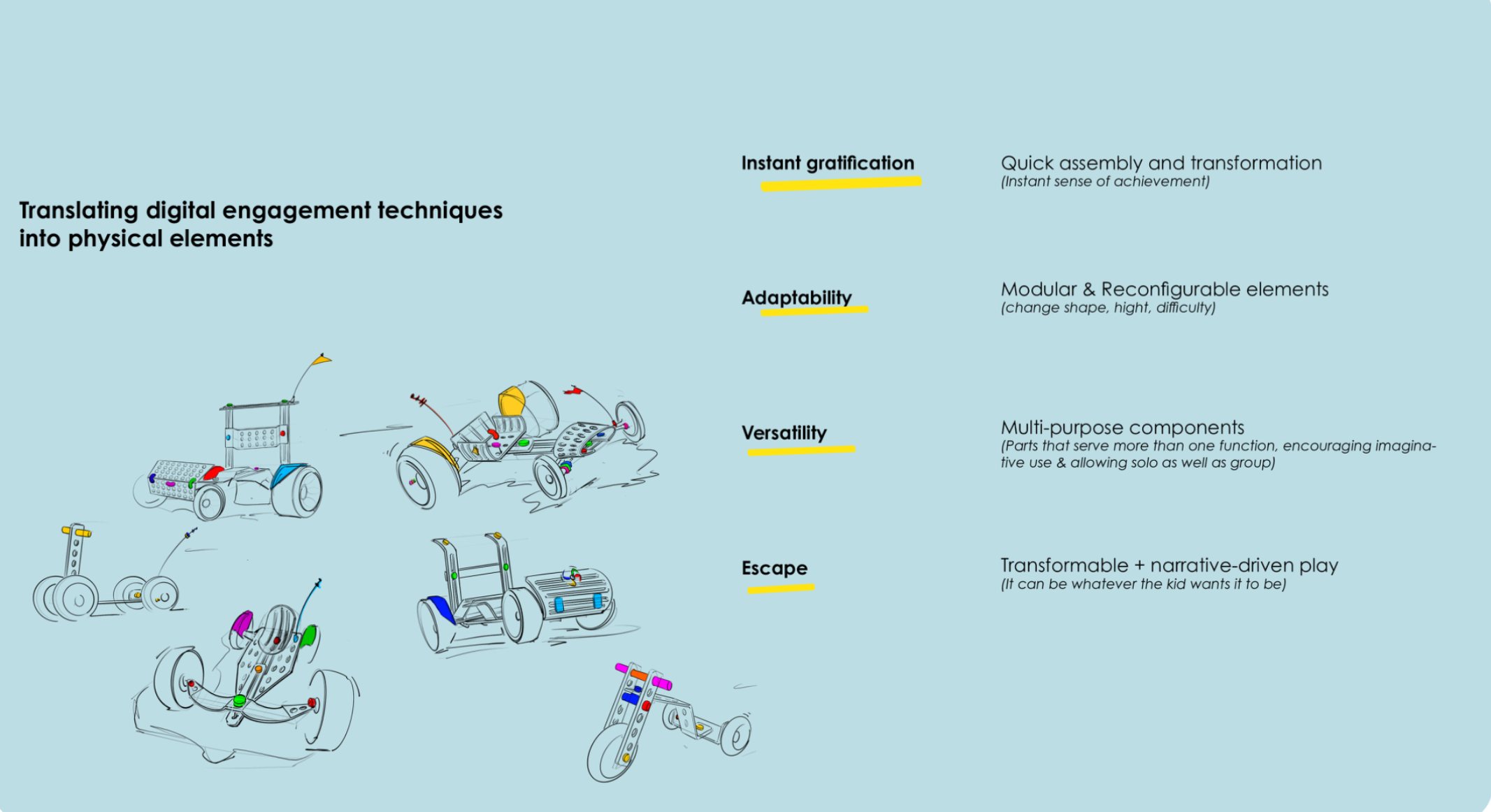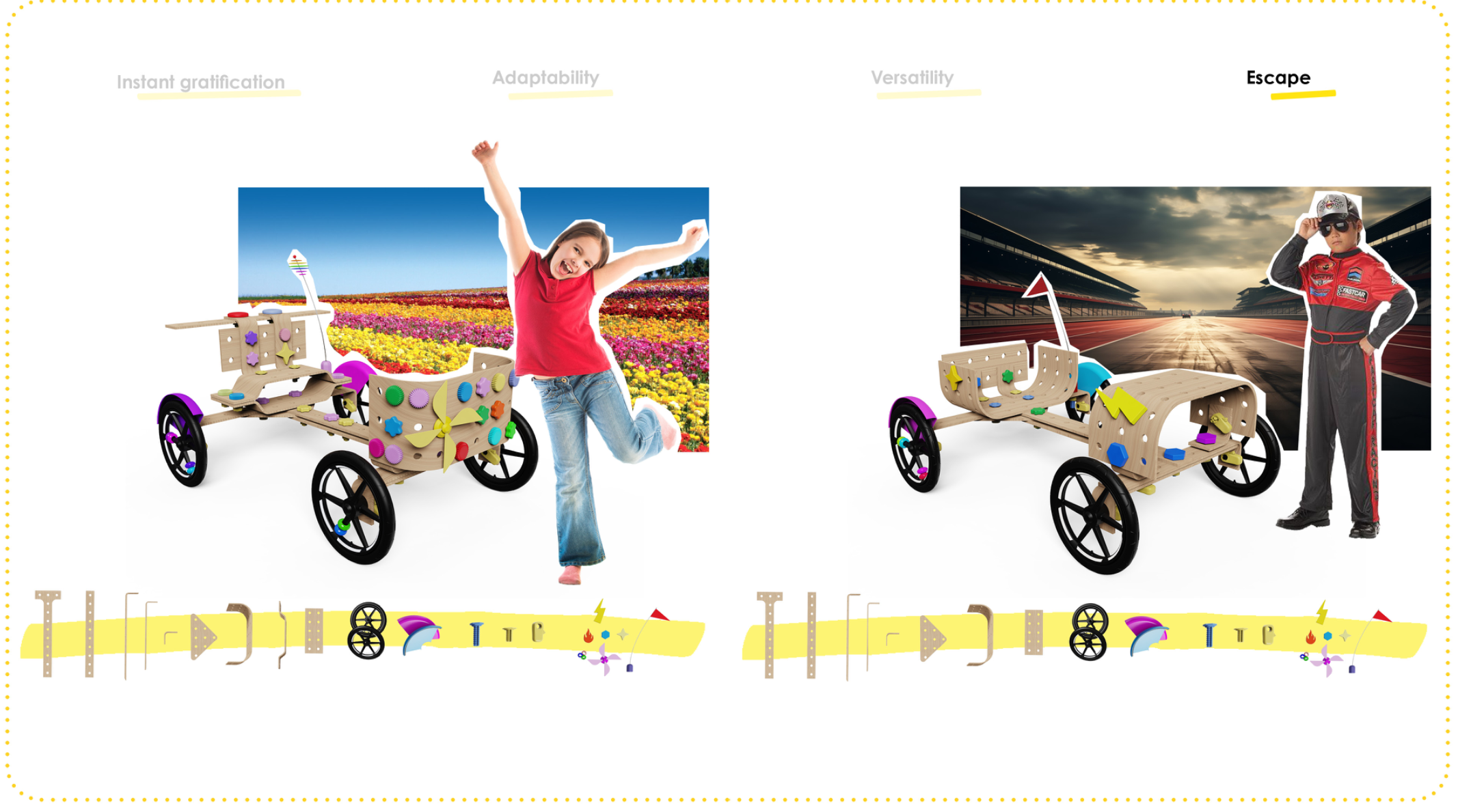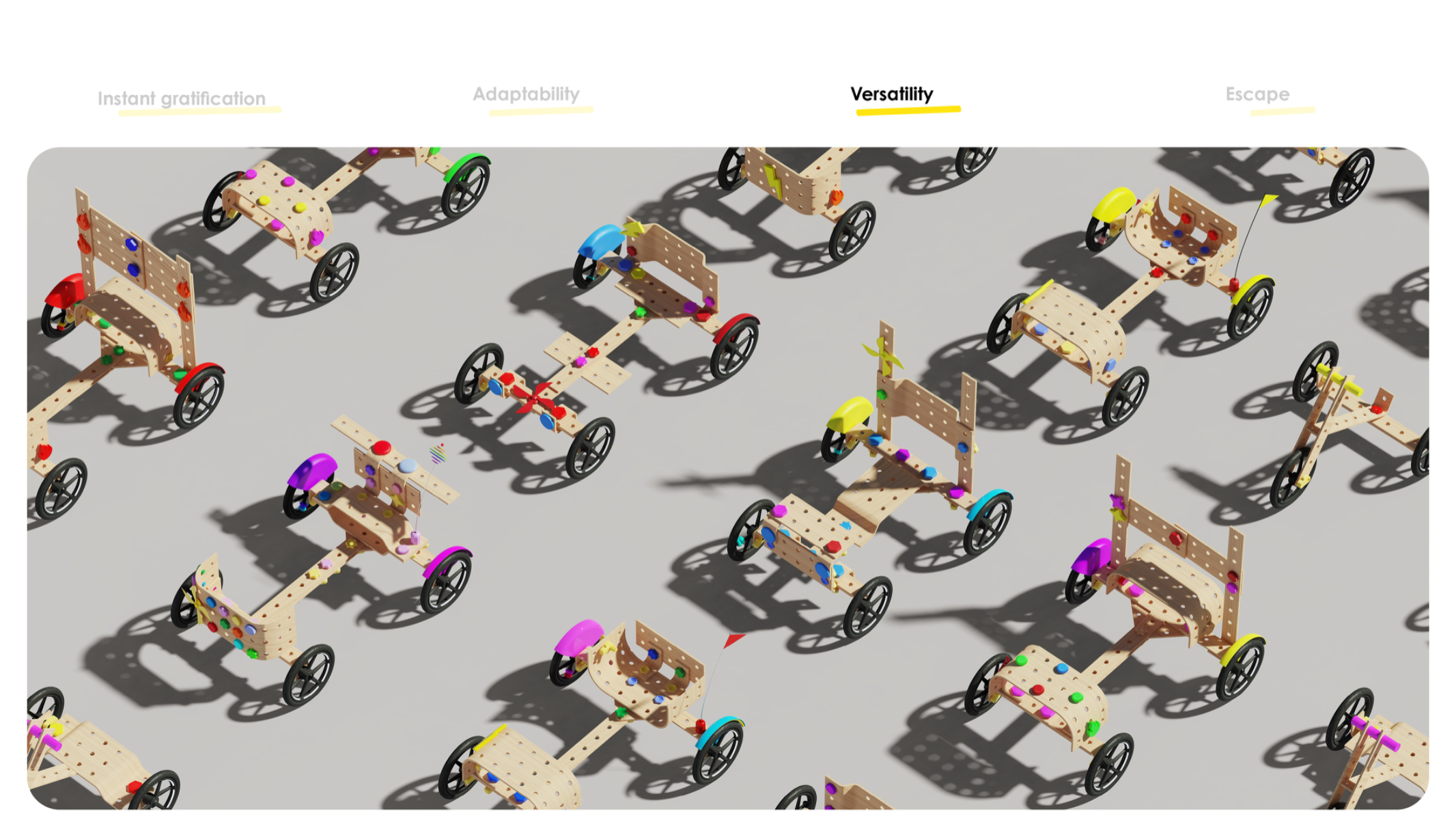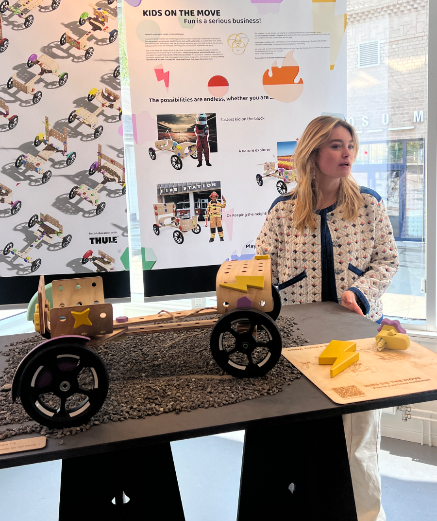 Kids on the Move explores how digitalisation is reshaping how children play, and what’s lost when screen-based entertainment replaces physical, real-world activities. As screen time increases, motor skill development, creativity, and spontaneous outdoor activity are rapidly declining. This project responds to that shift, asking: What if we could translate the captivating qualities of digital entertainment into something physical, social, and active? To answer that, I used the soapbox car, a classic symbol of DIY fun and independence, as a design medium. Chosen not only for its playful potential but also for its nostalgic value, the soapbox car is something many adults relate to from their own childhood, creating a cross-generational link between parent and child. The project was developed in collaboration with Thule, a brand committed to enabling active lifestyles. Their interest in children’s physical activity aligned perfectly with the project’s vision to inspire movement and imaginative outdoor play.