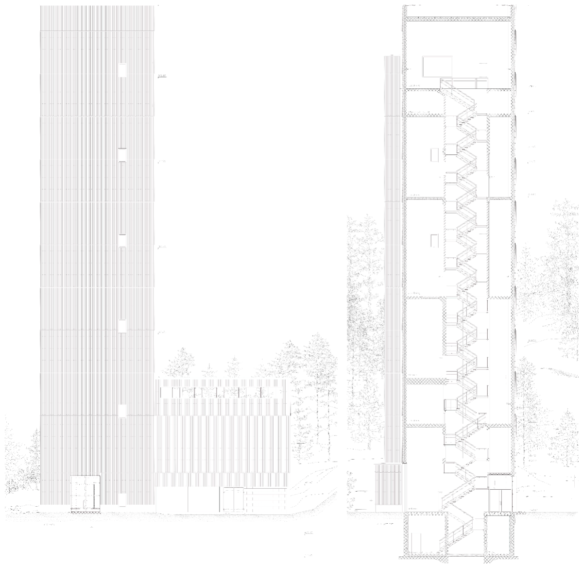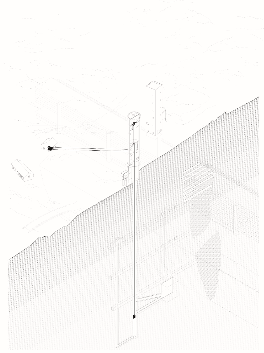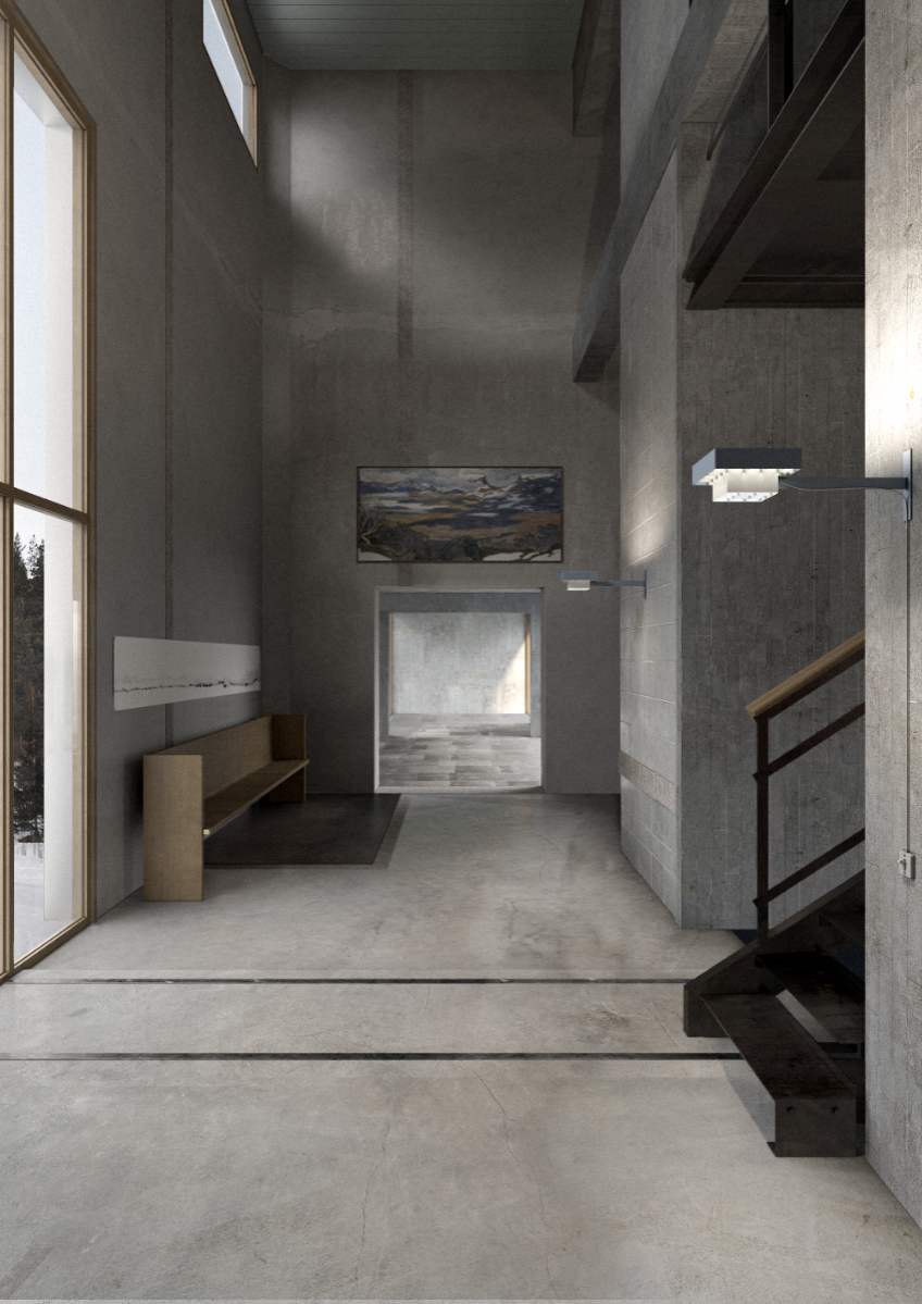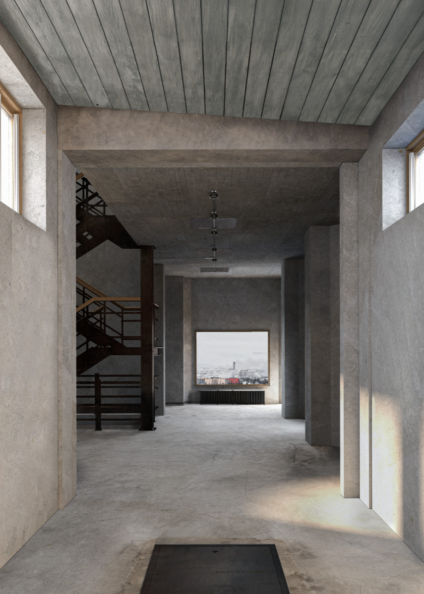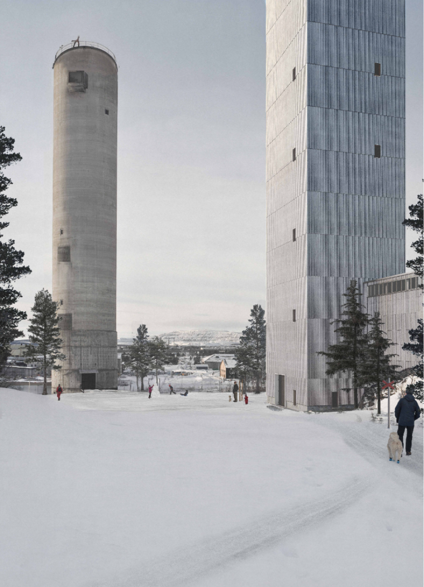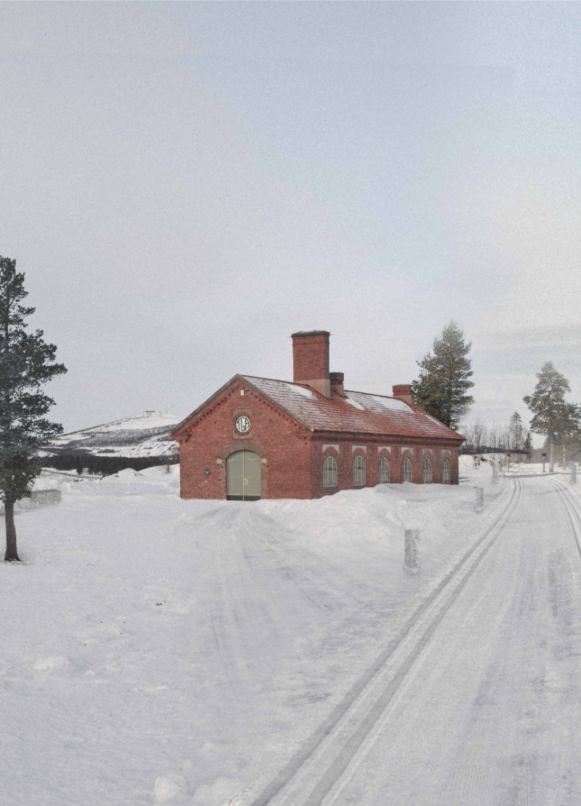 The project takes place in the ongoing relocation of Kiruna’s town center. As part of the relocation, the decommissioned mining area Tuolluvaara Gruv AB will play a central role in the new city center. With the aim of preserving the remaining structures of the mining site, the project explores how abandoned industrial buildings can be given new purpose through transformation, and how we can work sustainably with existing buildings instead of demolishing. Through our work, we aim to spark a discussion where industrial heritage, resources, and identity are at the center. The site is given a new role as a place of memory in the new city. A palce for reflection on the challenges and changes in the city’s identity brought about by the relocation. A threshold between landscape and city, between history and the present. A gateway between the new and the existing.