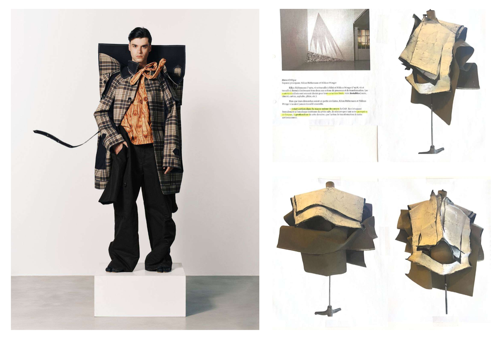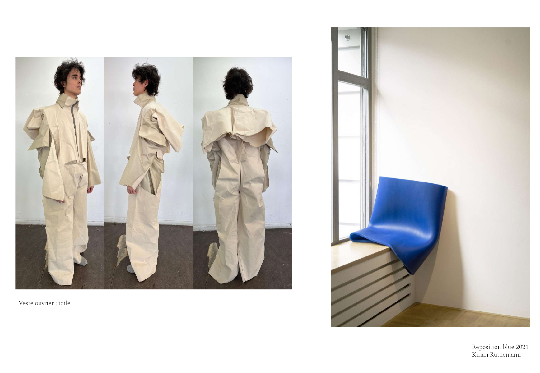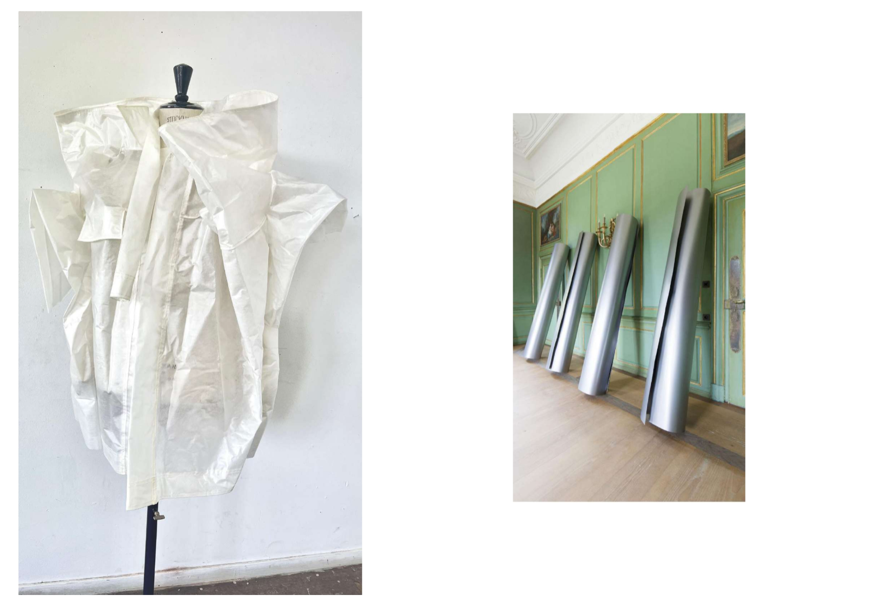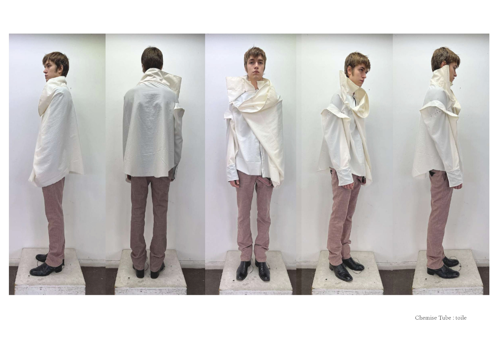 Looking at the work of the artist Kilian Rüthemann, I adapted the sculptor's shapes and creative process to the body. The tubes became volumes in attitude to highlight the archetype of the pieces. It started with big rectangles, using both 2D and 3D techniques, and then tubes. Using a stiff fabric or a fine jersey, I wrapped the body in tubes.