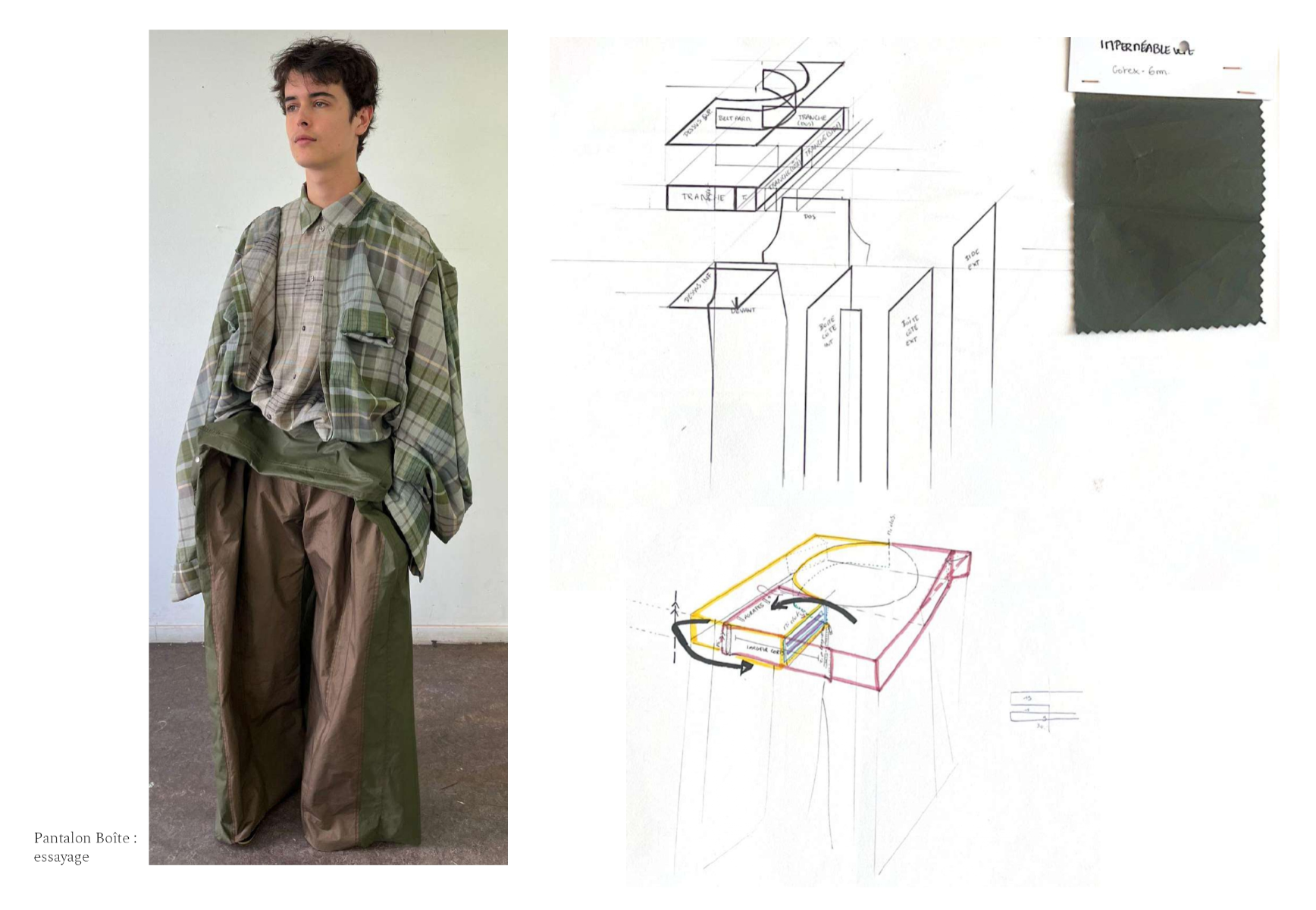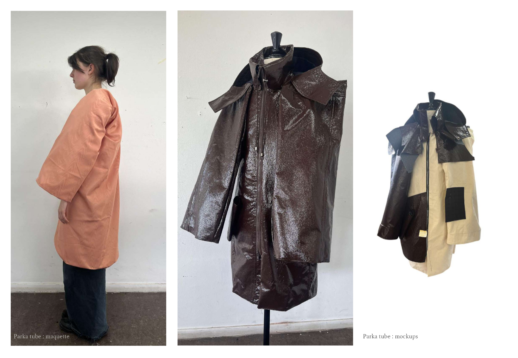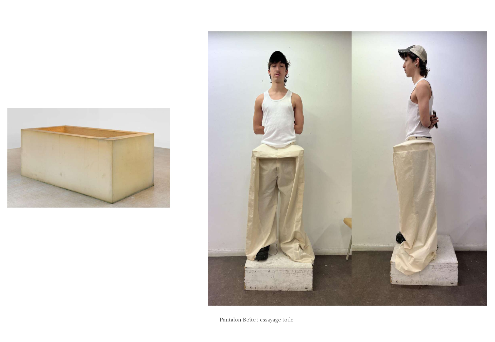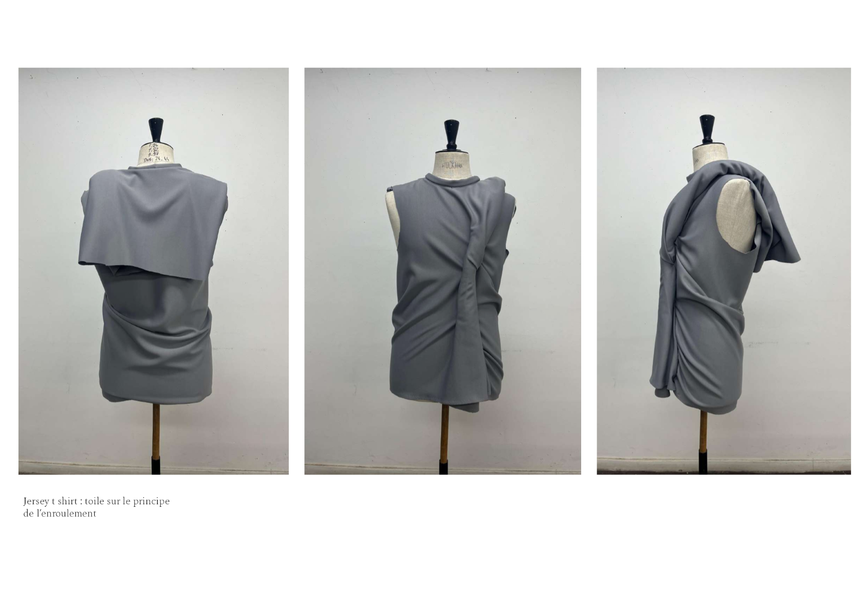 Looking at the work of the artist Kilian Rüthemann, I adapted the sculptor's shapes and creative process to the body. The tubes became volumes in attitude to highlight the archetype of the pieces. It started with big rectangles, using both 2D and 3D techniques, and then tubes. Using a stiff fabric or a fine jersey, I wrapped the body in tubes.