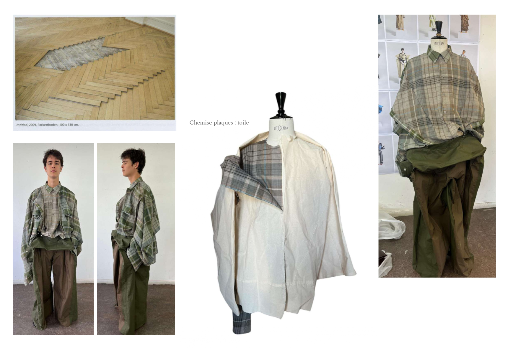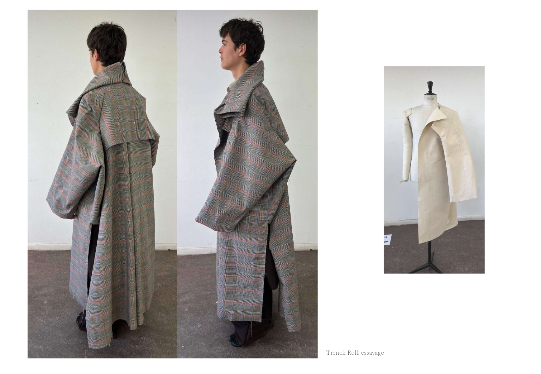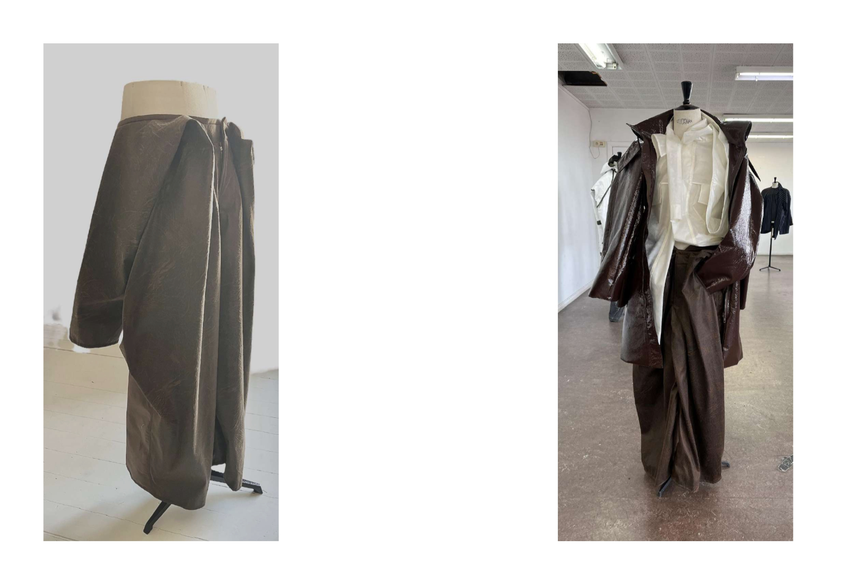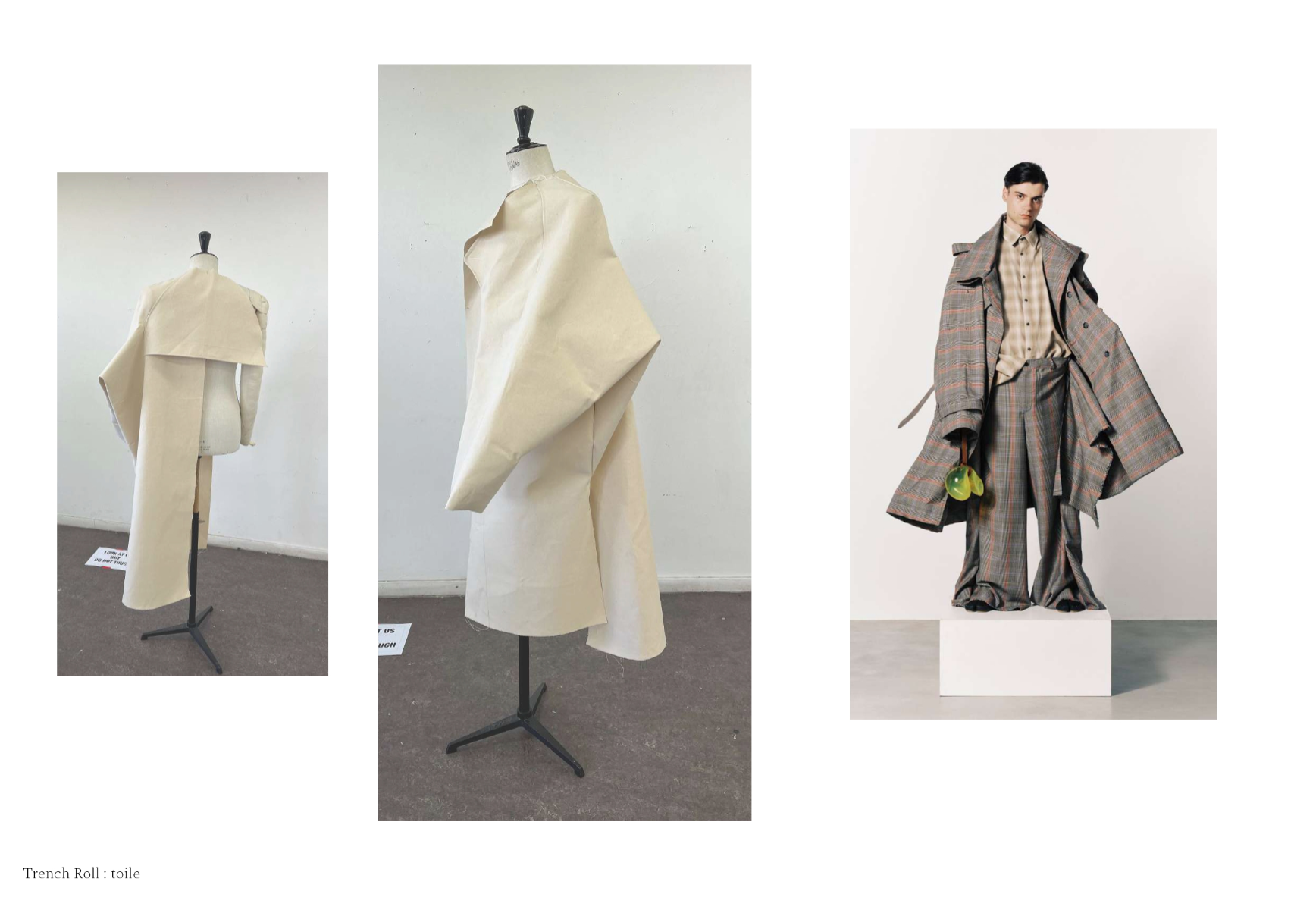 Looking at the work of the artist Kilian Rüthemann, I adapted the sculptor's shapes and creative process to the body. The tubes became volumes in attitude to highlight the archetype of the pieces. It started with big rectangles, using both 2D and 3D techniques, and then tubes. Using a stiff fabric or a fine jersey, I wrapped the body in tubes.