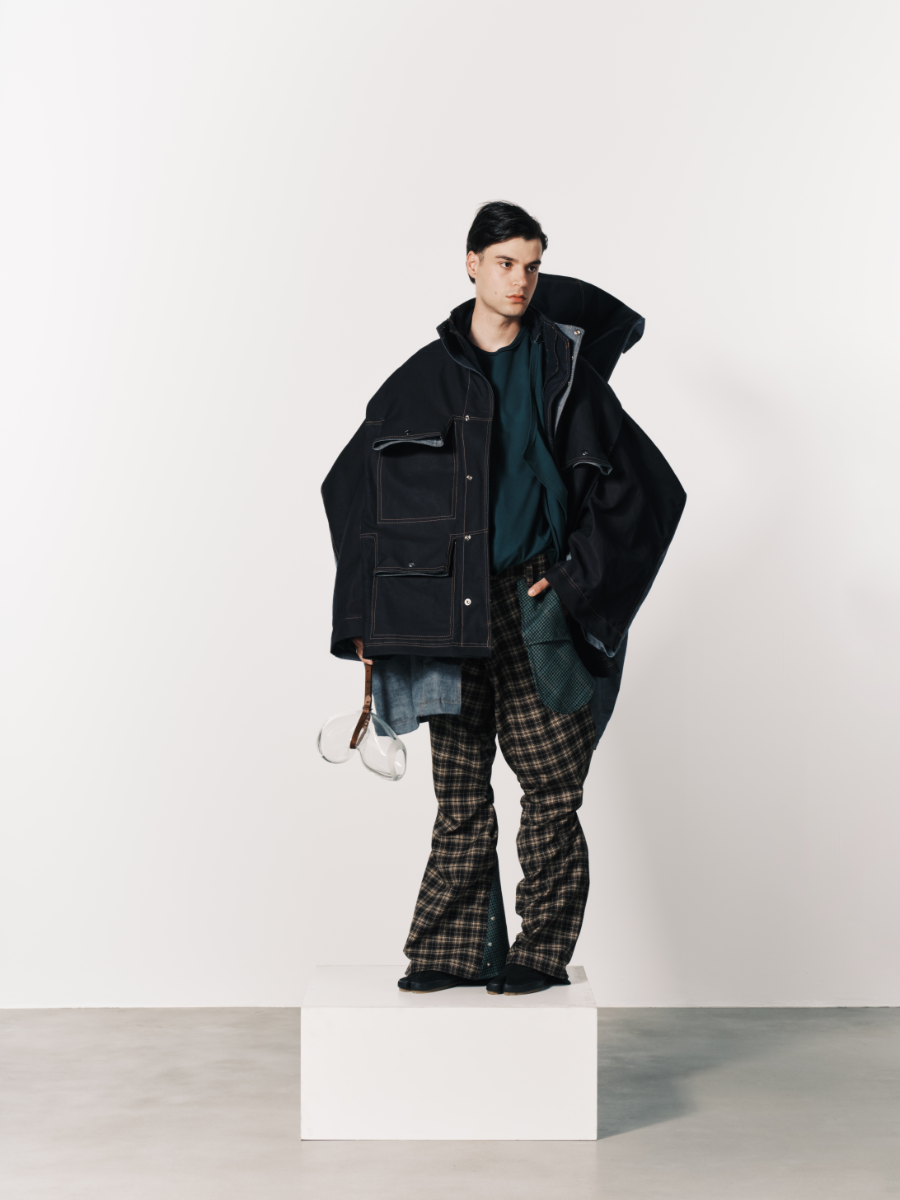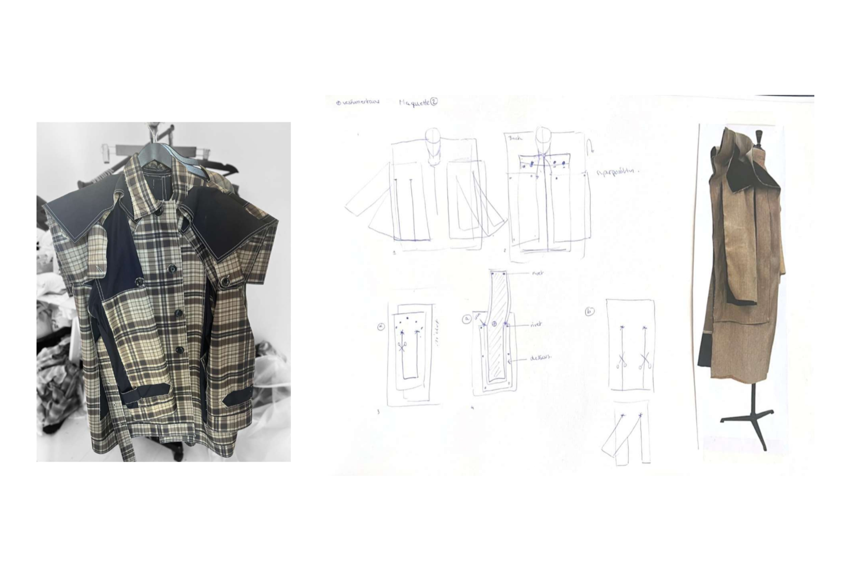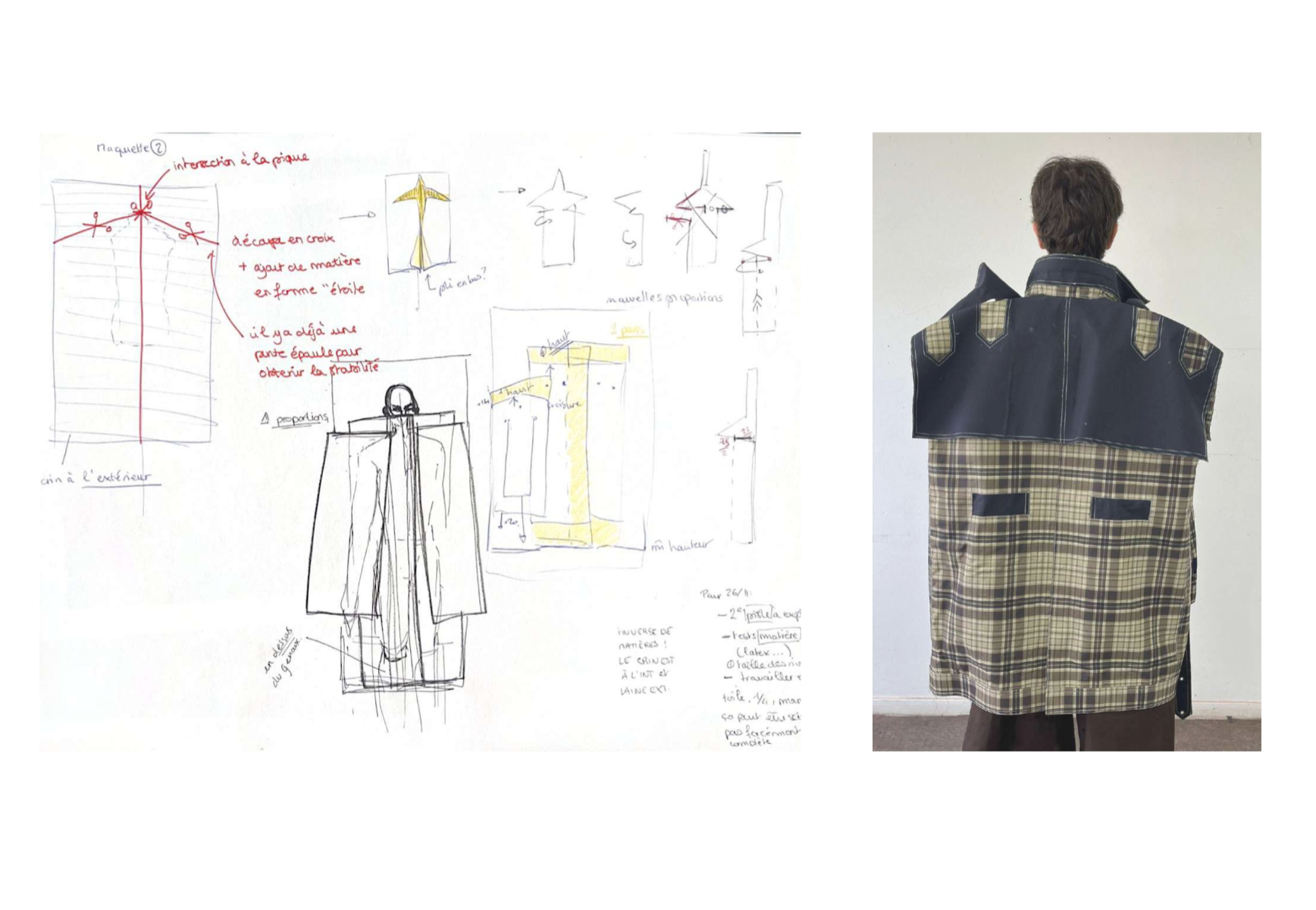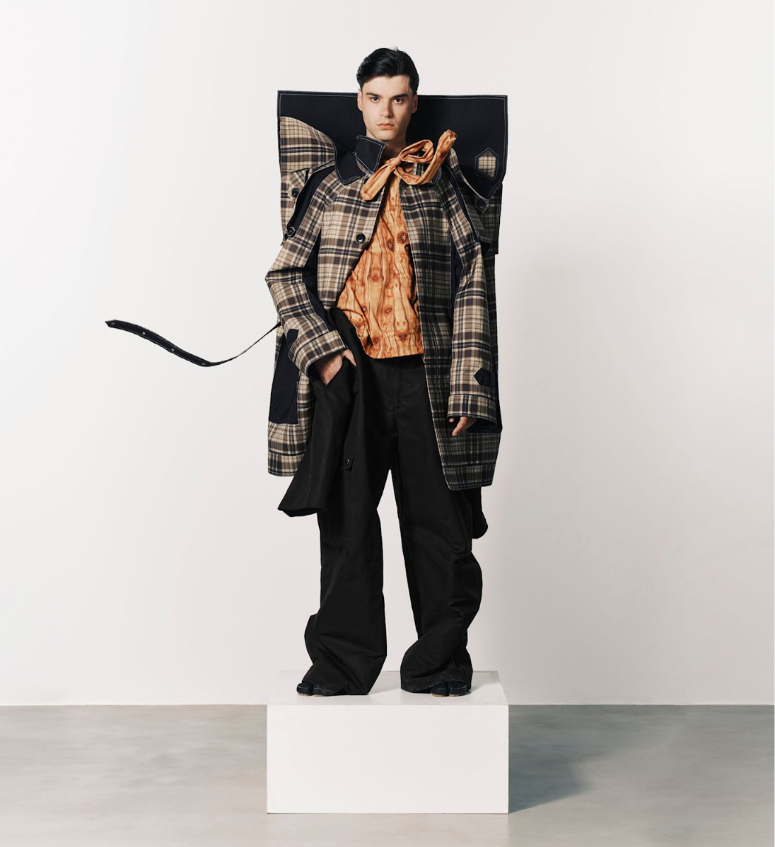 Looking at the work of the artist Kilian Rüthemann, I adapted the sculptor's shapes and creative process to the body. The tubes became volumes in attitude to highlight the archetype of the pieces. It started with big rectangles, using both 2D and 3D techniques, and then tubes. Using a stiff fabric or a fine jersey, I wrapped the body in tubes.