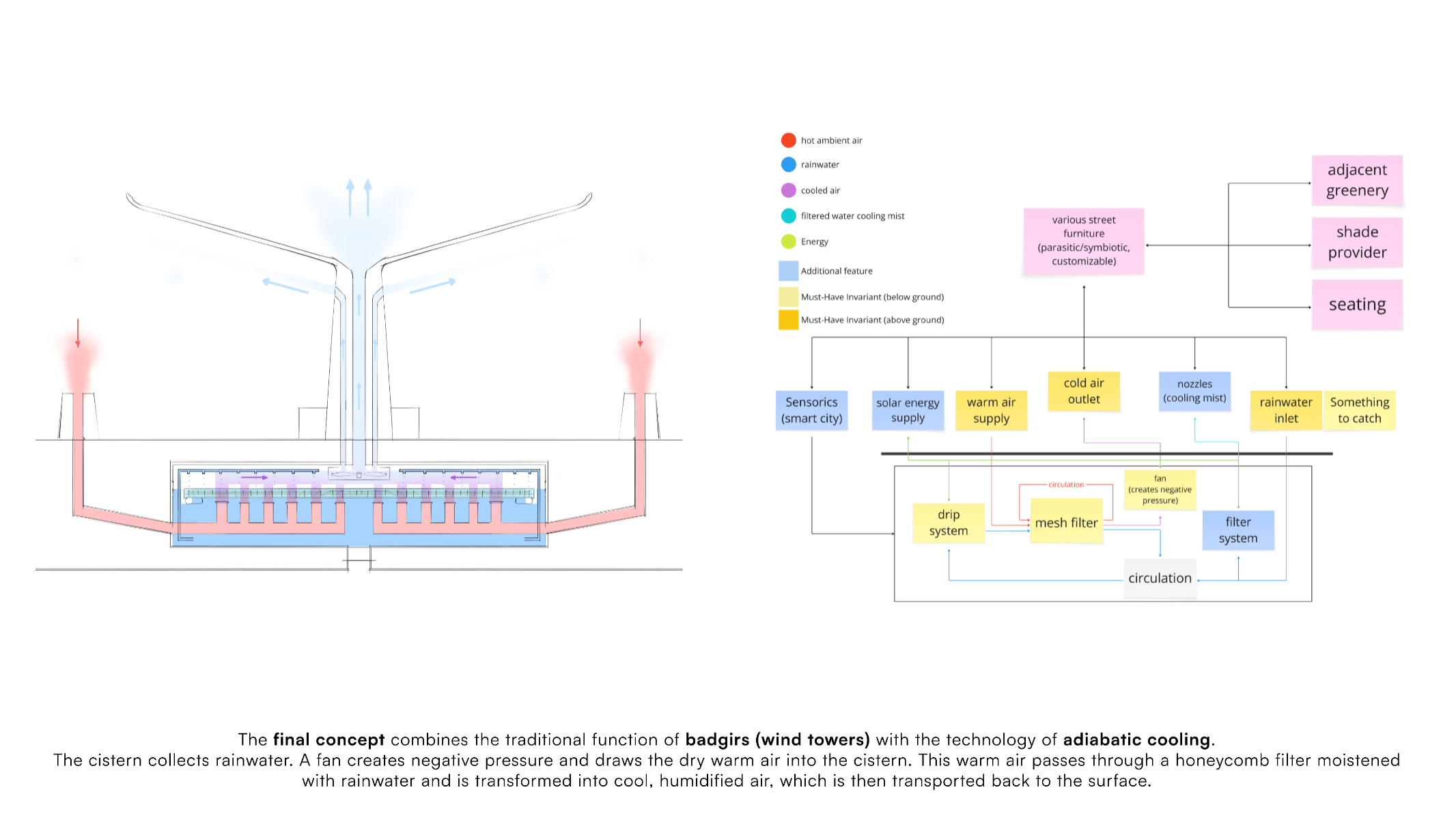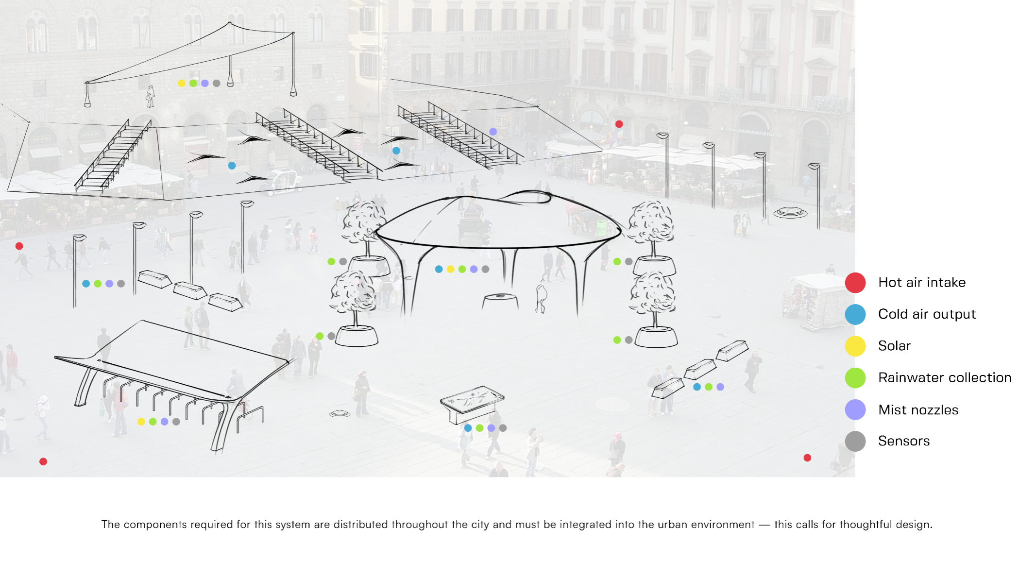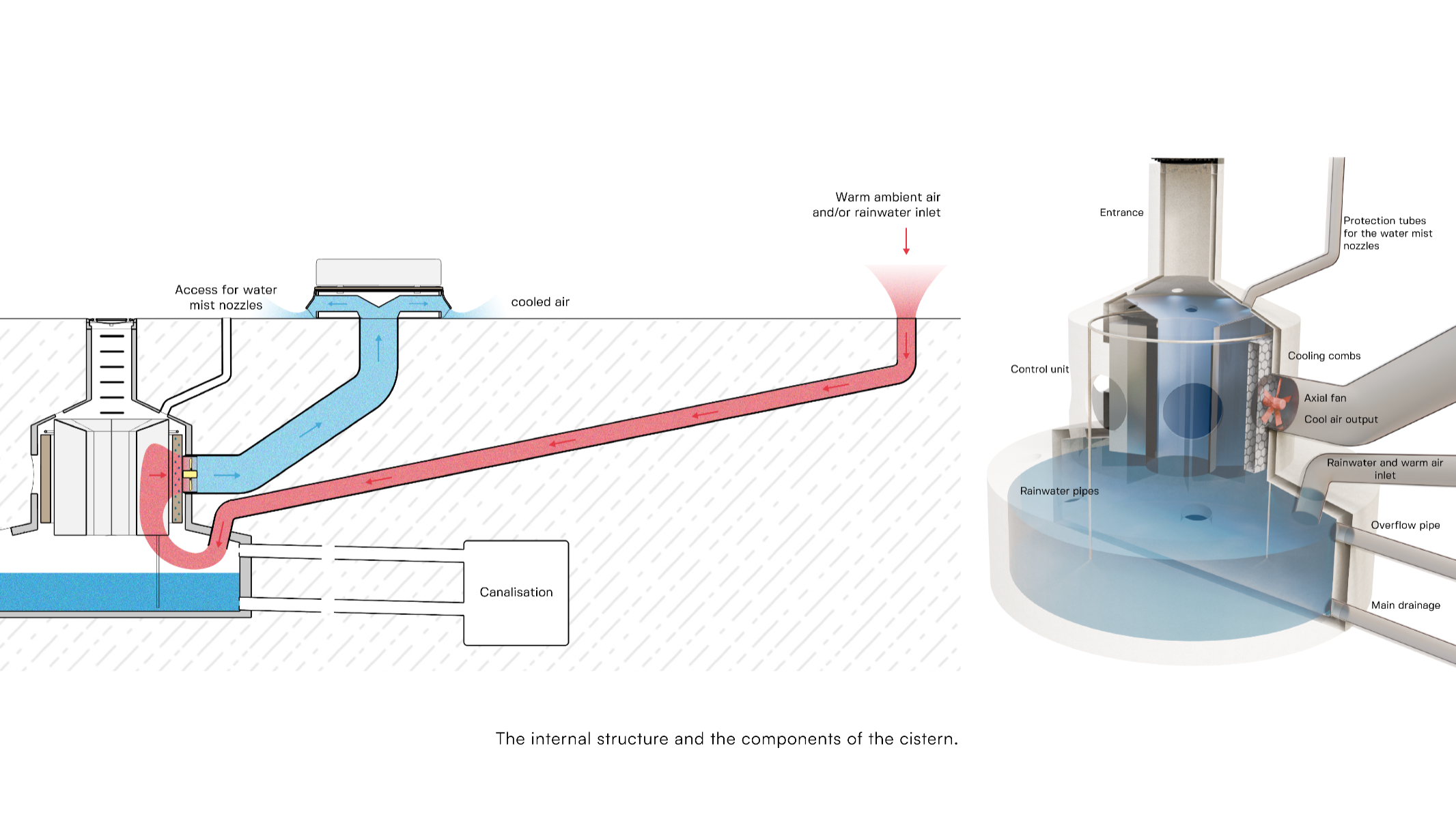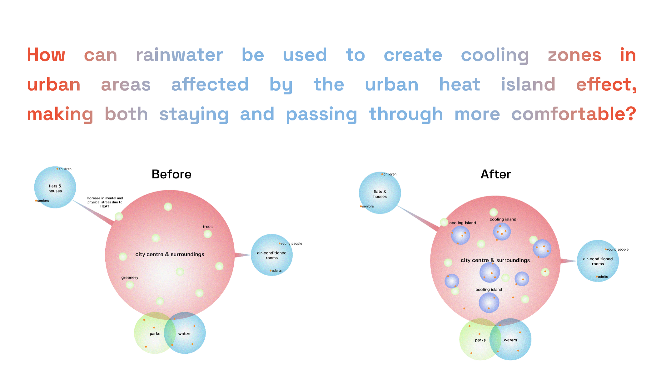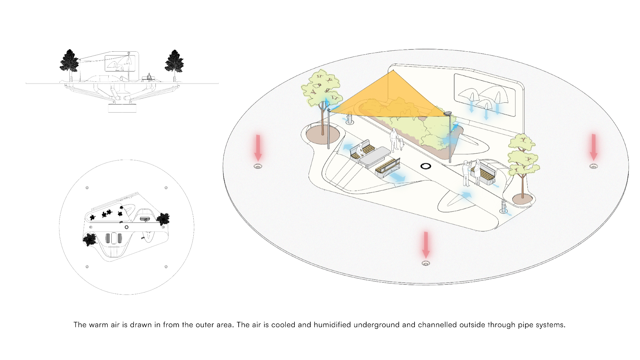 OASyS tackles the challenge of urban heat islands by harnessing rainwater within a modular cooling system. Through adiabatic cooling and fine mist nozzles, it lowers ambient temperatures in public spaces, creating more comfortable conditions for both relaxation and movement during heatwaves. In contrast to conventional solutions such as trees, which often suffer during periods of drought, this system continues to perform reliably under extreme weather. At the same time, it functions as a rainwater retention system, reducing the risk of flooding from heavy storms. Its adaptable and modular design makes it suitable for diverse urban settings, providing a sustainable, efficient, and forward-thinking contribution to climate-resilient cities.