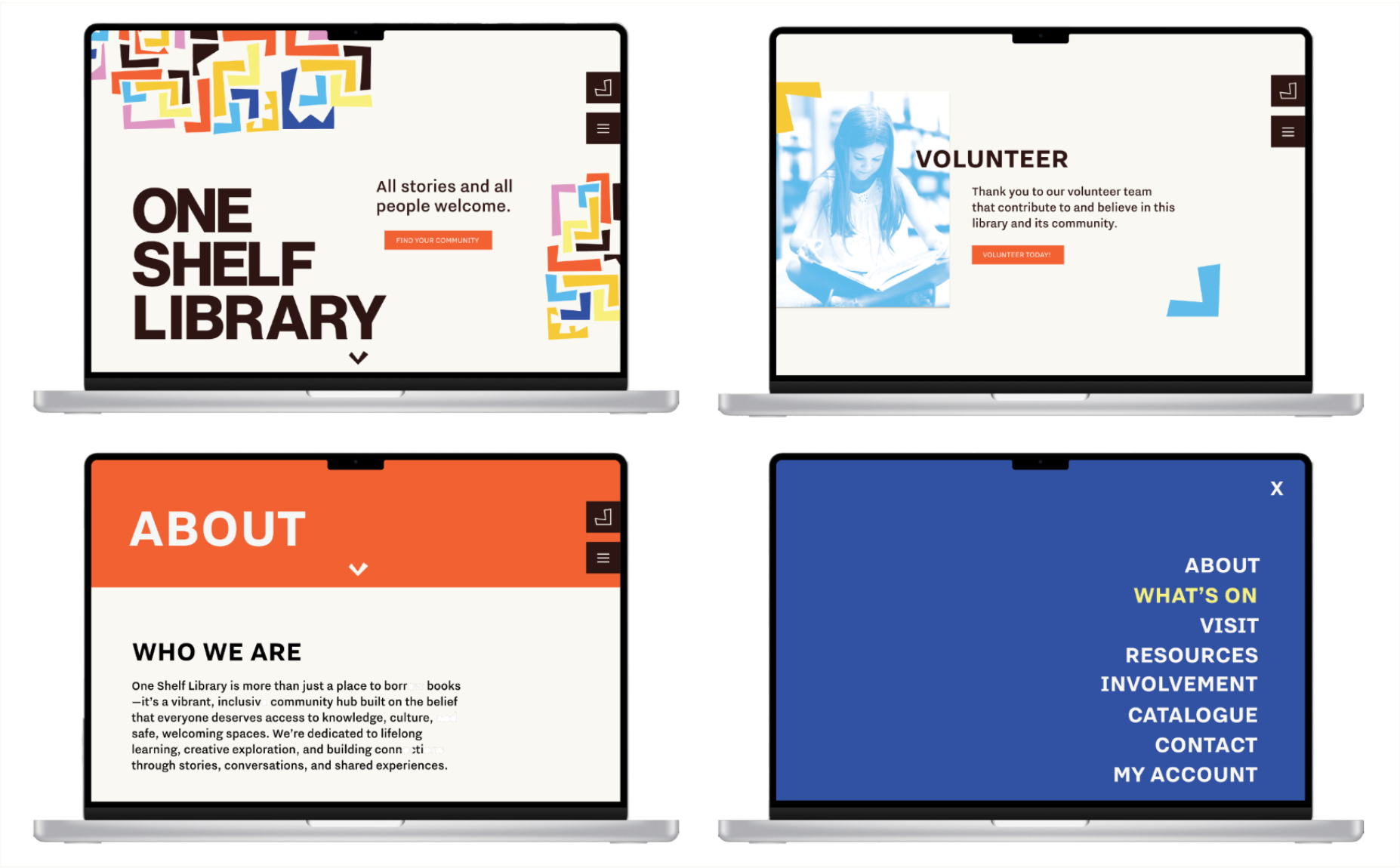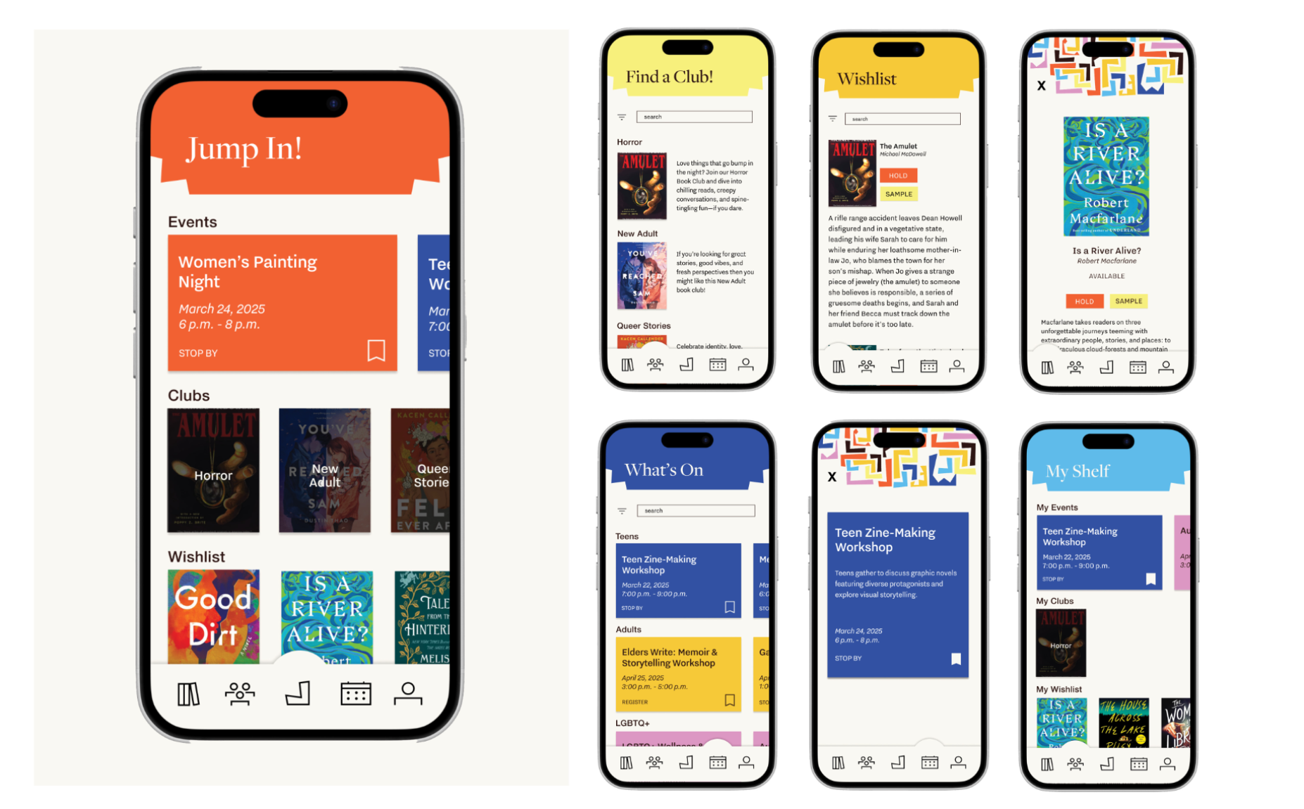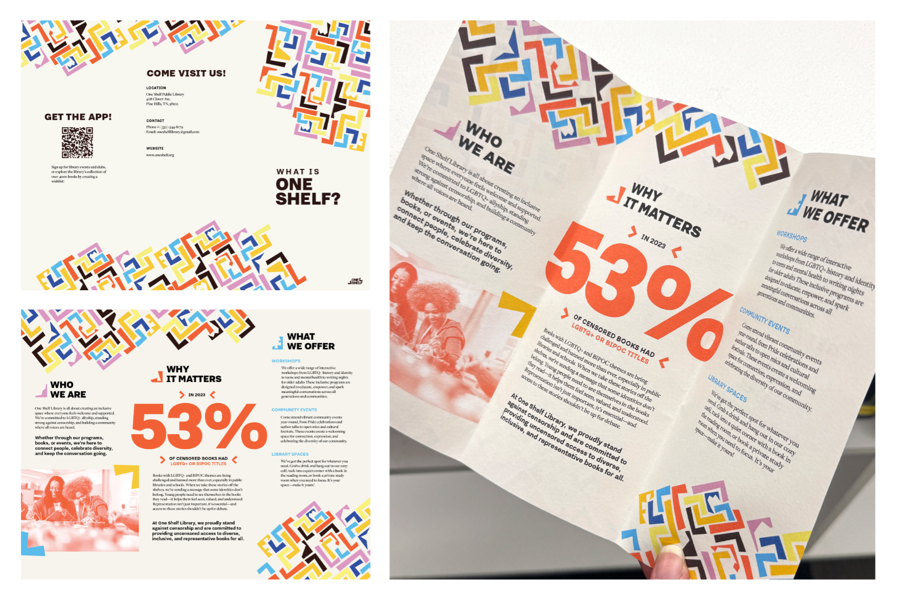 One Shelf Library is more than just a place for books—it’s a space of belonging, creativity, and visibility. Built on the belief that even one shelf can hold a world of voices, One Shelf exists to uplift stories that are too often silenced. It serves as both a library and a gathering space for everyone, with a particular focus on marginalized communities, including queer and BIPOC individuals. In 2023, nearly half of all books targeted for censorship centered LGBTQ+ or BIPOC themes—a stark reminder of how urgently these stories need safe, visible homes. One Shelf is a joyful and intentional response to that need: a sanctuary where every person and every story is seen, heard, and honored. Designed with bright colors, friendly typography, and bold, expressive graphics, One Shelf feels playful, welcoming, and alive with possibility. But it’s more than an inviting aesthetic—it’s a community space grounded in care and connection. Whether you’re browsing the shelves, attending a workshop, or simply sharing space with others, One Shelf invites you to feel at home. It’s not just a collection of inclusive books; it’s an expression of what it means to create space for one another.