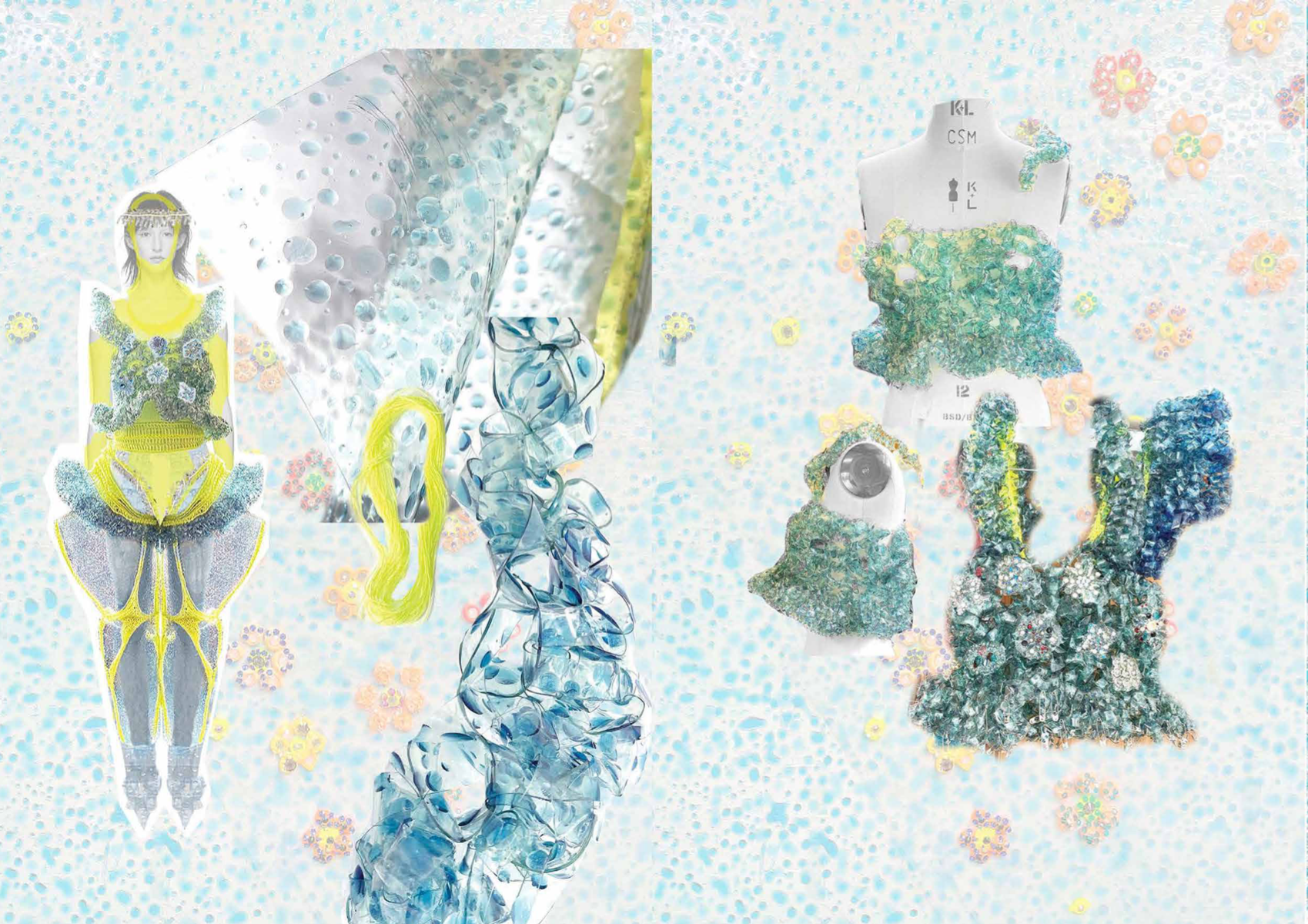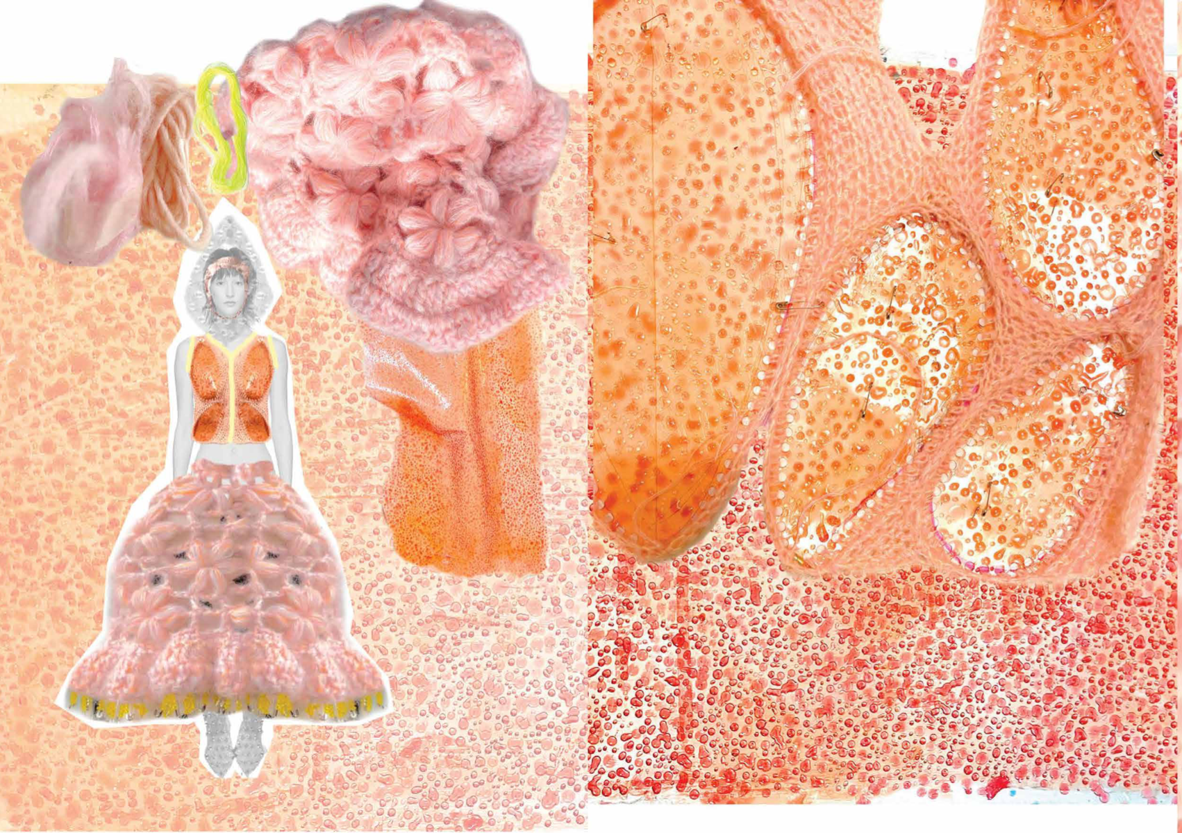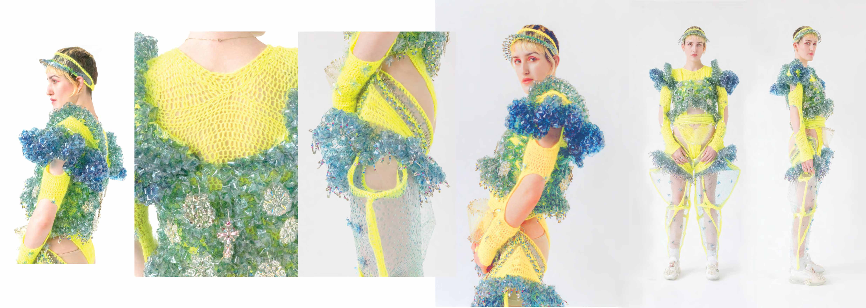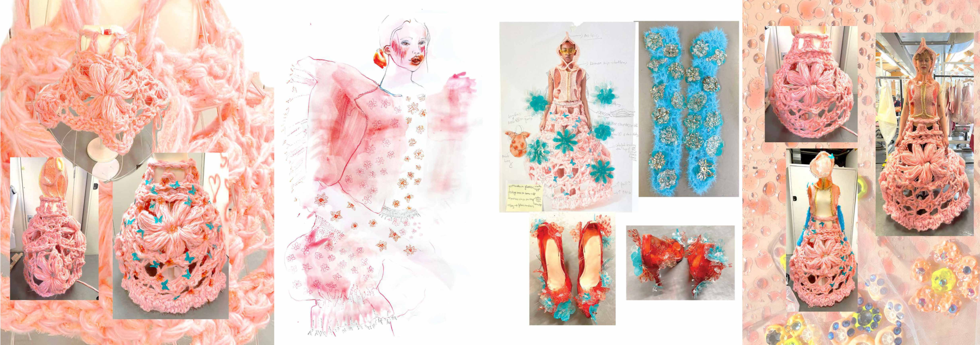 PINK MATRIX collection having motto: “Be MAD, be Bioluxury!” wants to counter the value of haute couture luxury fashion, by using “Bioplastic crystal leather”, the biomaterial, invented by the designer Mata Durikovic, used in different forms such as substitute for solid fabrics, embroidery, crochet yarns and in use with UV print. Her main inspiration comes from her grandmother's sustainable practices and their relationship. ''Cook it! Wear it! Eat it! Vitalise plants with it! ''