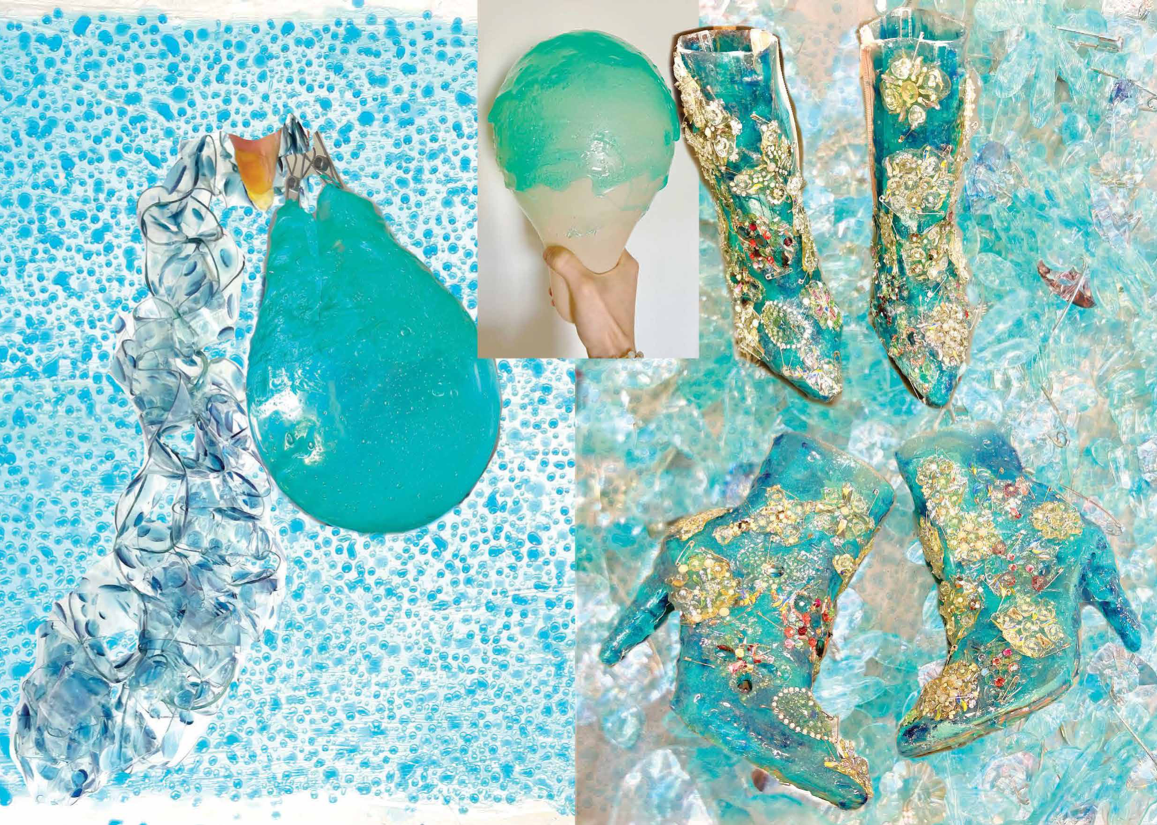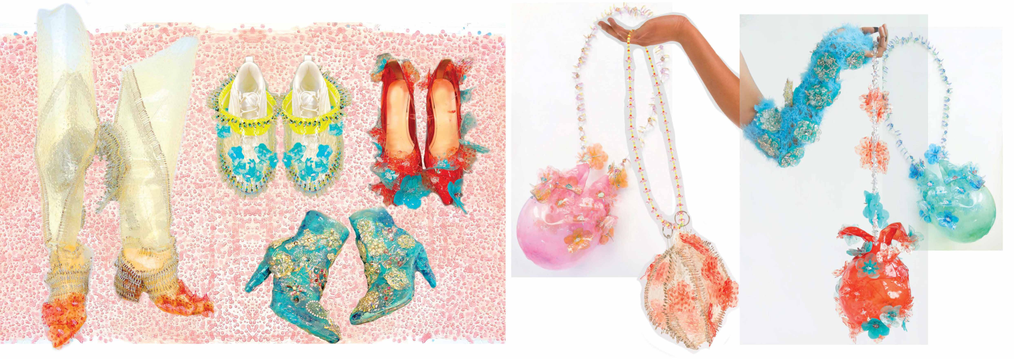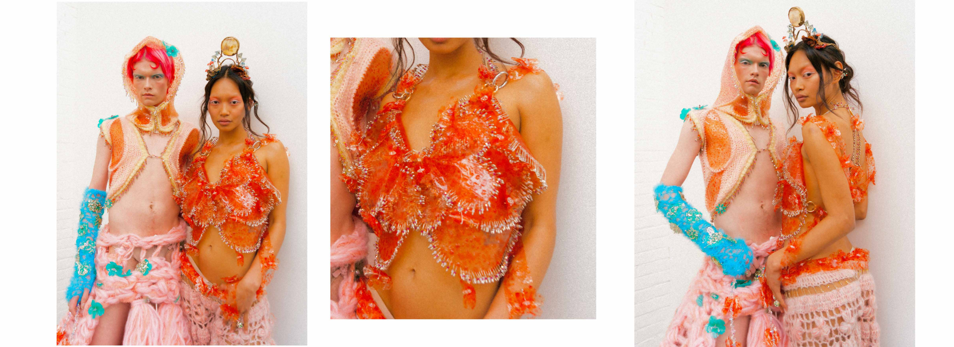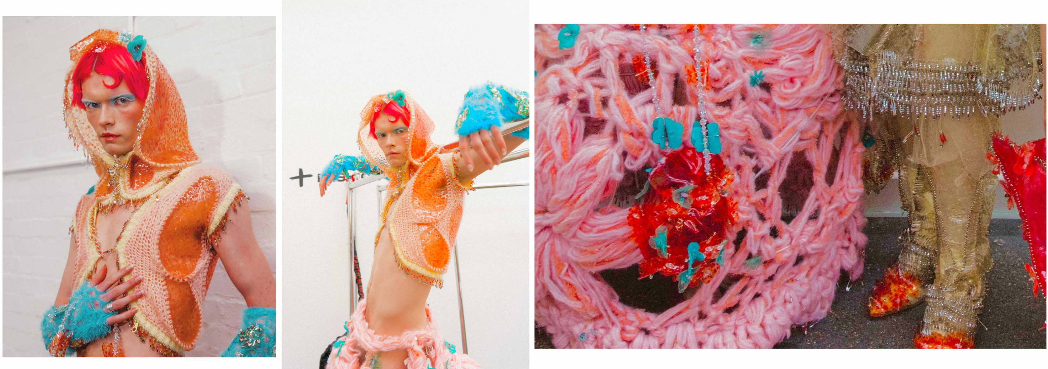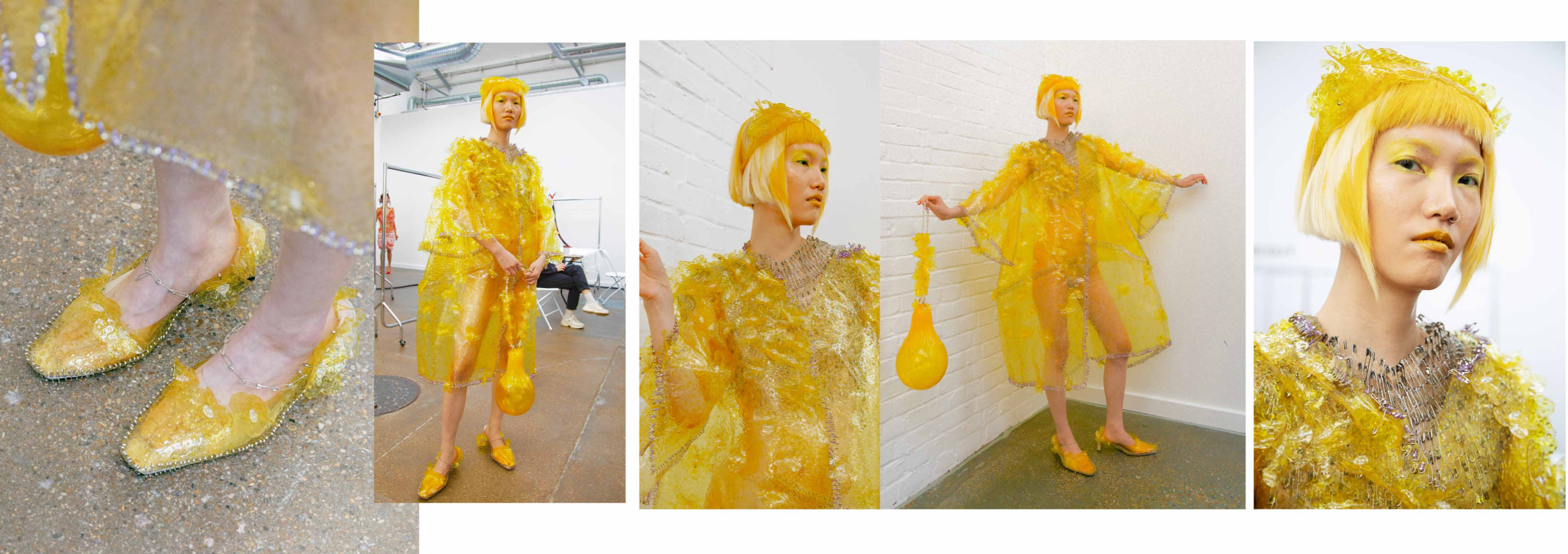 PINK MATRIX collection having motto: “Be MAD, be Bioluxury!” wants to counter the value of haute couture luxury fashion, by using “Bioplastic crystal leather”, the biomaterial, invented by the designer Mata Durikovic, used in different forms such as substitute for solid fabrics, embroidery, crochet yarns and in use with UV print. Her main inspiration comes from her grandmother's sustainable practices and their relationship. ''Cook it! Wear it! Eat it! Vitalise plants with it! ''