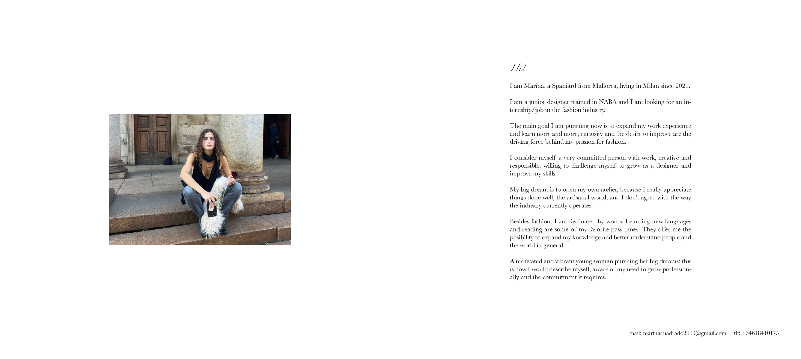 This is my creative portfolio, where I show some of the projects I have made during my university path. There are two womenswear collection, one focused on knitwear and the other in pattern making and precise stitch, a manual knitwear look and some digital prints for interior design.