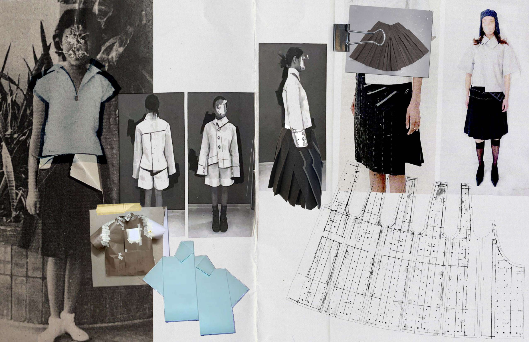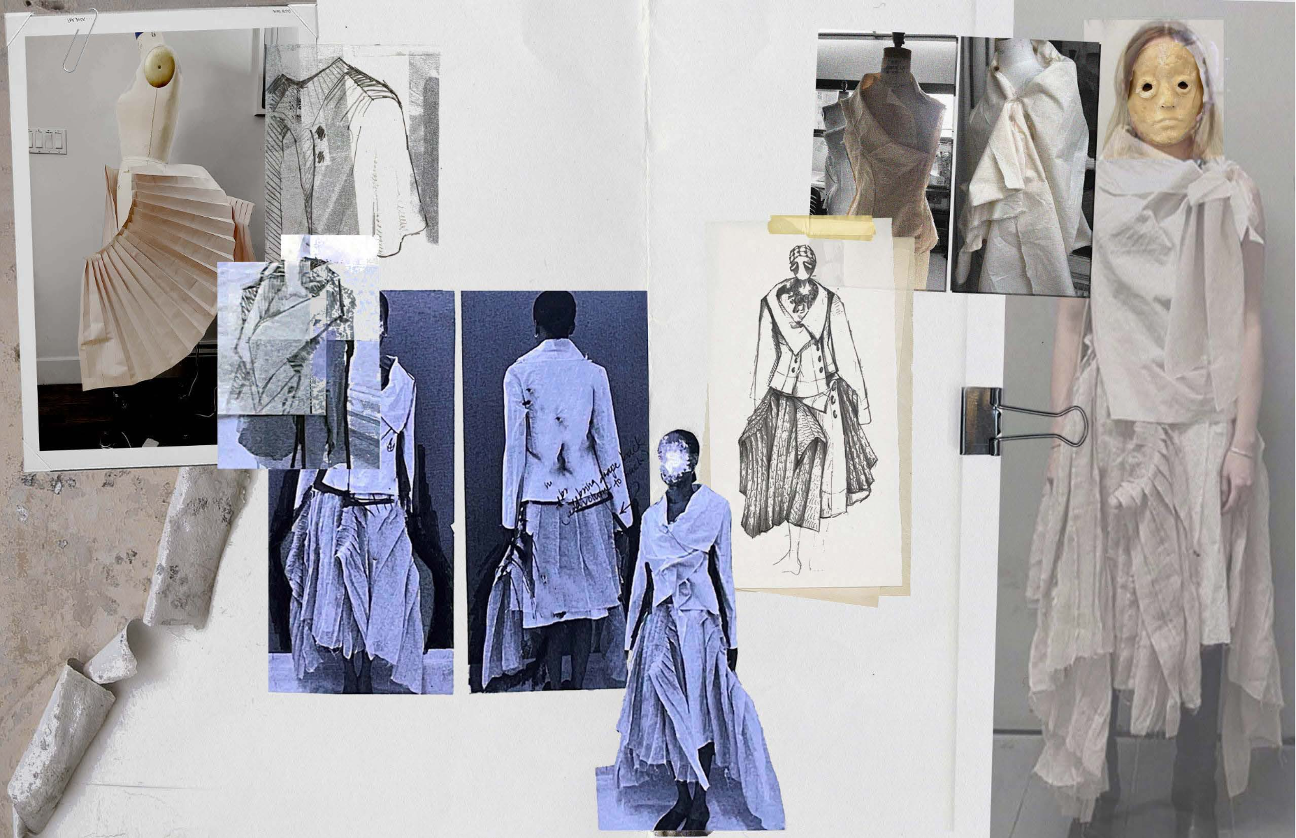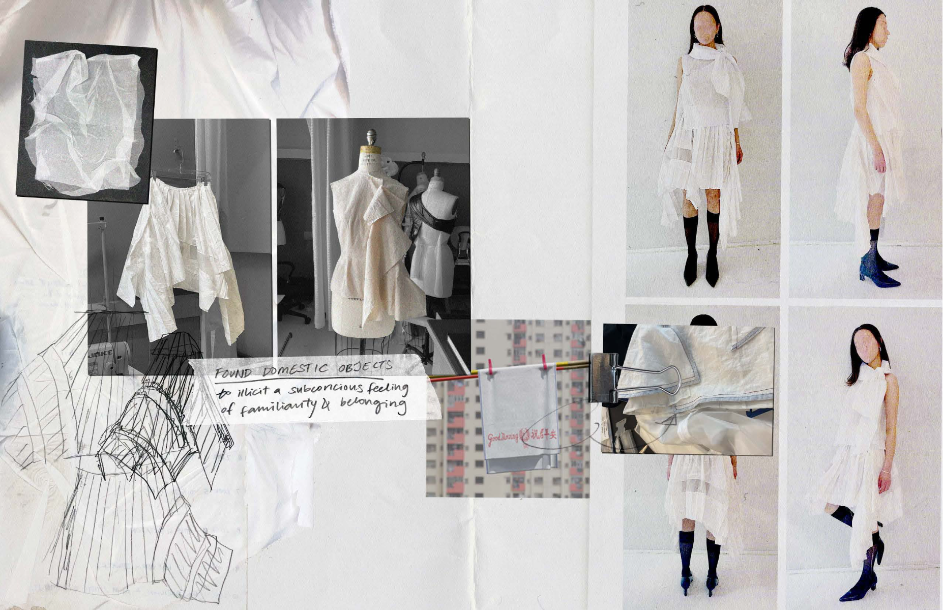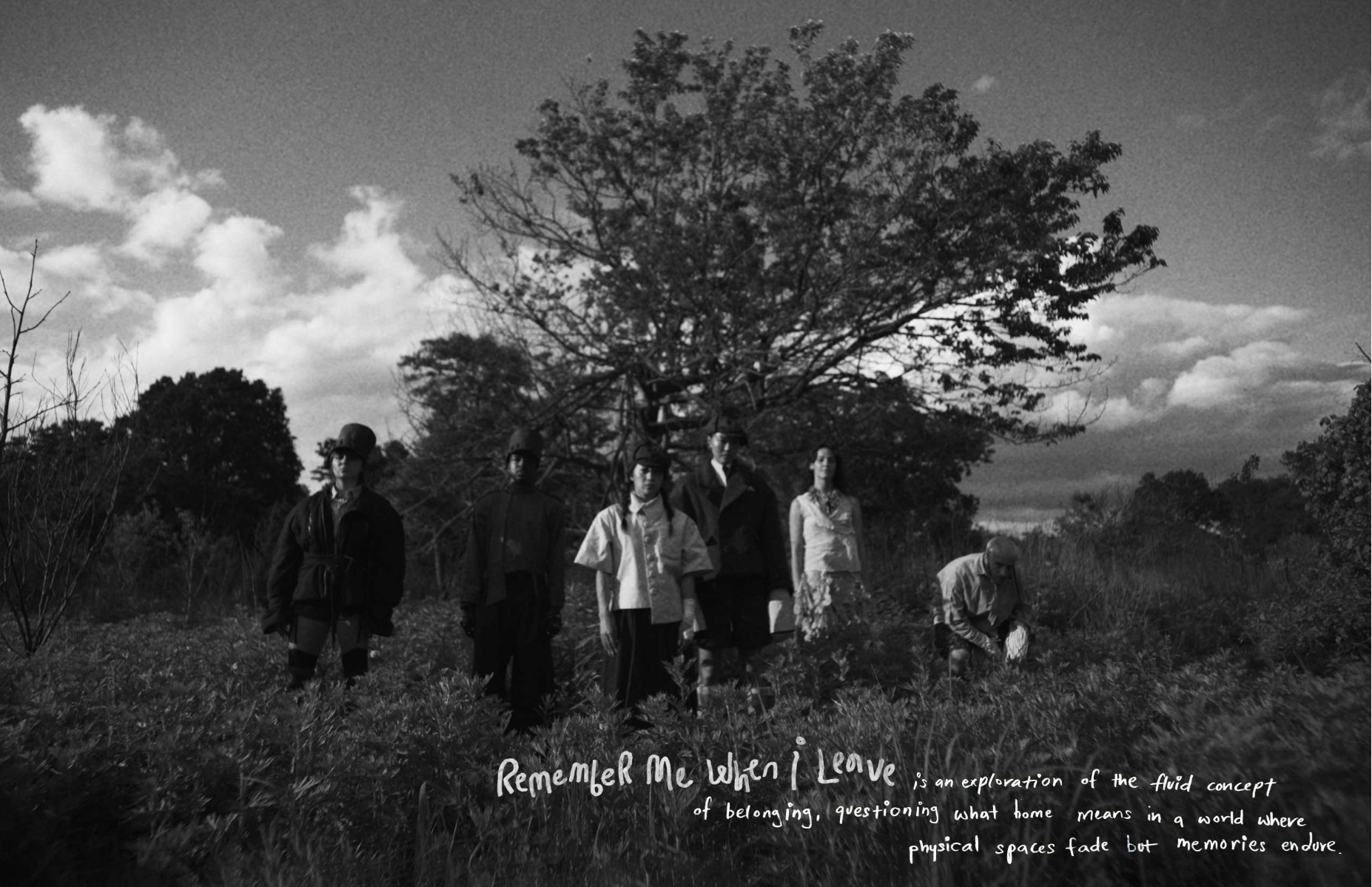 'remember me when i leave' is an exploration of the fluid concept of belonging, questioning what ‘home’ means in a world where physical spaces fade, but memories endure. Drawing from the sentimentality of lost and forgotten possessions, it reflects on emotional attachment, revealing what we cherish and what we let slip away. Inspired by the complexities of a fragmented identity existing across separate places, the collection examines how we reconcile our past with our present within a liminal realm. Using a dollhouse as a metaphor for an identity rooted in the definite suburban structures of the past, now distorting and transitioning into the ambiguity of the present, the collection explores the tension between conformity and individuality. Familiar garments evoke estrangement through distorted silhouettes, while fabrications inspired by domestic settings reintroduce comfort and nostalgia, illustrating the journey of self-discovery within shifting, impermanent spaces of memory.