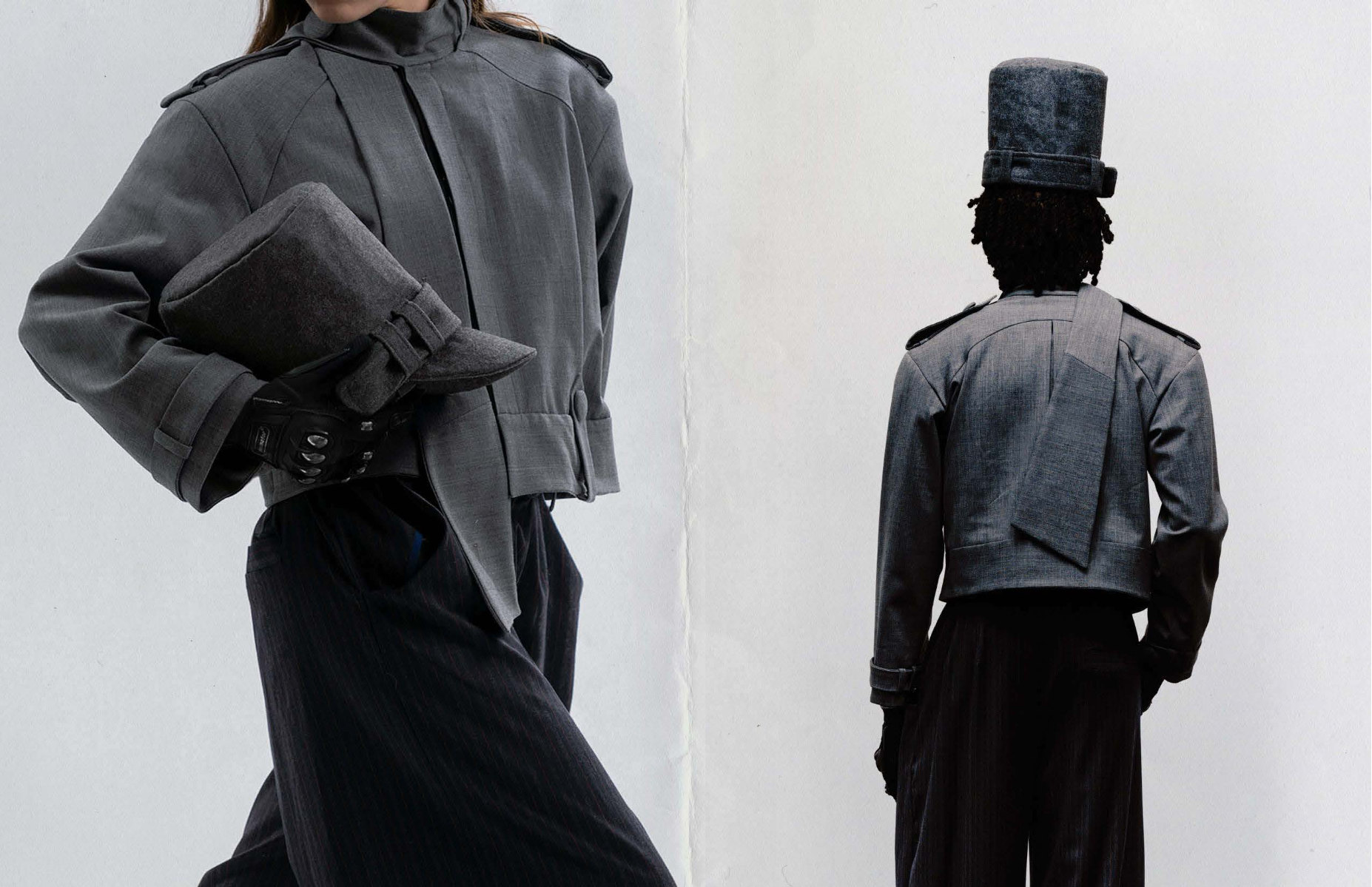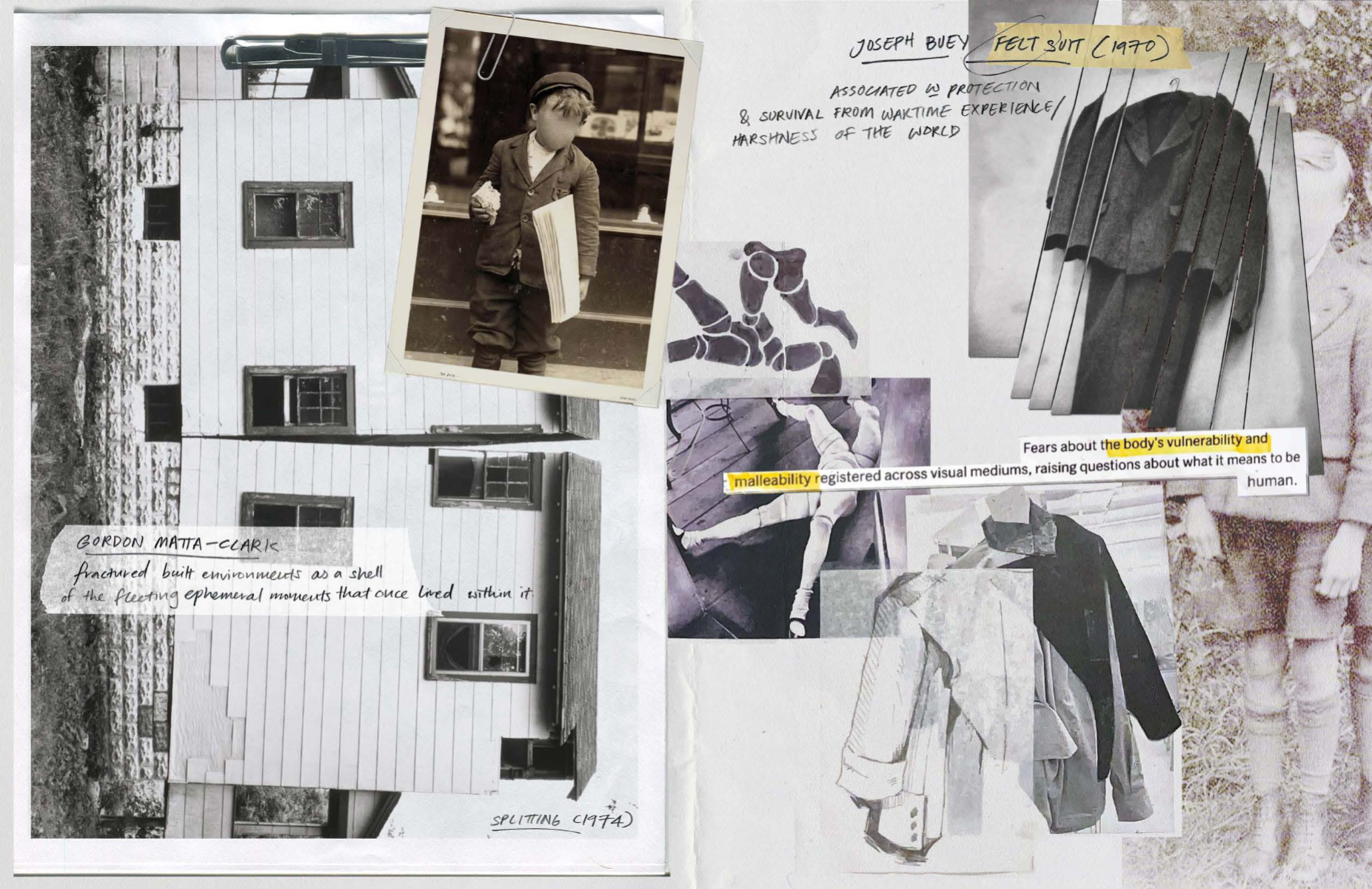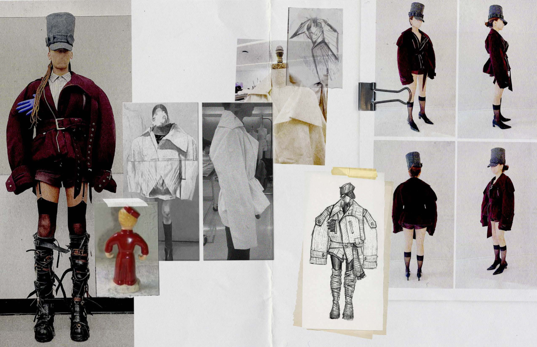 'remember me when i leave' is an exploration of the fluid concept of belonging, questioning what ‘home’ means in a world where physical spaces fade, but memories endure. Drawing from the sentimentality of lost and forgotten possessions, it reflects on emotional attachment, revealing what we cherish and what we let slip away. Inspired by the complexities of a fragmented identity existing across separate places, the collection examines how we reconcile our past with our present within a liminal realm. Using a dollhouse as a metaphor for an identity rooted in the definite suburban structures of the past, now distorting and transitioning into the ambiguity of the present, the collection explores the tension between conformity and individuality. Familiar garments evoke estrangement through distorted silhouettes, while fabrications inspired by domestic settings reintroduce comfort and nostalgia, illustrating the journey of self-discovery within shifting, impermanent spaces of memory.