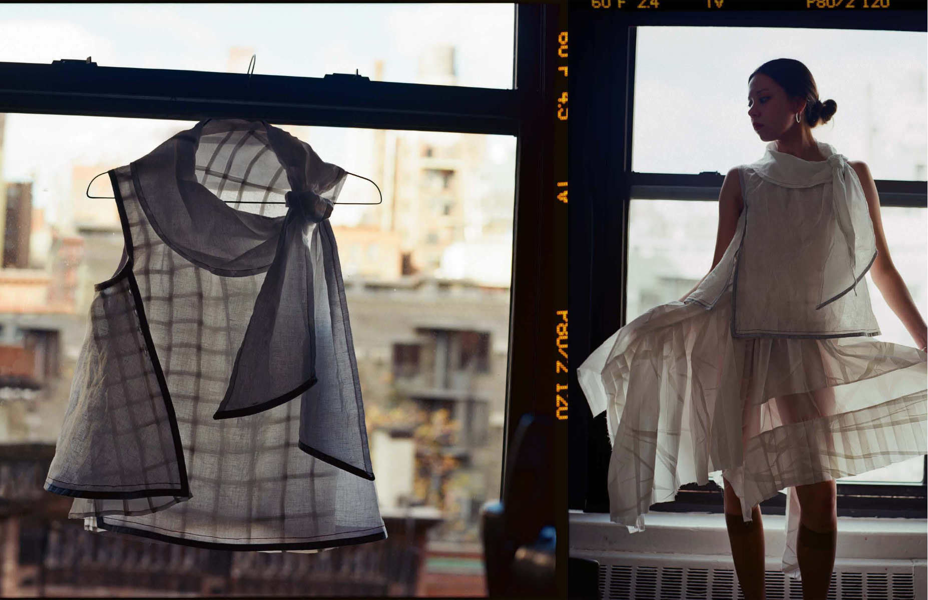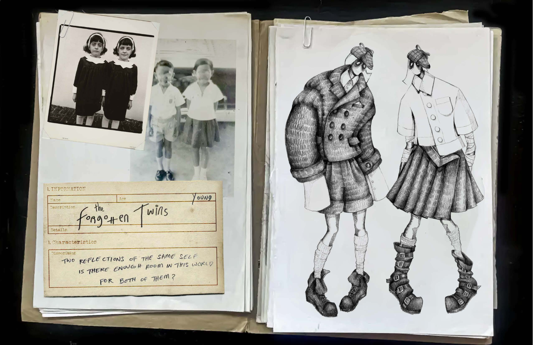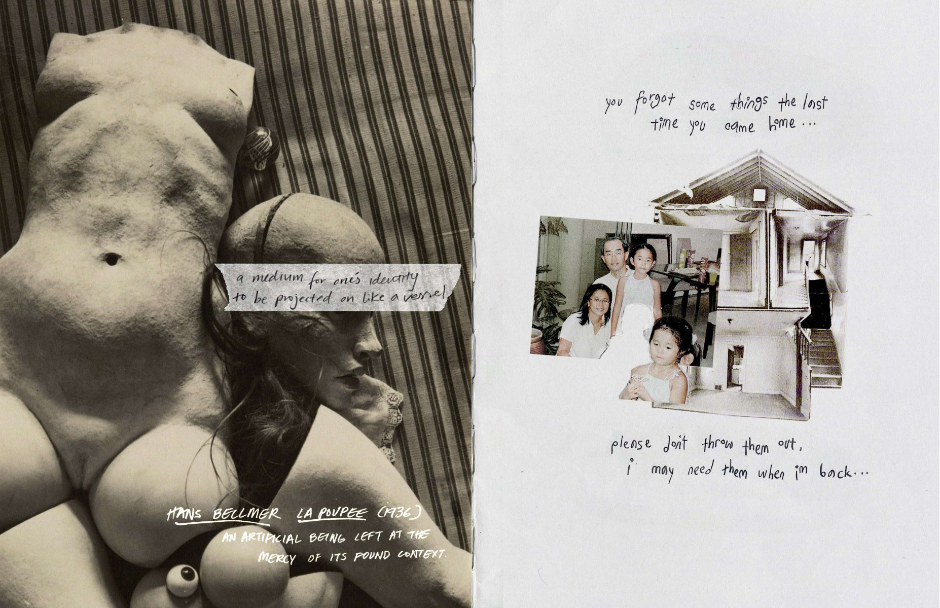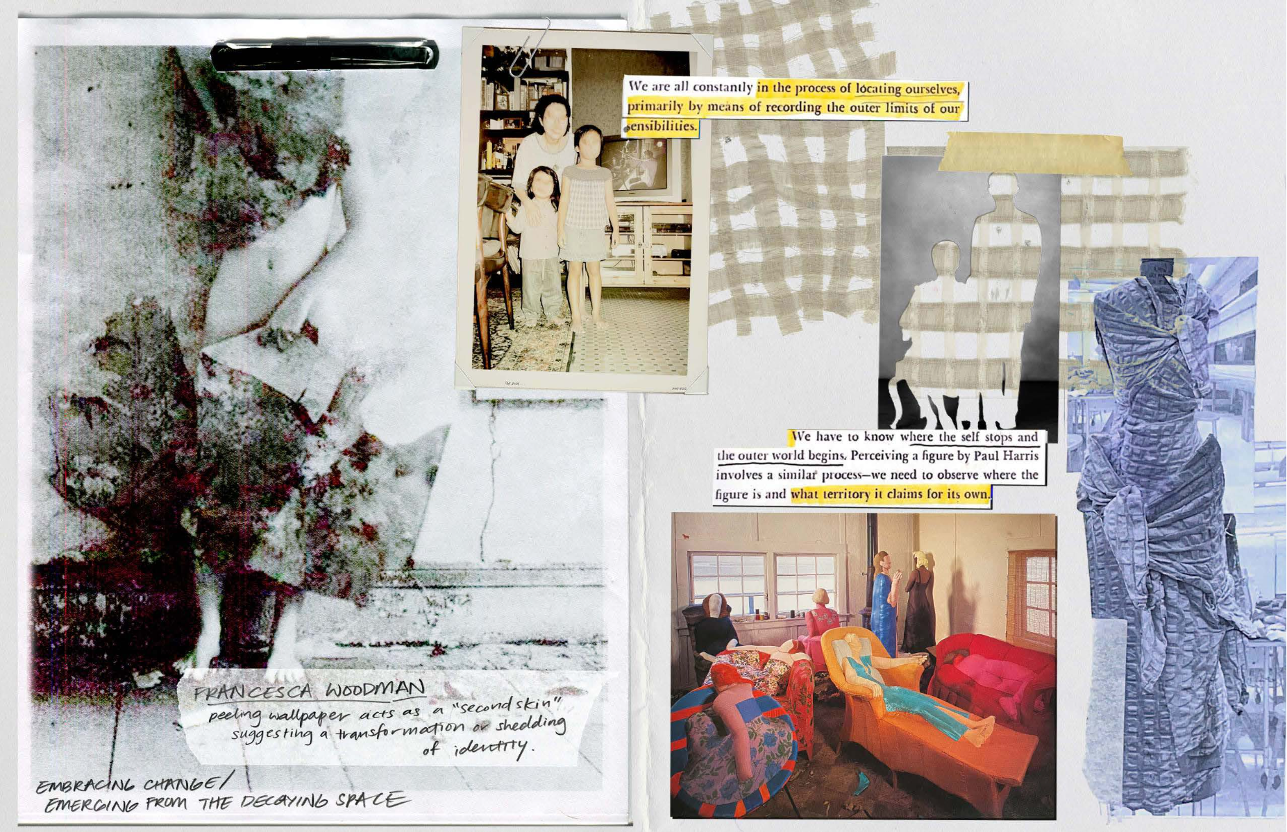 'remember me when i leave' is an exploration of the fluid concept of belonging, questioning what ‘home’ means in a world where physical spaces fade, but memories endure. Drawing from the sentimentality of lost and forgotten possessions, it reflects on emotional attachment, revealing what we cherish and what we let slip away. Inspired by the complexities of a fragmented identity existing across separate places, the collection examines how we reconcile our past with our present within a liminal realm. Using a dollhouse as a metaphor for an identity rooted in the definite suburban structures of the past, now distorting and transitioning into the ambiguity of the present, the collection explores the tension between conformity and individuality. Familiar garments evoke estrangement through distorted silhouettes, while fabrications inspired by domestic settings reintroduce comfort and nostalgia, illustrating the journey of self-discovery within shifting, impermanent spaces of memory.