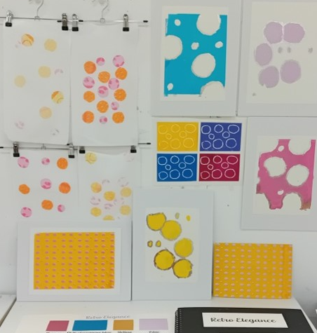This was a print project that I did at the beginning of my university degree. This was a print project based on geometric patterns. I did screenprinting, lino printing, monoprinting, foil flocking, and sublimation printing