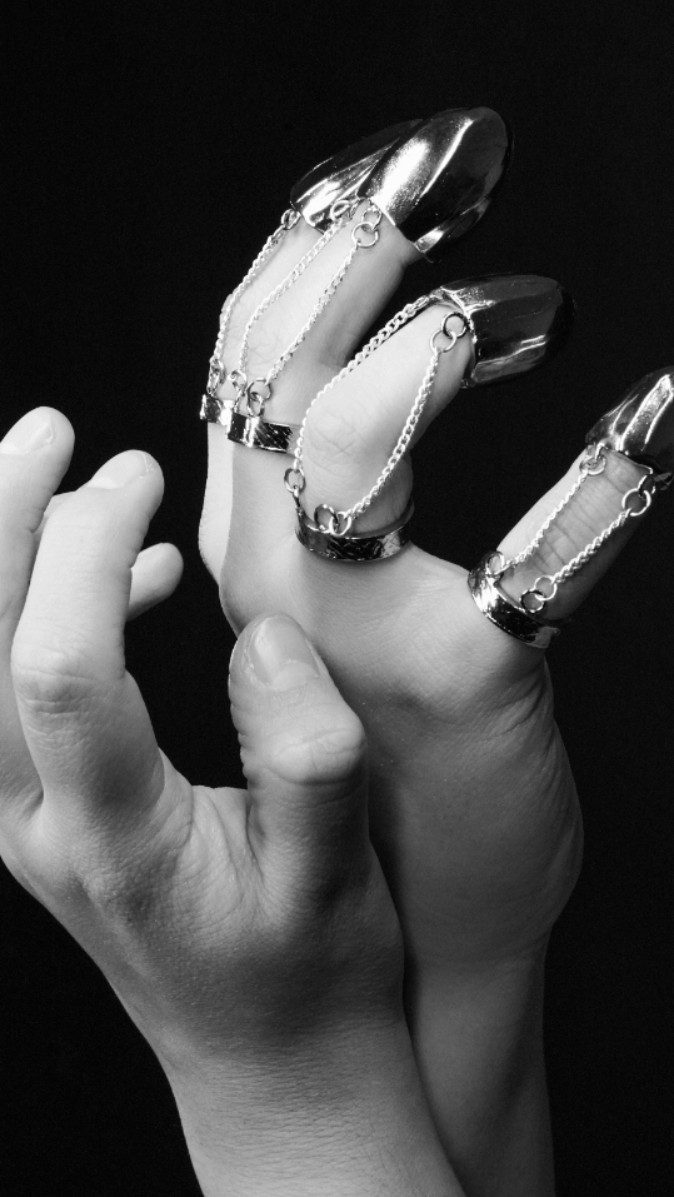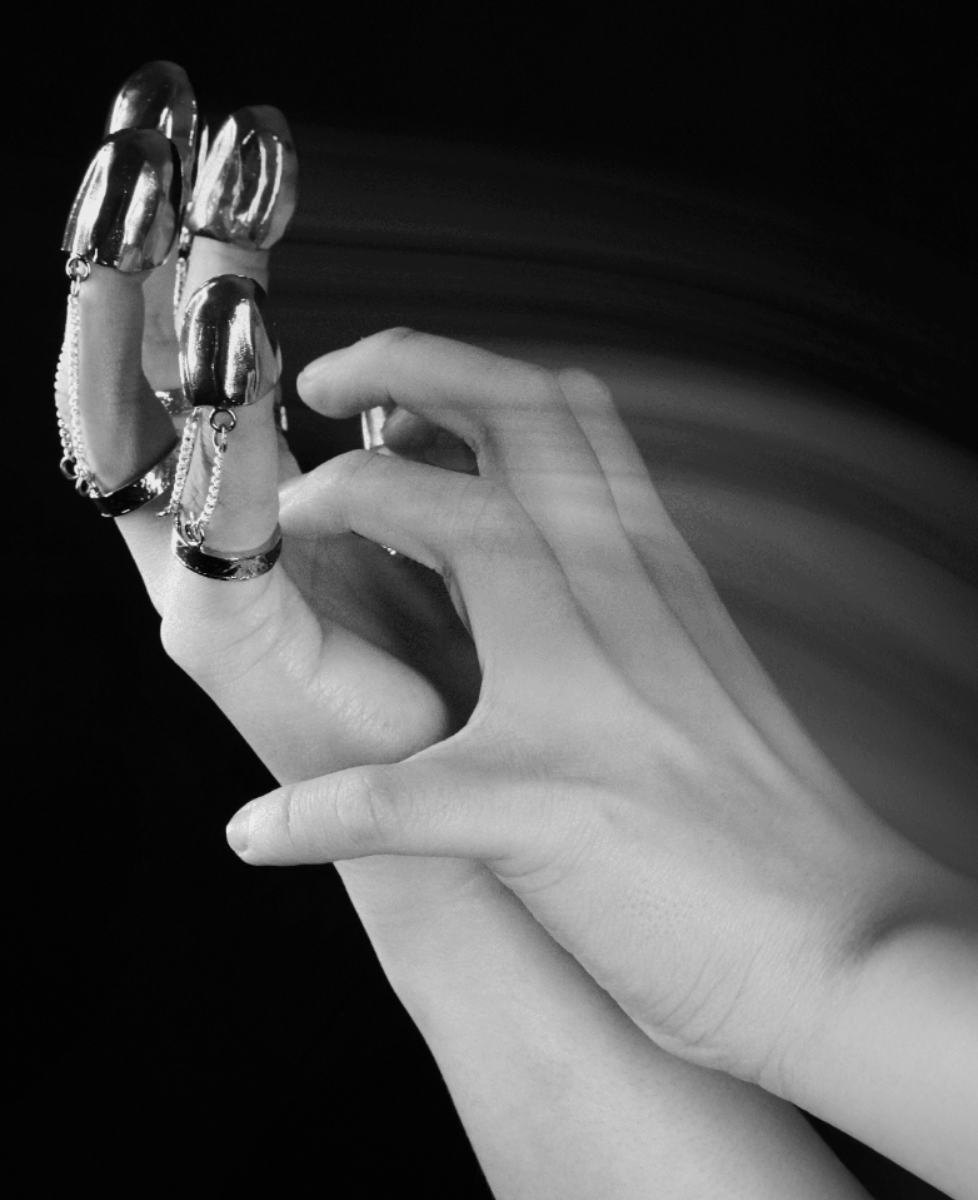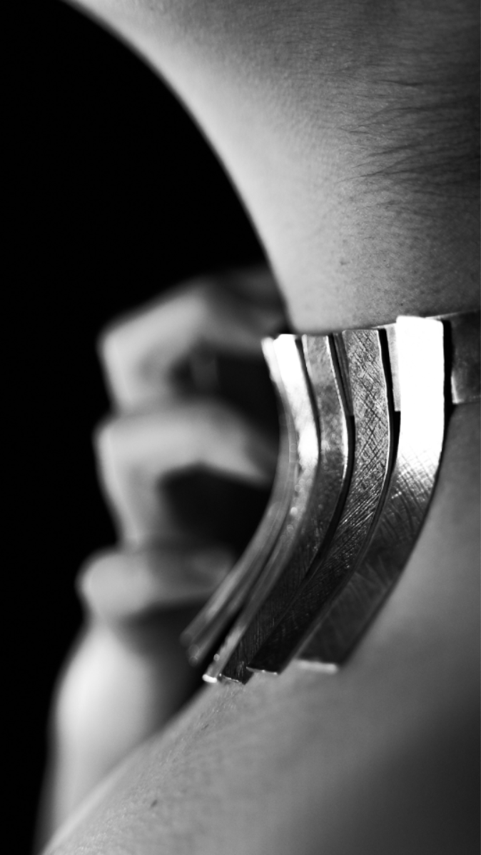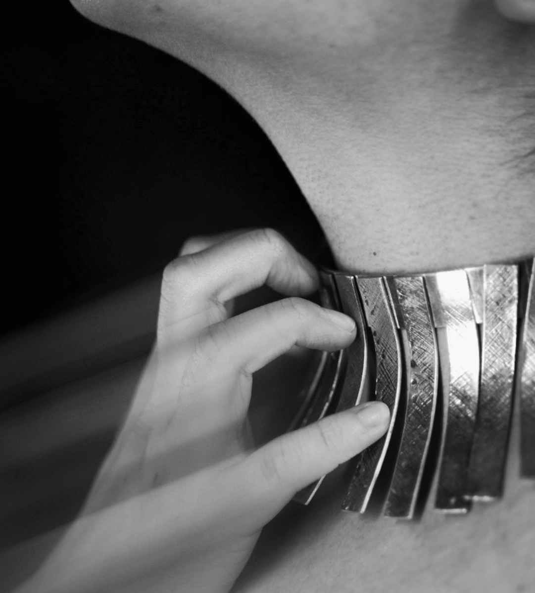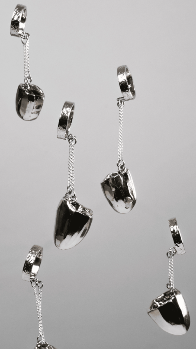 "Return to Myself" is a collection that embodies the idea of reconnecting with the body as a path to return to the present moment. At times, my mind becomes consumed by anxiety and persistent thoughts, pulling me away from the here and now. This disconnection reveals itself through physical sensations and even marks left on the skin. Each piece in this collection acts as a guardian, a reminder to return to myself, to anchor my awareness in the body and the present. The textures of the jewelry reflect the surface of the skin, reinforcing the intimate connection between body, memory, and presence.