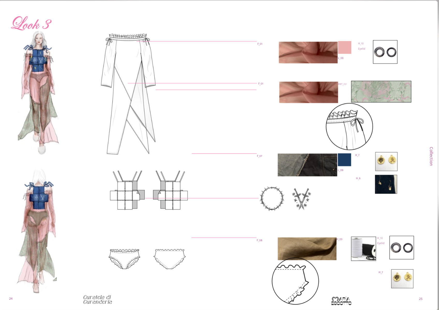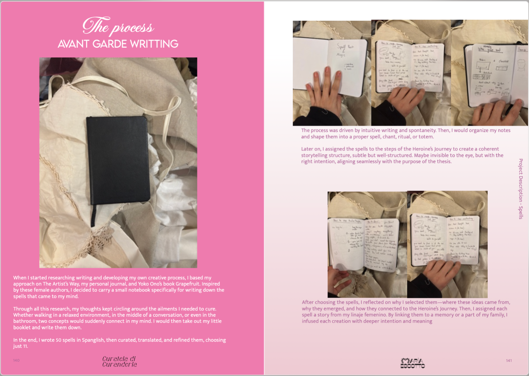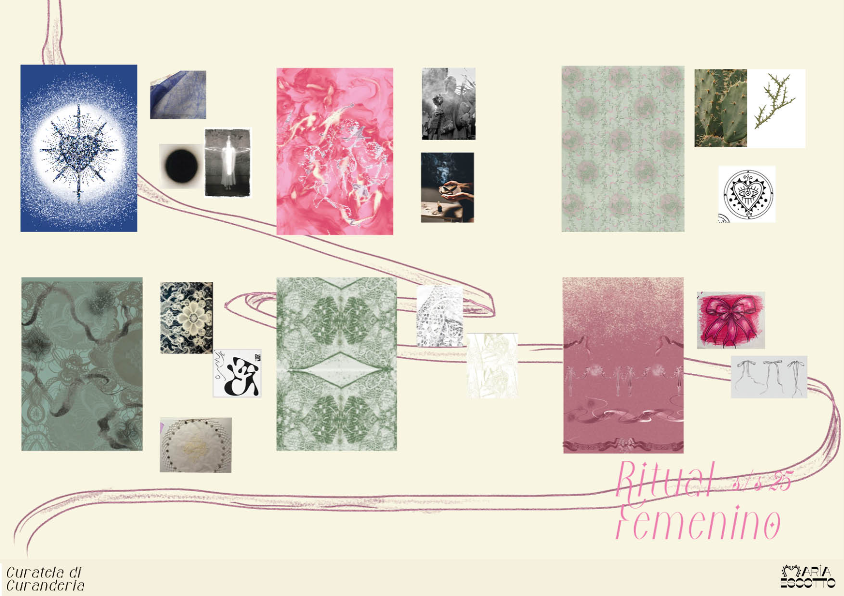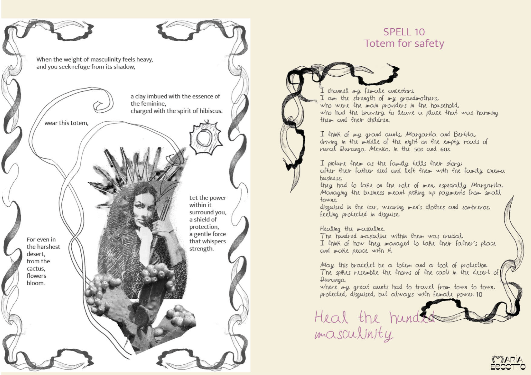 Ritual Femenino is a womenswear collection exploring the intersection between the ritual of being a woman and spiritual protection rooted in my Mexican culture. Women, considered the weak sex in society, hold the spiritual power to bless or curse, embodying hidden strength. Inspired by this duality and the ongoing lack of safety, I created protections through a graphic language of textile manipulation, embroidery, prints and charms. Textiles, both sheer and rigid, express vulnerability and concealment. The ritual culminates in a fashion film where house and light are protagonists, extending into a spellbook of ten protective spells with textile pages and artifacts.
