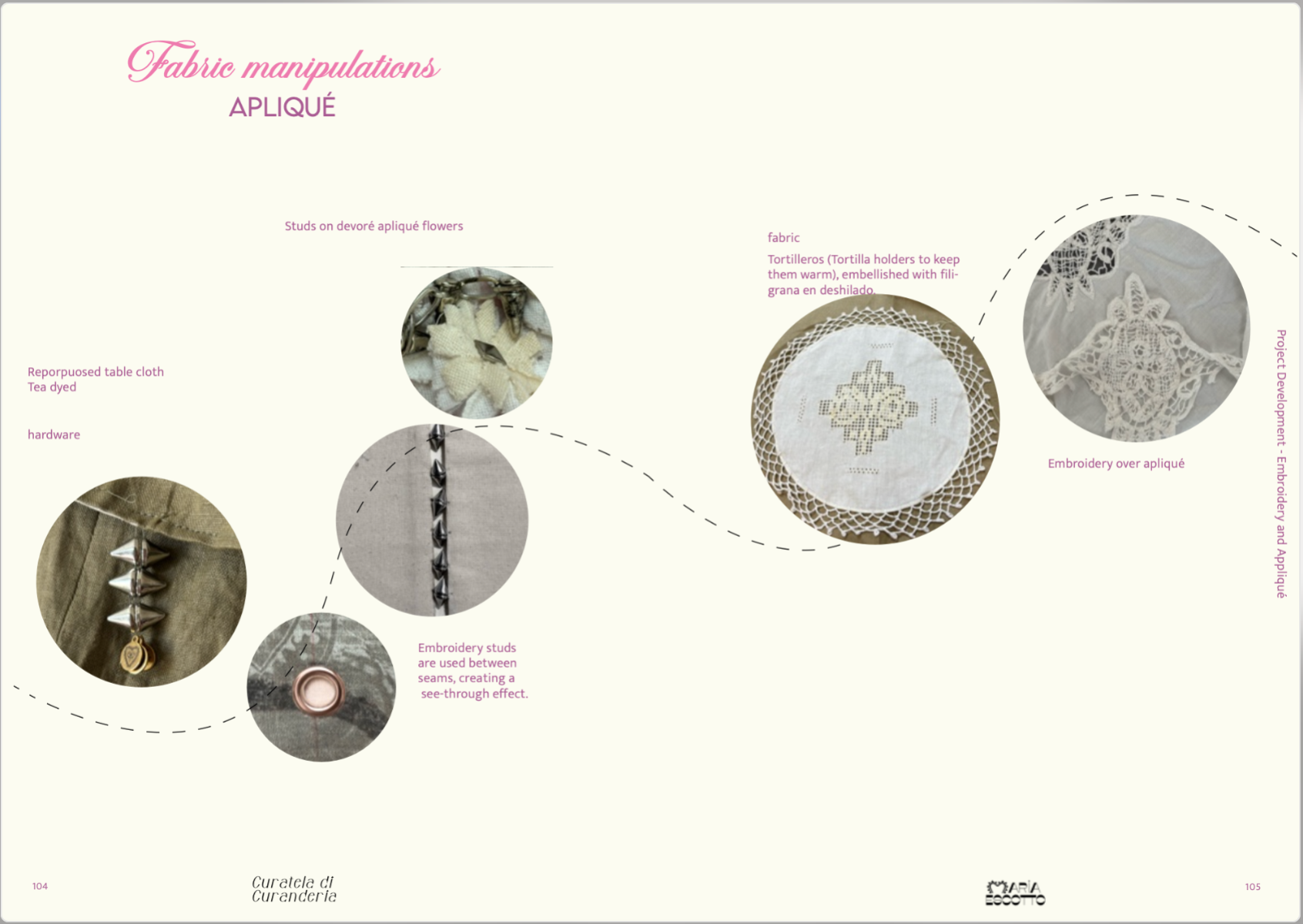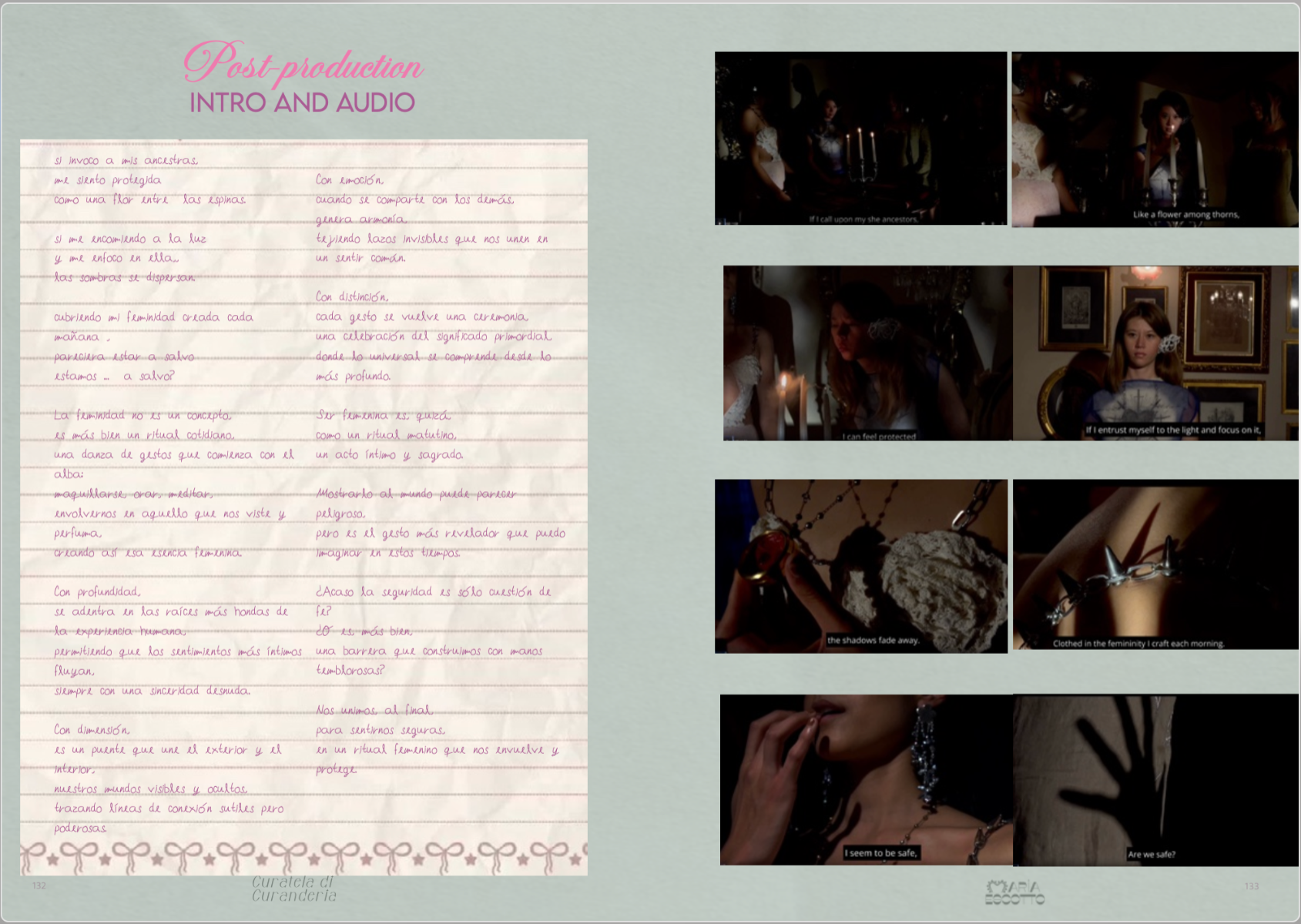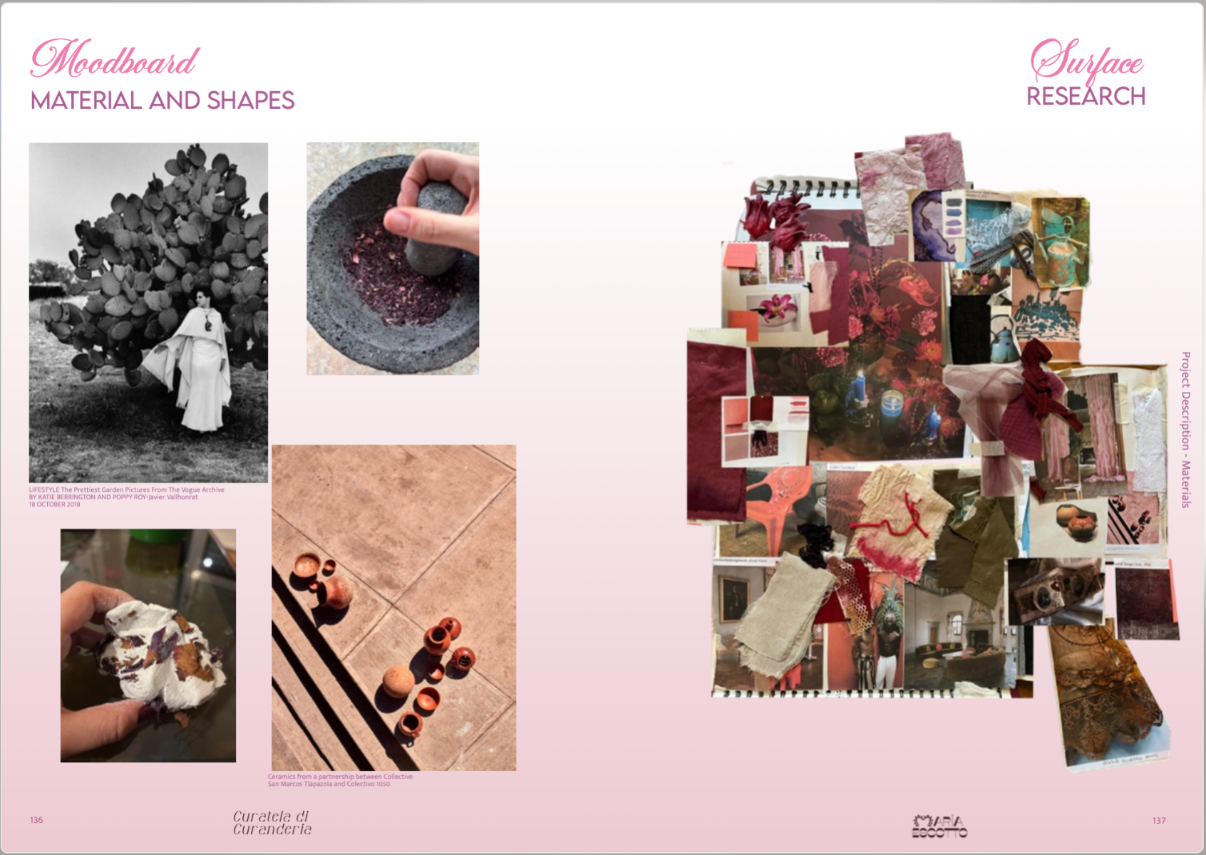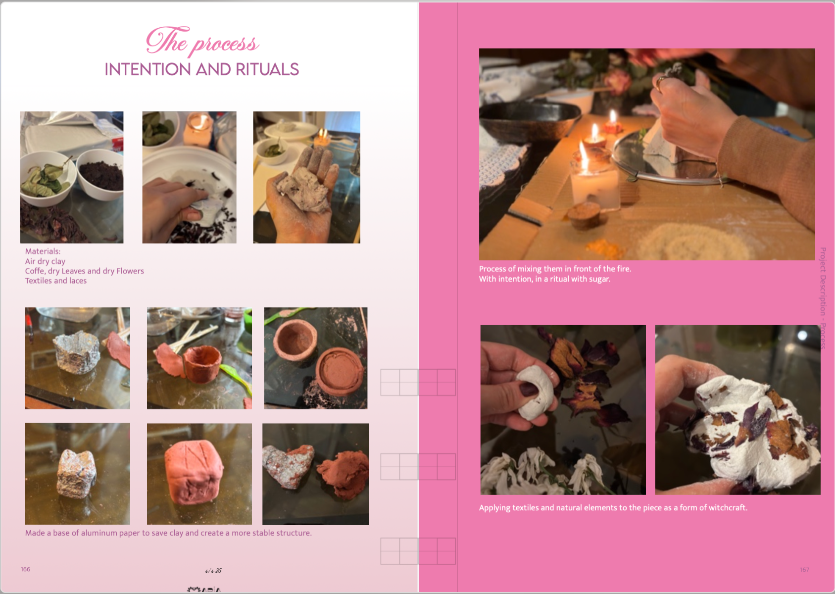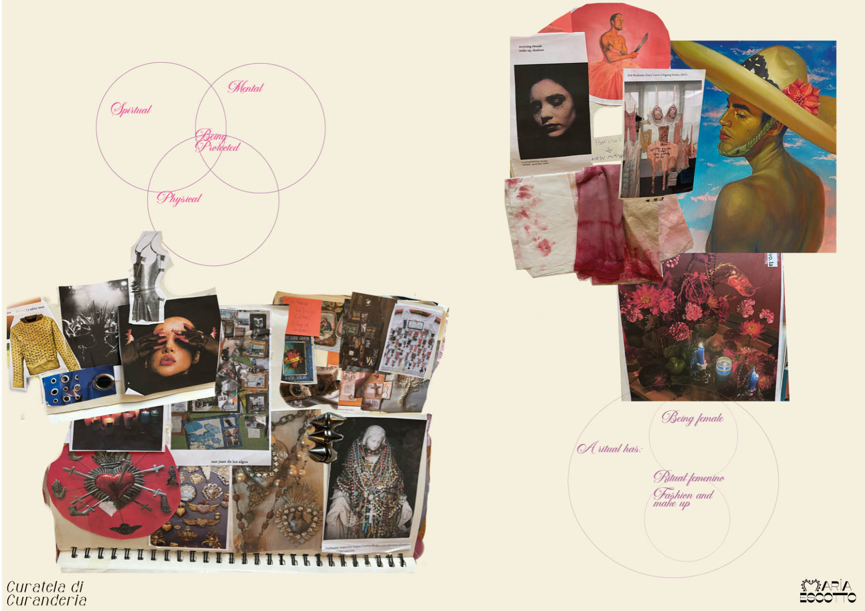 Ritual Femenino is a womenswear collection exploring the intersection between the ritual of being a woman and spiritual protection rooted in my Mexican culture. Women, considered the weak sex in society, hold the spiritual power to bless or curse, embodying hidden strength. Inspired by this duality and the ongoing lack of safety, I created protections through a graphic language of textile manipulation, embroidery, prints and charms. Textiles, both sheer and rigid, express vulnerability and concealment. The ritual culminates in a fashion film where house and light are protagonists, extending into a spellbook of ten protective spells with textile pages and artifacts.