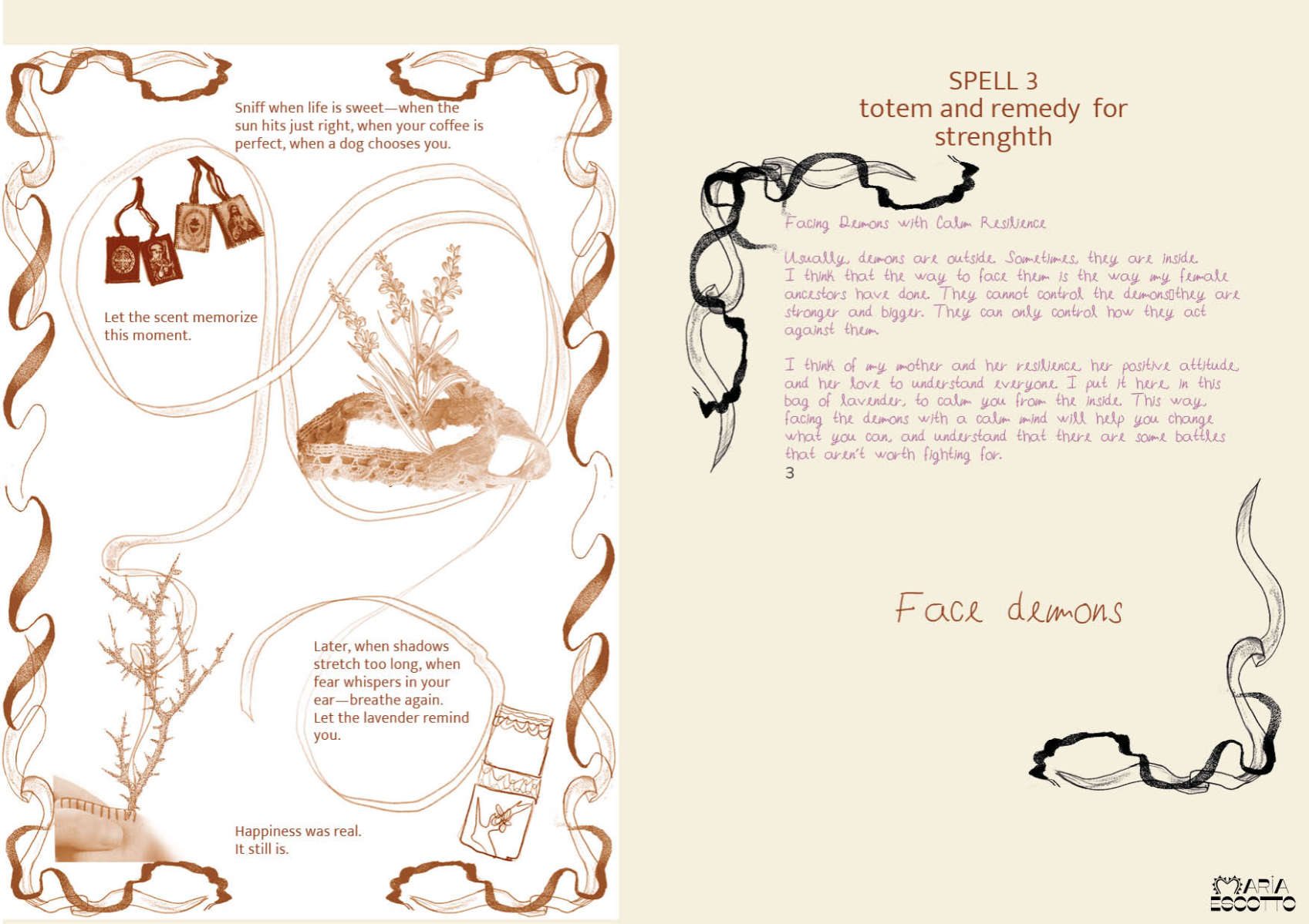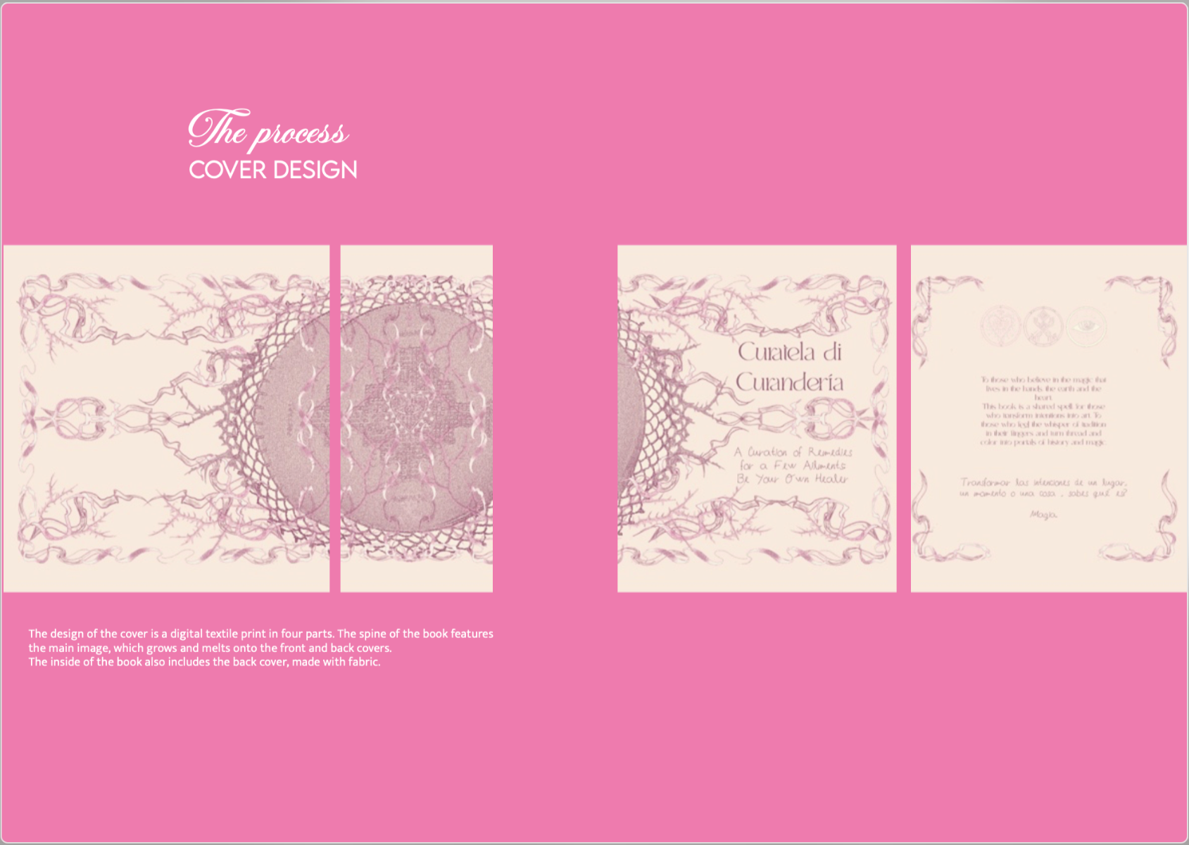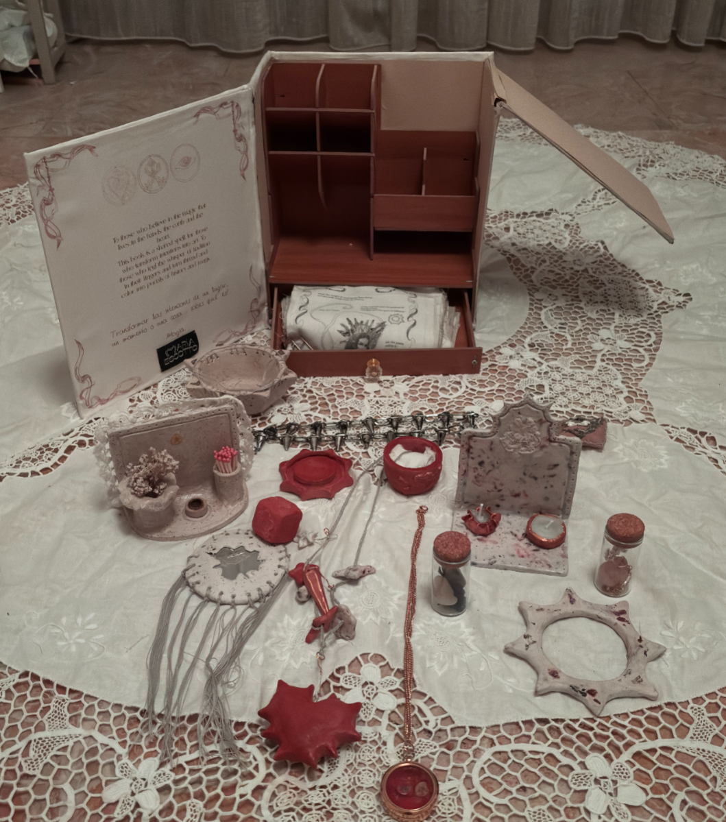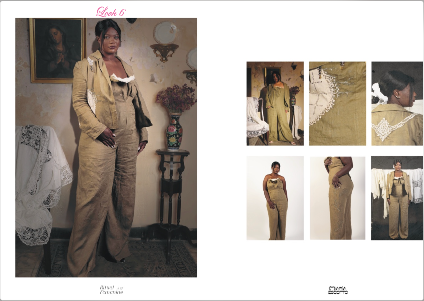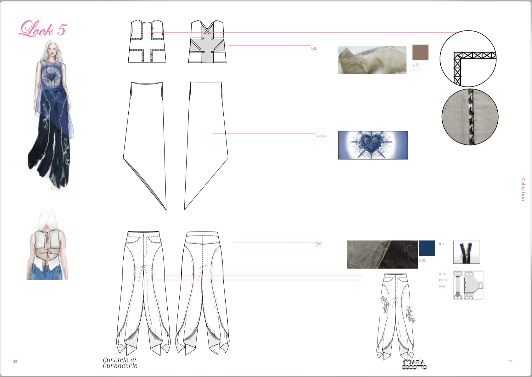 Ritual Femenino is a womenswear collection exploring the intersection between the ritual of being a woman and spiritual protection rooted in my Mexican culture. Women, considered the weak sex in society, hold the spiritual power to bless or curse, embodying hidden strength. Inspired by this duality and the ongoing lack of safety, I created protections through a graphic language of textile manipulation, embroidery, prints and charms. Textiles, both sheer and rigid, express vulnerability and concealment. The ritual culminates in a fashion film where house and light are protagonists, extending into a spellbook of ten protective spells with textile pages and artifacts.