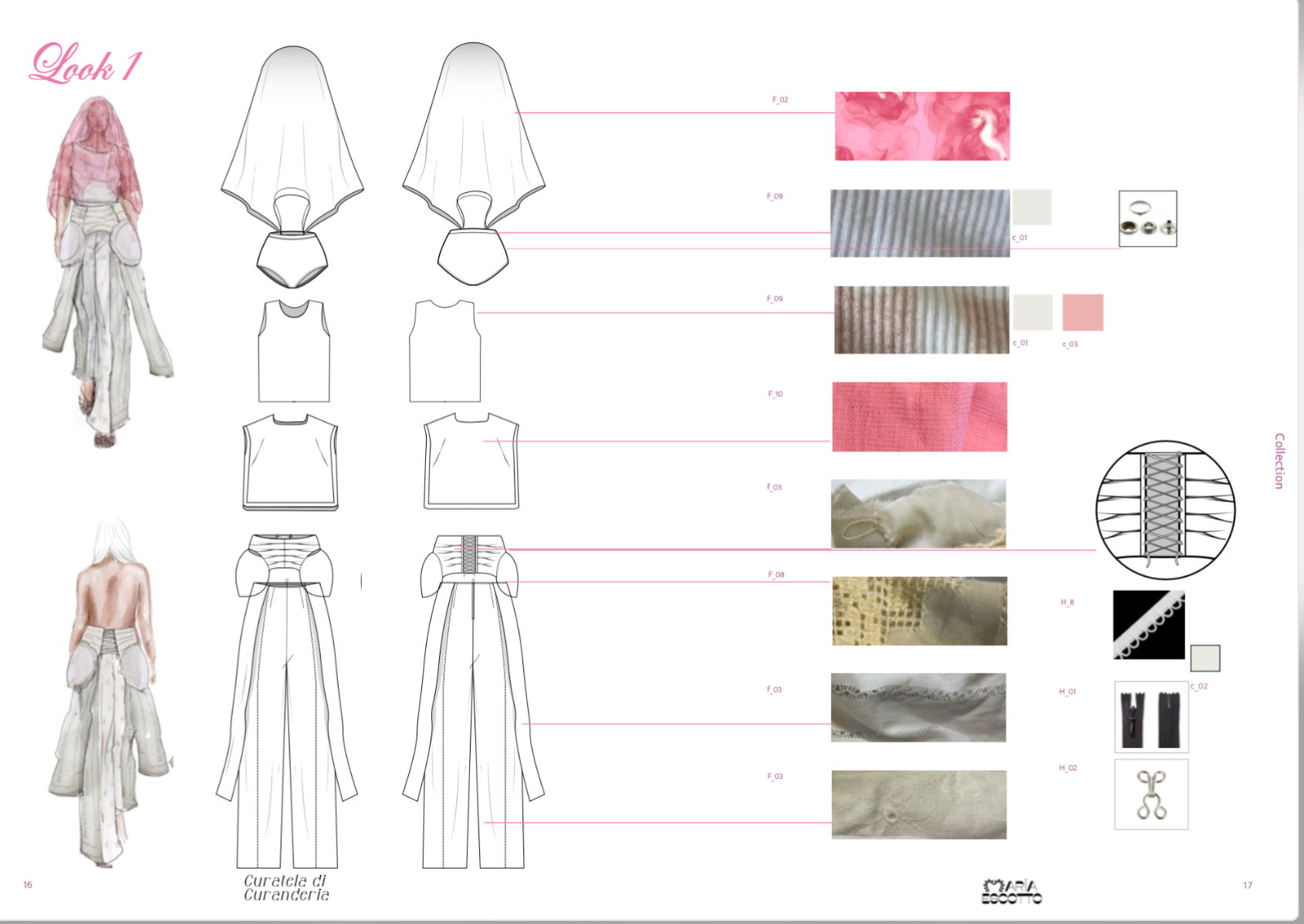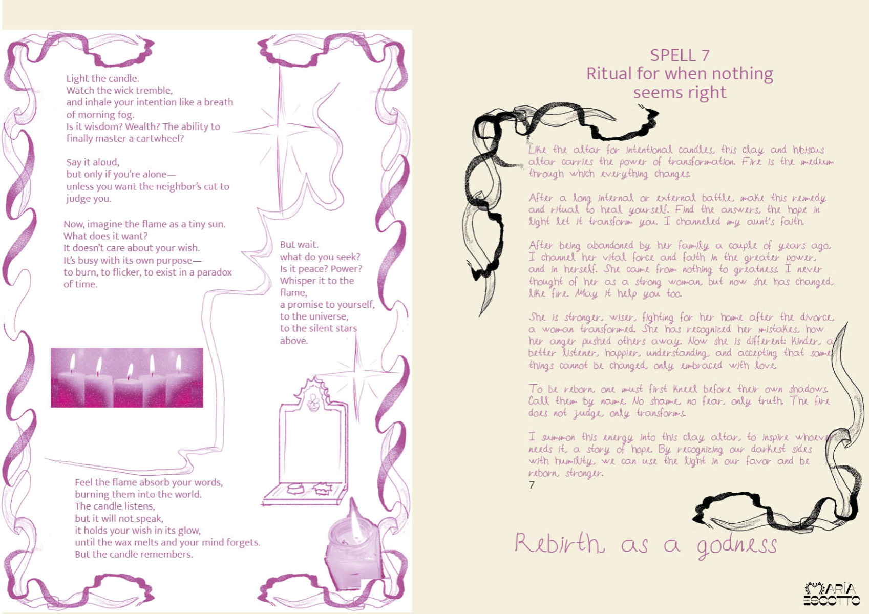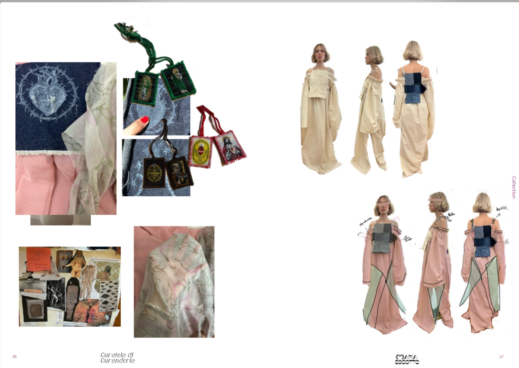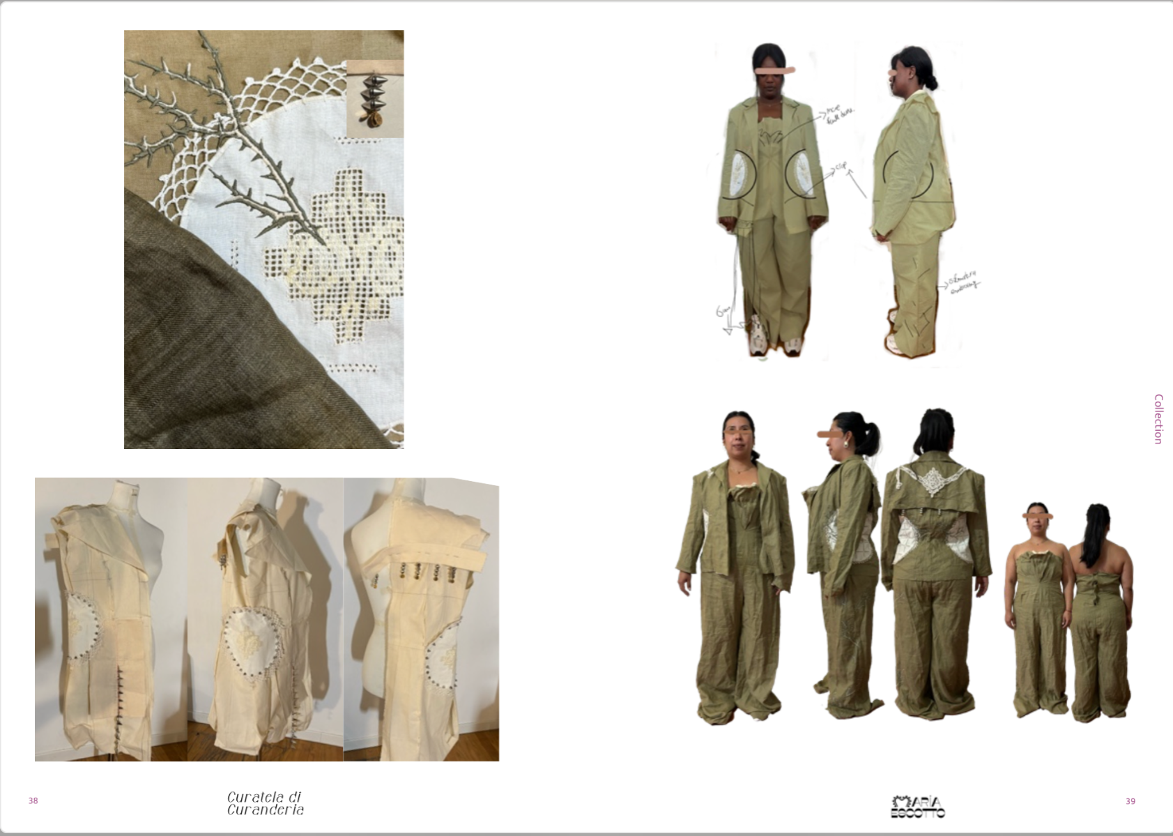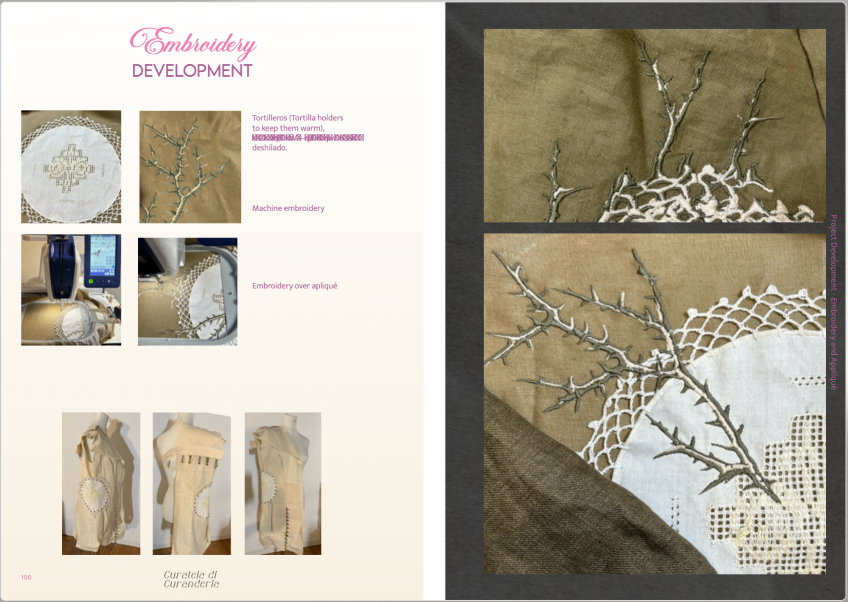 Ritual Femenino is a womenswear collection exploring the intersection between the ritual of being a woman and spiritual protection rooted in my Mexican culture. Women, considered the weak sex in society, hold the spiritual power to bless or curse, embodying hidden strength. Inspired by this duality and the ongoing lack of safety, I created protections through a graphic language of textile manipulation, embroidery, prints and charms. Textiles, both sheer and rigid, express vulnerability and concealment. The ritual culminates in a fashion film where house and light are protagonists, extending into a spellbook of ten protective spells with textile pages and artifacts.
