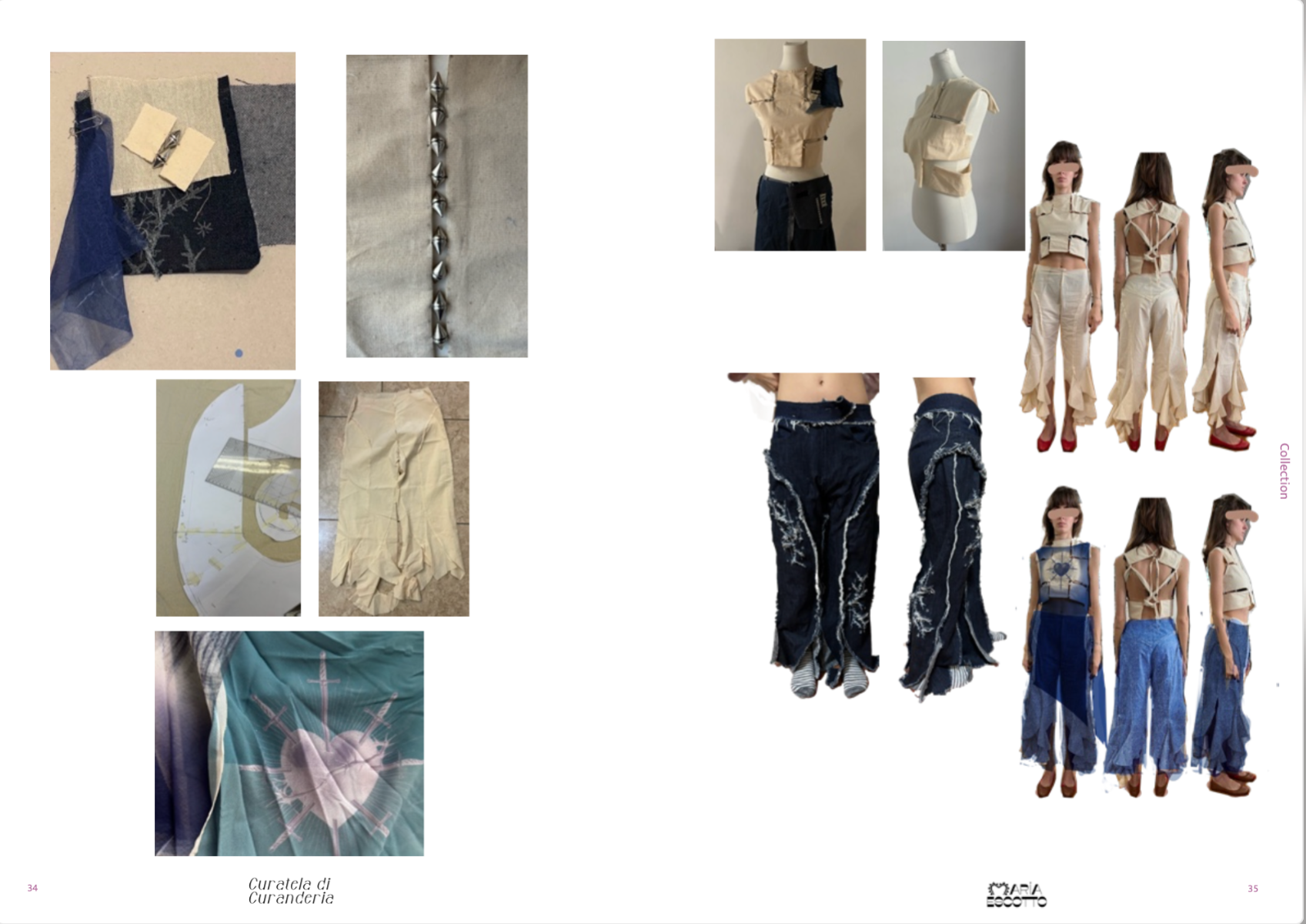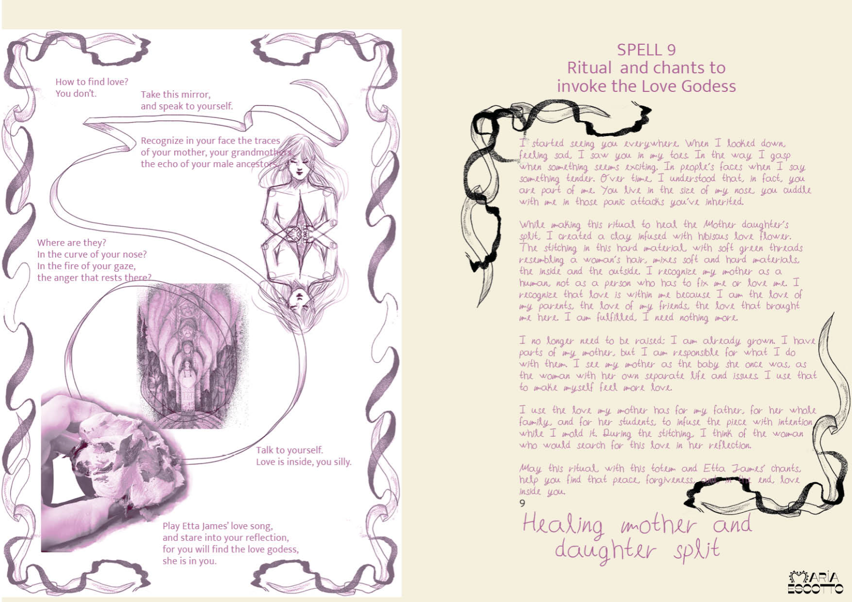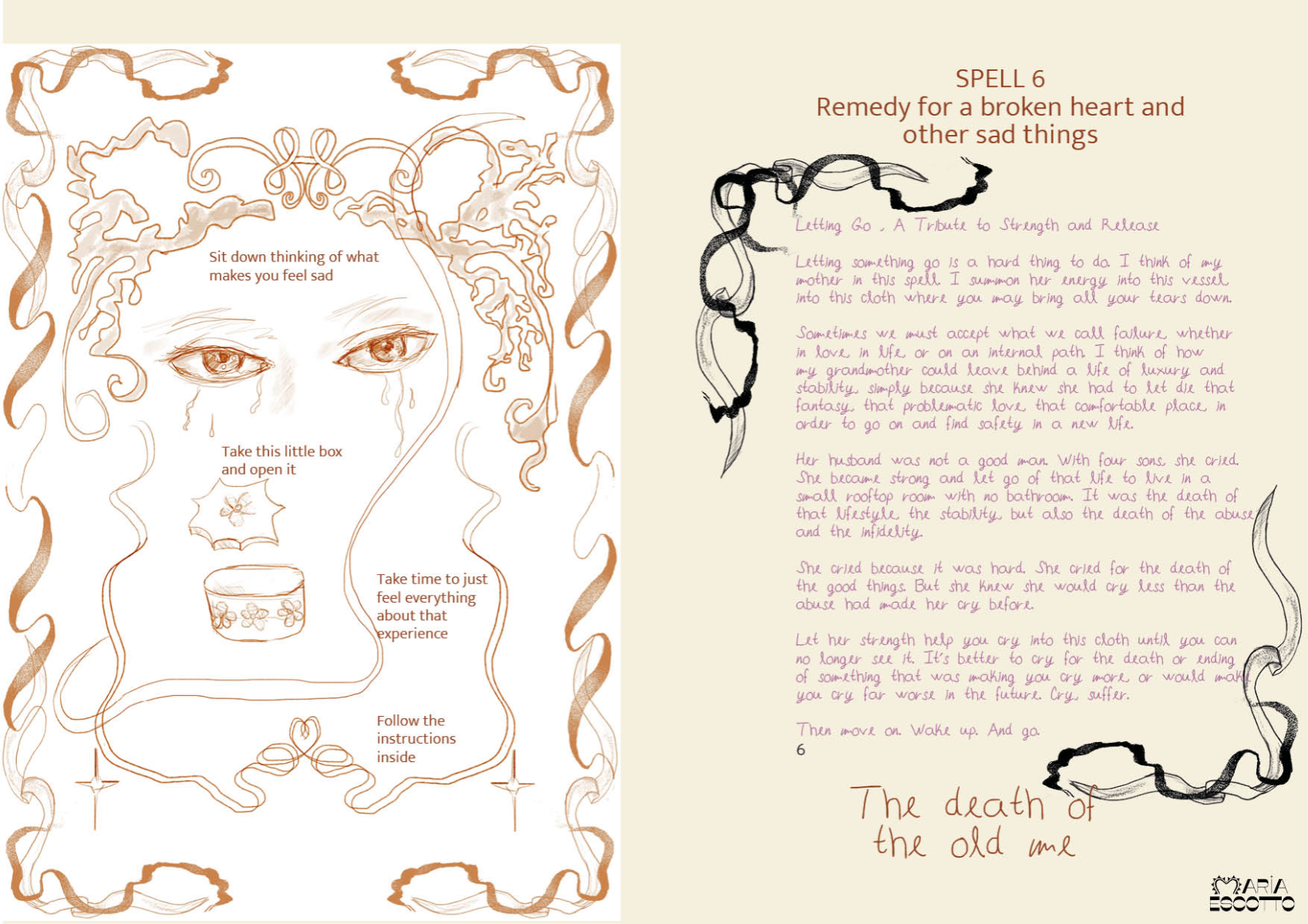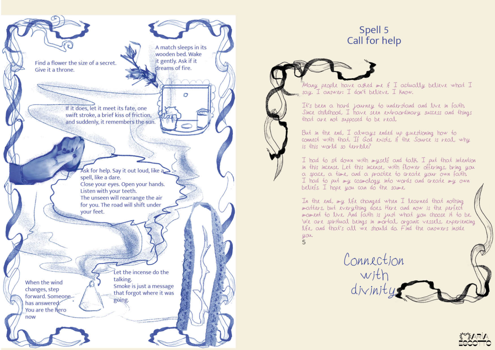 Ritual Femenino is a womenswear collection exploring the intersection between the ritual of being a woman and spiritual protection rooted in my Mexican culture. Women, considered the weak sex in society, hold the spiritual power to bless or curse, embodying hidden strength. Inspired by this duality and the ongoing lack of safety, I created protections through a graphic language of textile manipulation, embroidery, prints and charms. Textiles, both sheer and rigid, express vulnerability and concealment. The ritual culminates in a fashion film where house and light are protagonists, extending into a spellbook of ten protective spells with textile pages and artifacts.