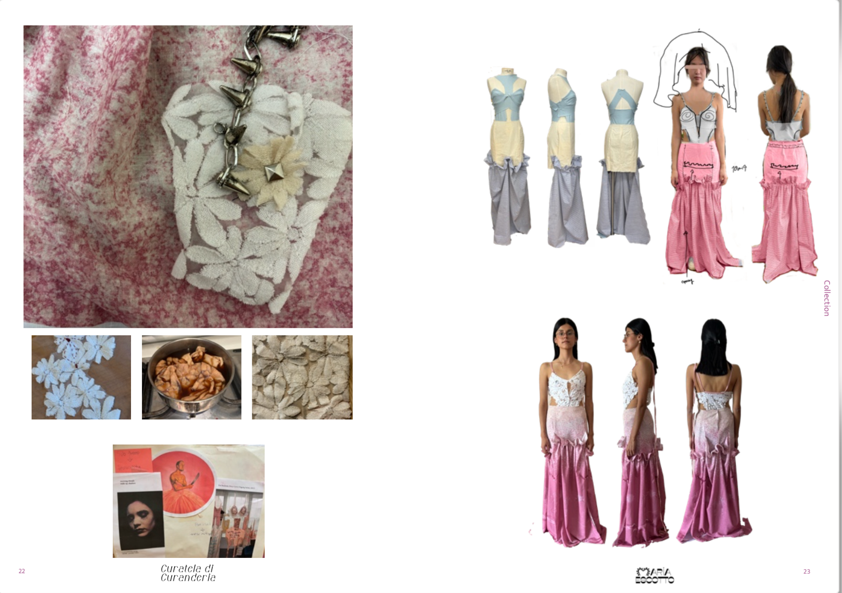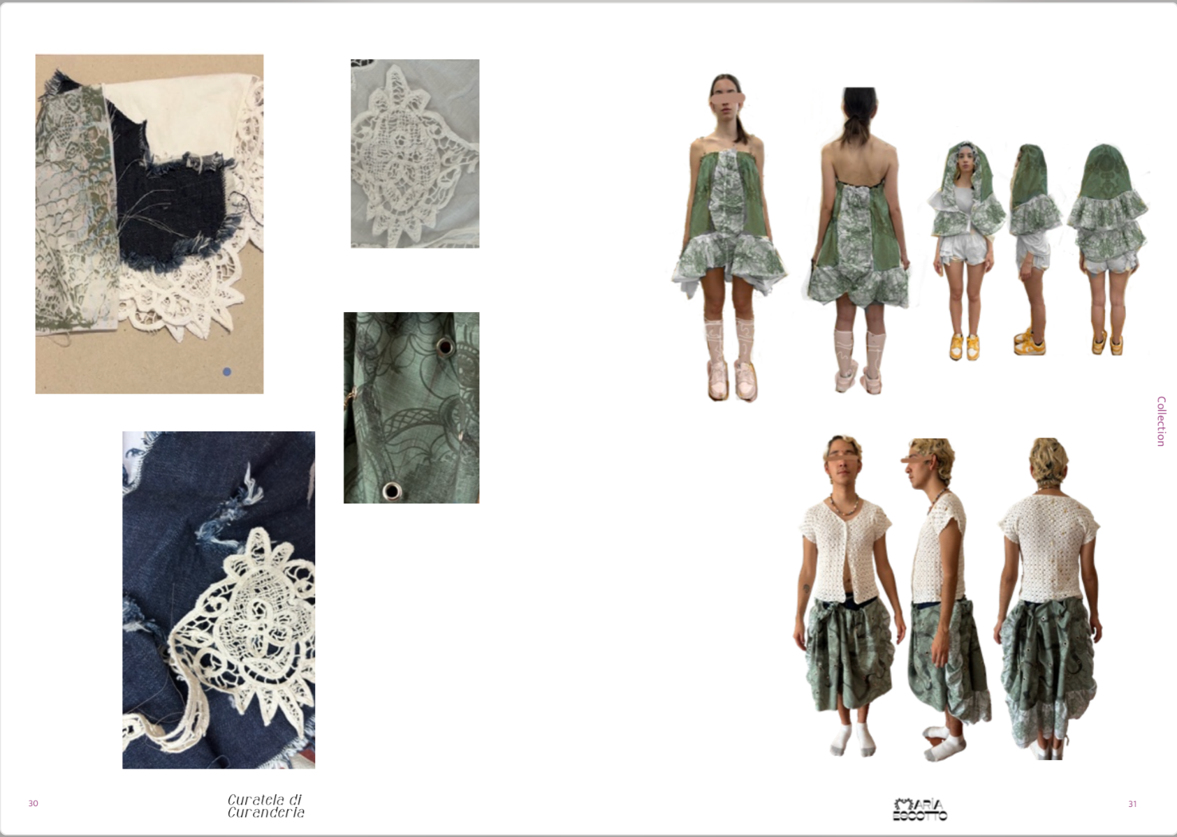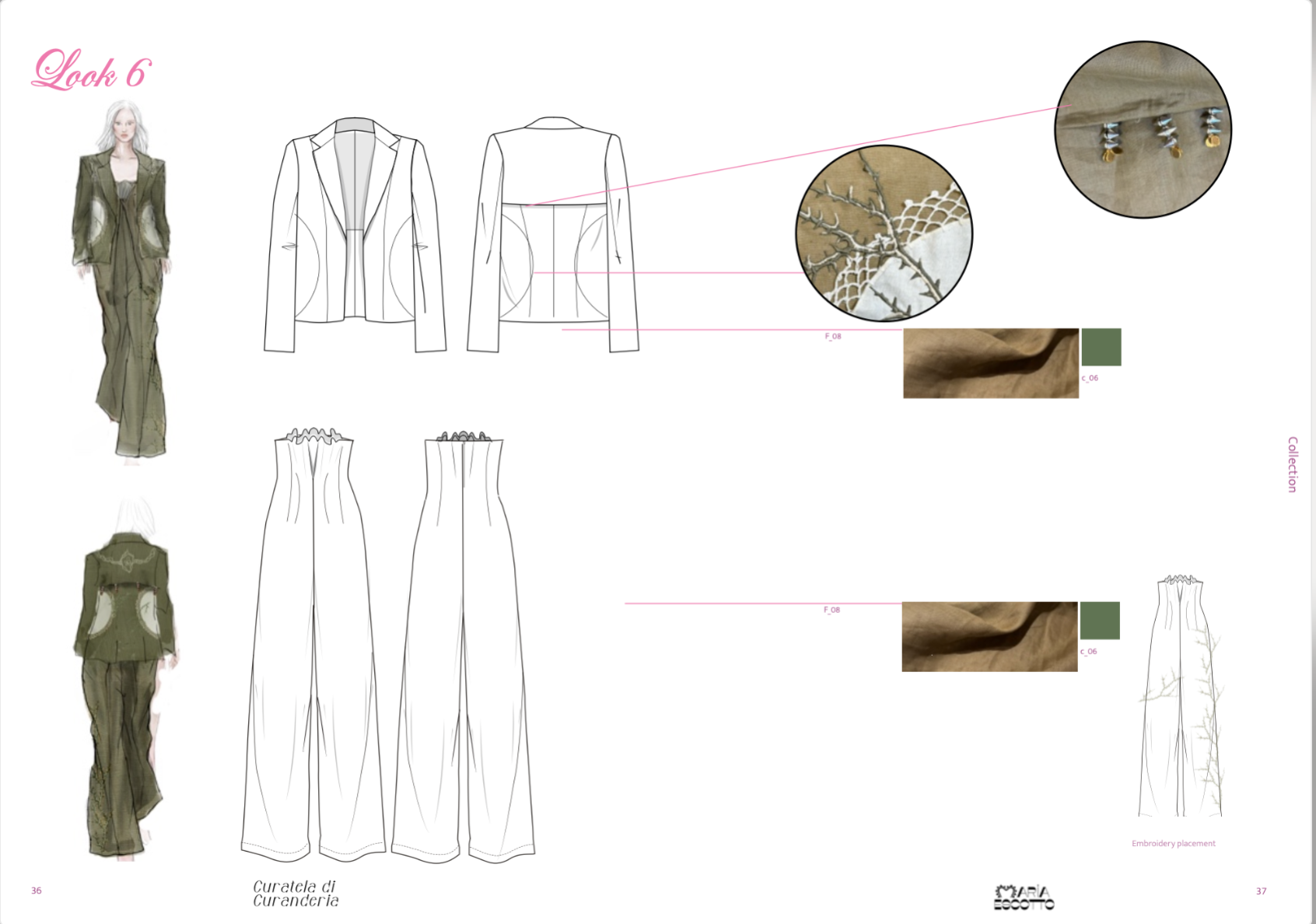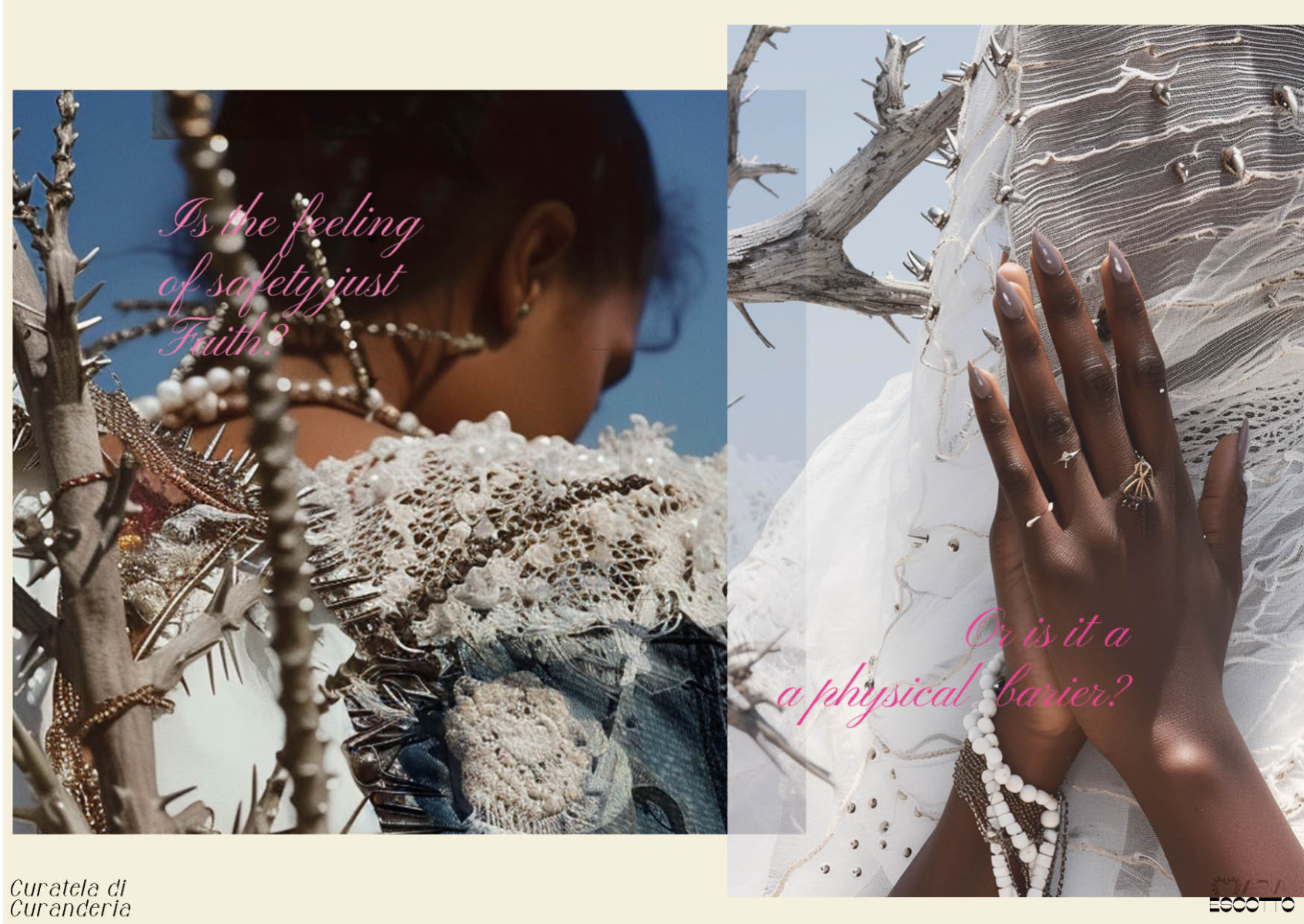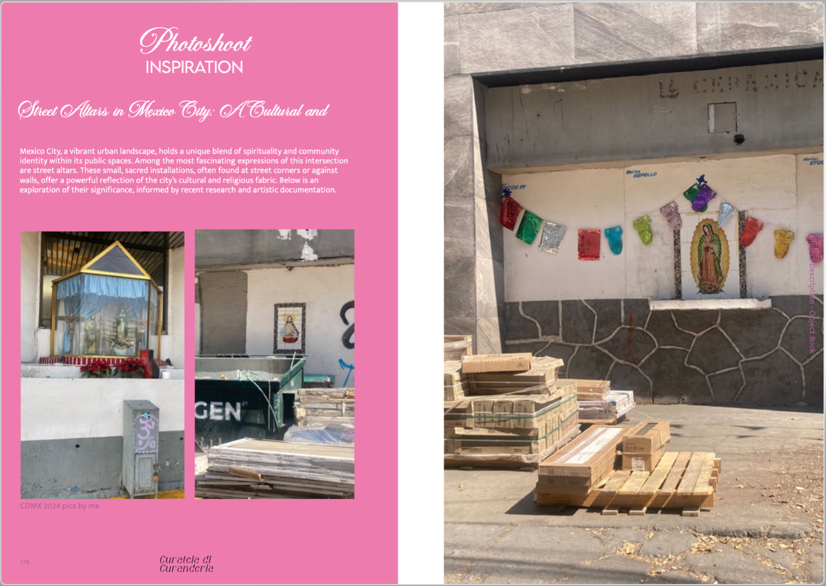 Ritual Femenino is a womenswear collection exploring the intersection between the ritual of being a woman and spiritual protection rooted in my Mexican culture. Women, considered the weak sex in society, hold the spiritual power to bless or curse, embodying hidden strength. Inspired by this duality and the ongoing lack of safety, I created protections through a graphic language of textile manipulation, embroidery, prints and charms. Textiles, both sheer and rigid, express vulnerability and concealment. The ritual culminates in a fashion film where house and light are protagonists, extending into a spellbook of ten protective spells with textile pages and artifacts.