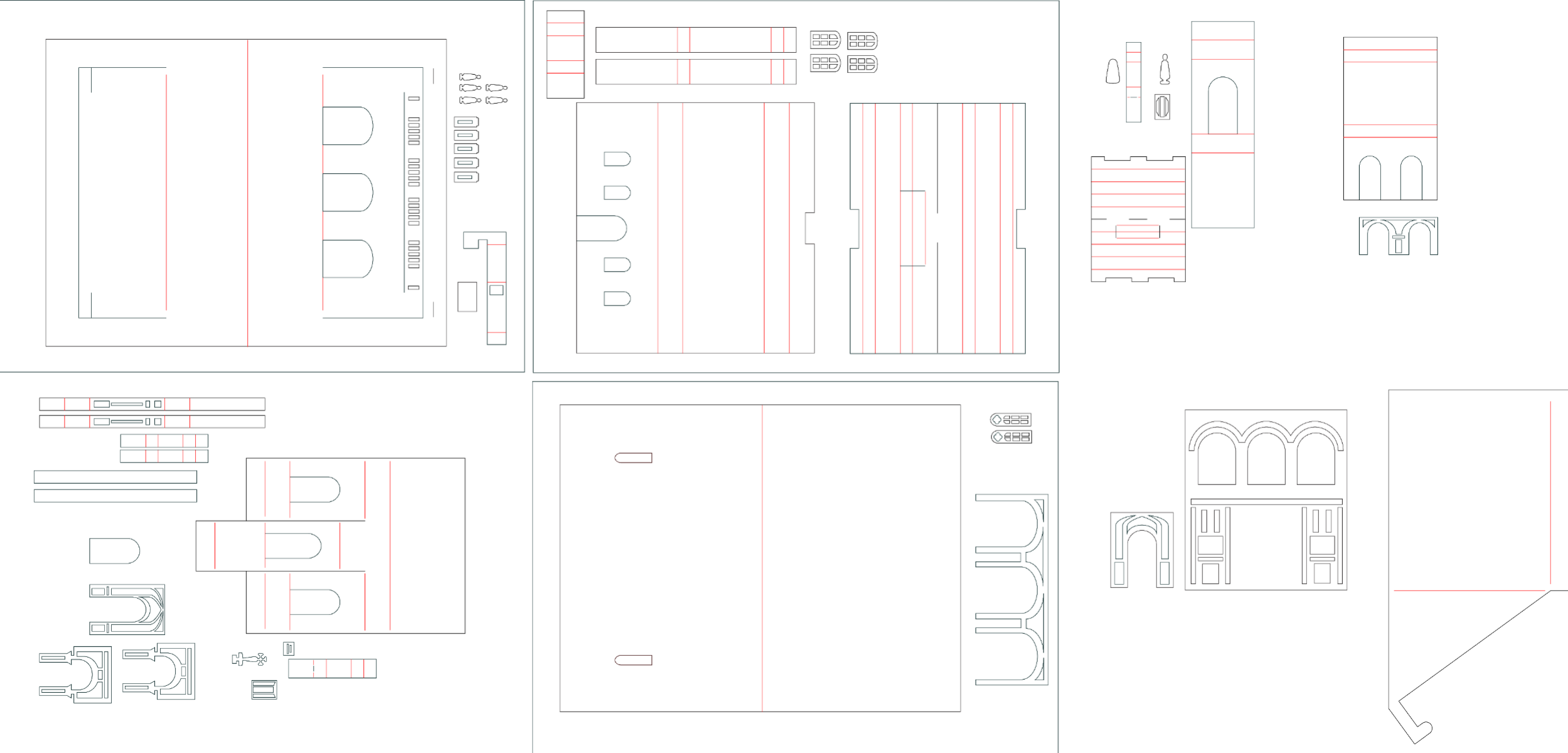 All the world's a stage, and in this project I wanted to make Romeo & Juliet come alive through building the various sets used in the play. They can be viewed on their own, or together as a set, with the opportunity to further expand them using figurines or projections. I also built the final scene, complete with a moveable dagger. The project was designed and prototyped by hand, before being designed and cut digitally. It went through several test stages (snippets of which is included here), originally with a basis in moorish architecture, changes in construction methods and dimensions. There is also a video submission at the beginning of the project.