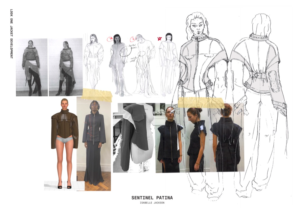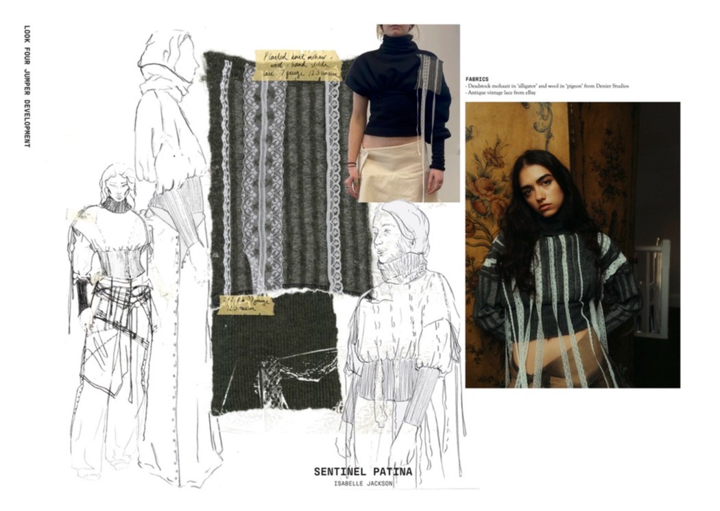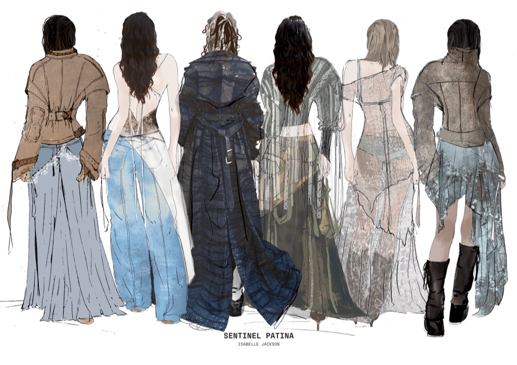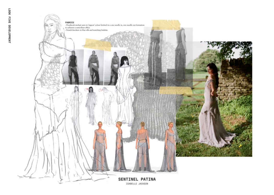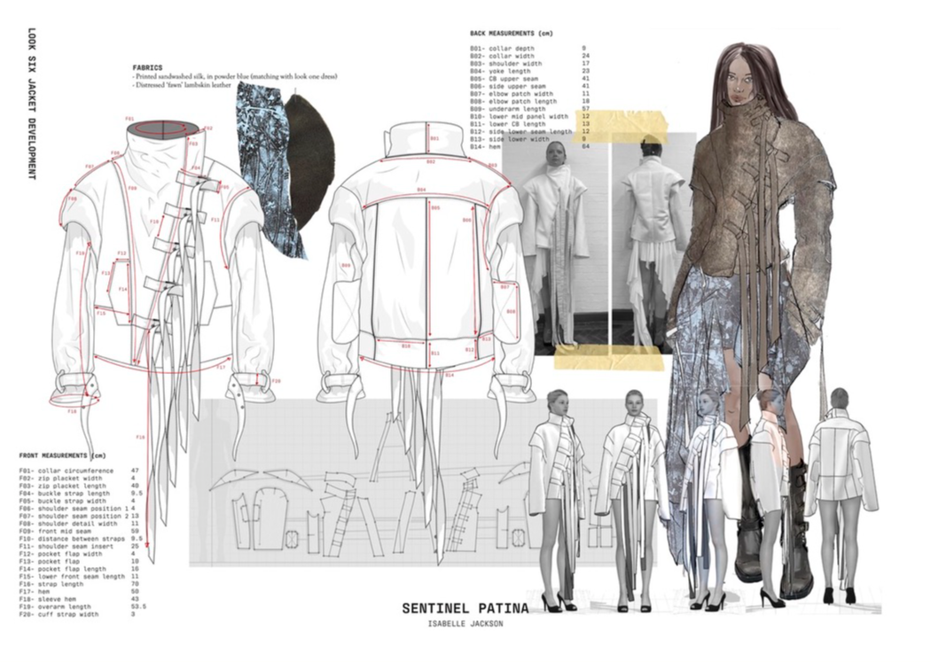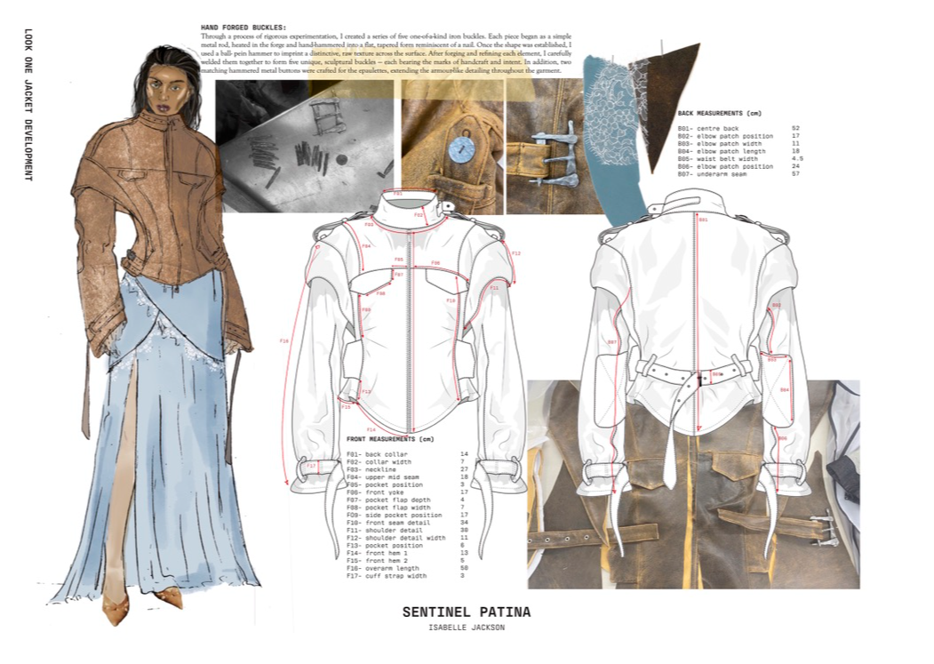 "Sentinel Patina" is a womenswear collection that explores the poetic contrast between fragility and strength. Inspired by the hidden histories of vintage garments, it combines delicate sand-washed silks, chiffon, and georgette with repurposed military canvas and lamb’s leather. Referencing 20th-century lingerie and 1940s British military wear, the collection investigates the tension between softness and structure, femininity and utility. Through fabric manipulation and careful material sourcing, Sentinel Patina celebrates ageing, imperfection, and resilience, reflecting garments as both armour and artefact. This collection forms part of a broader practice rooted in sustainability, textile experimentation, and emotionally resonant design.