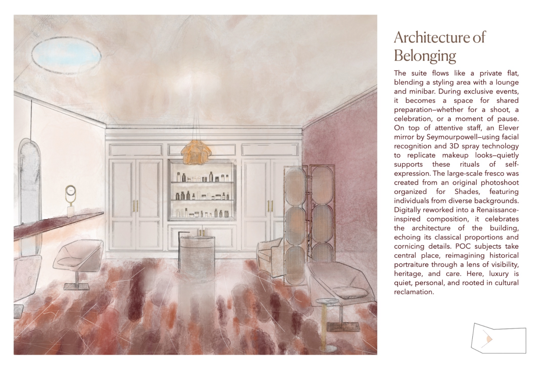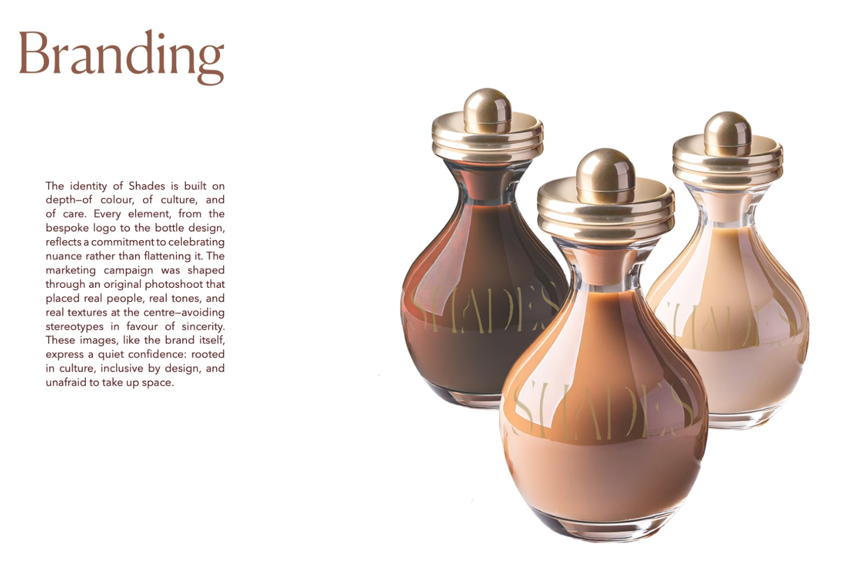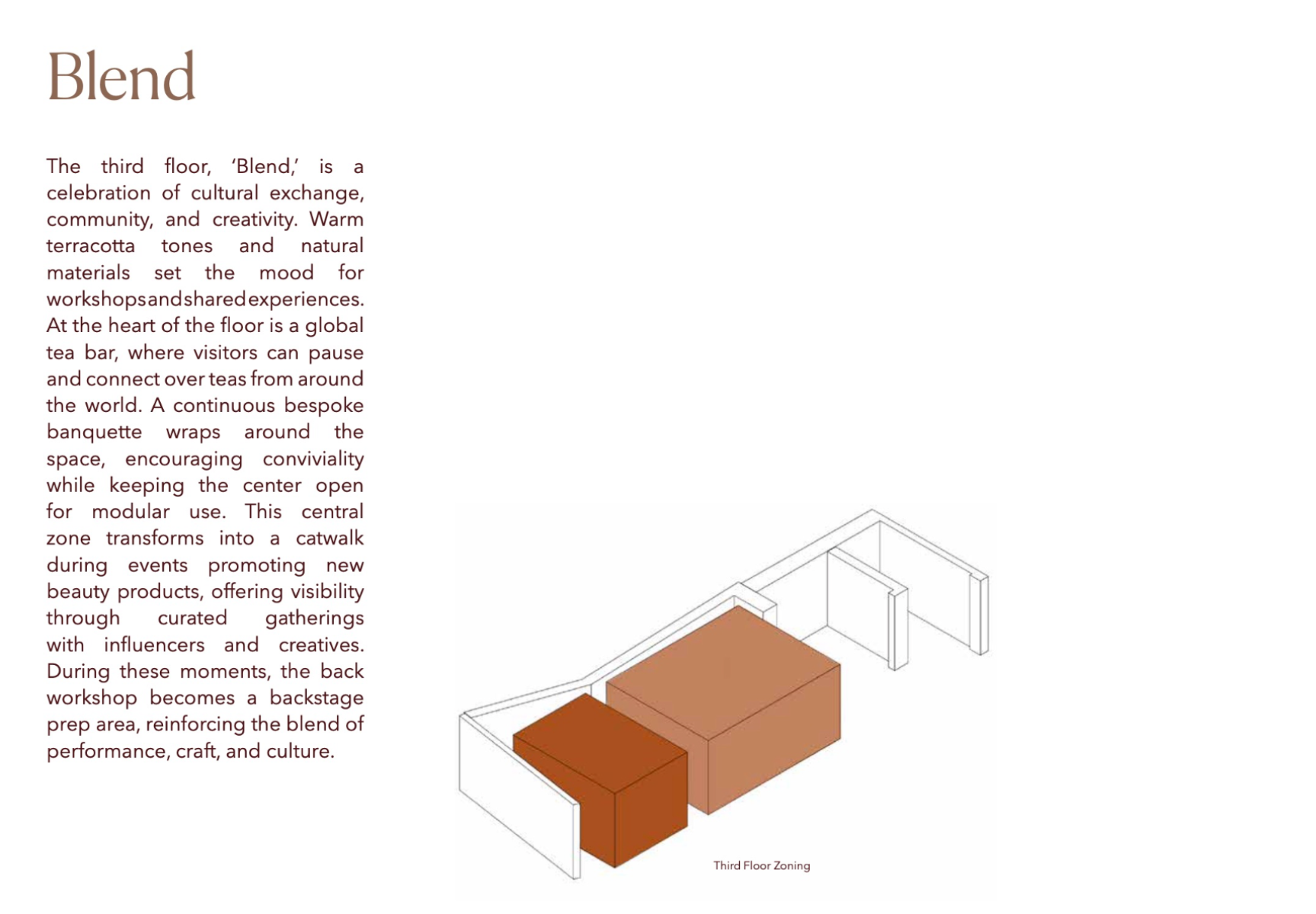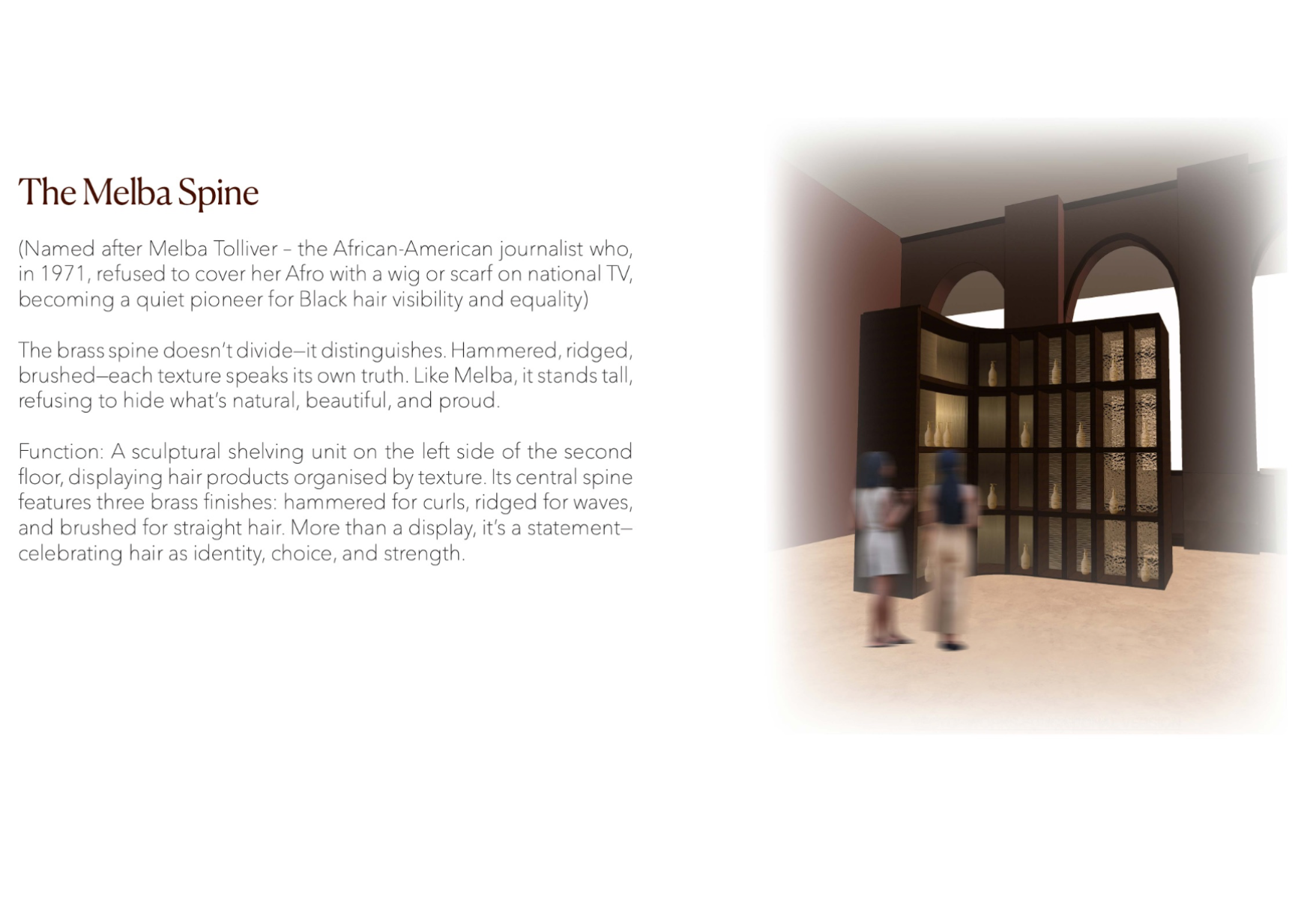 Shades is a beauty retail concept that celebrates multiculturalism and inclusivity, with a focus on people of colour and those of mixed heritage. The design reimagines the beauty store as a space centred on identity, connection, and confidence. Spread across five themed floors, it offers immersive experiences like smart mirrors, swatch-matching tools, workshops, and a multicultural tea bar. Every material, texture, and furniture piece draws from global craft traditions. Rooted in warm, earthy tones, Shades creates an environment where the customer is at the centre — a place where individuality is embraced and everyone feels seen.
