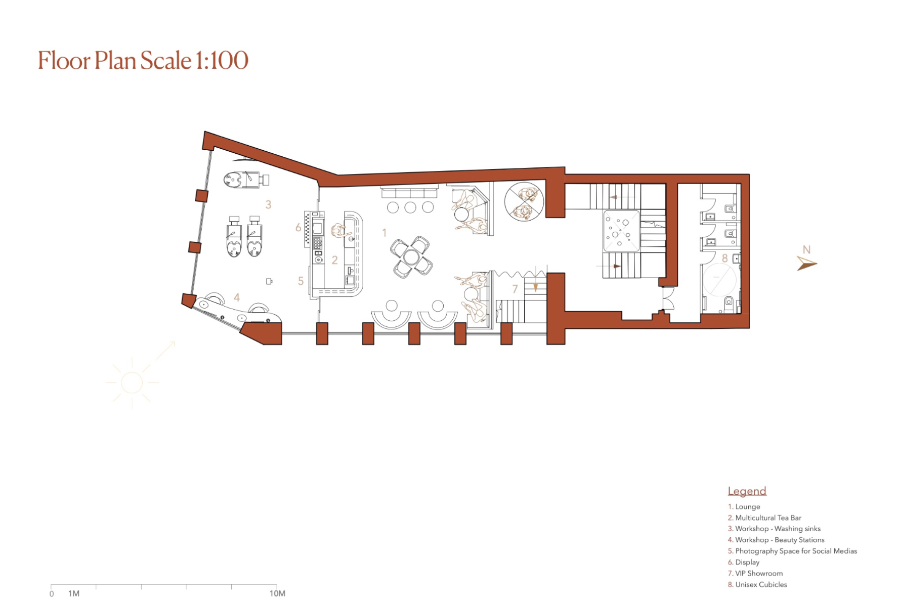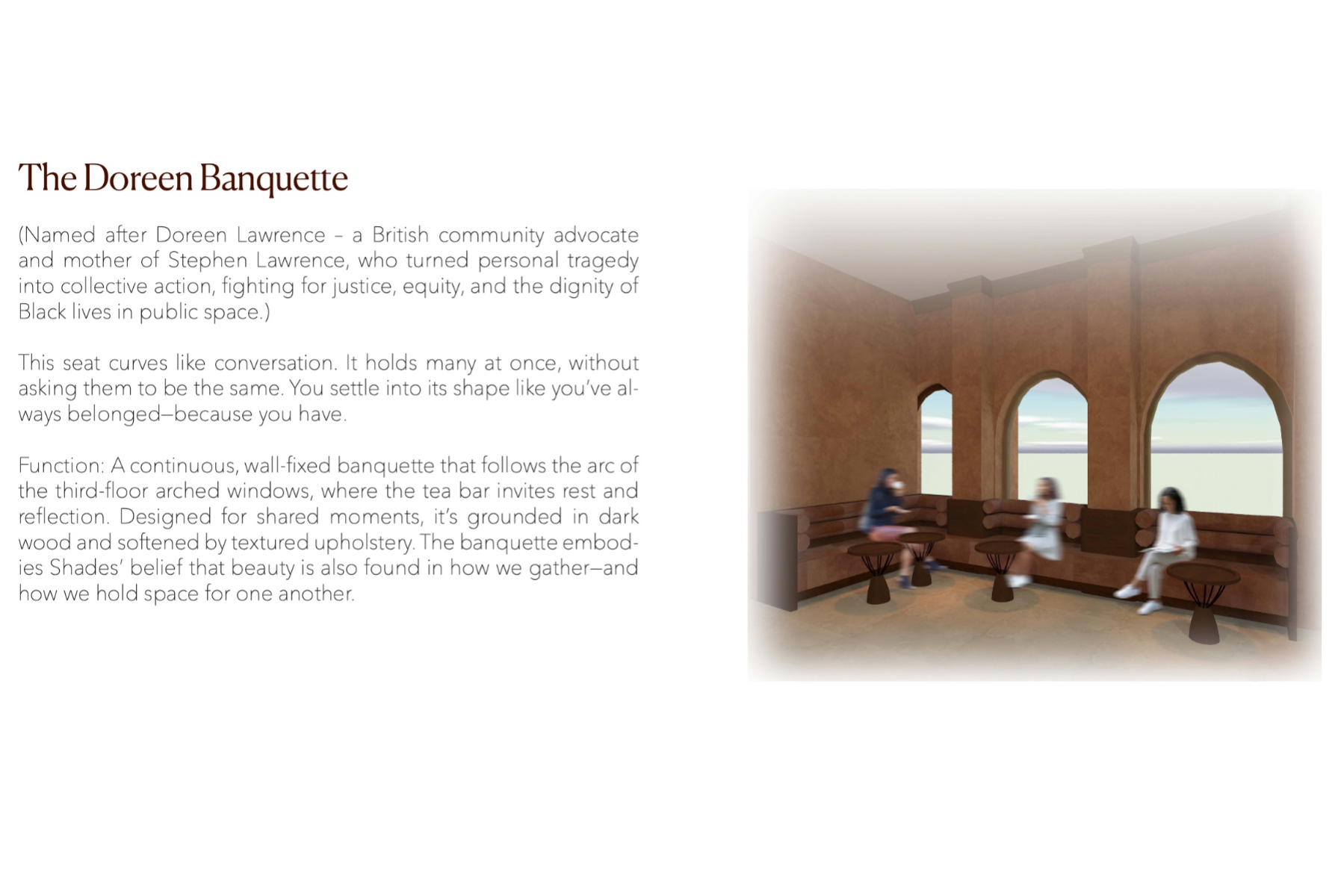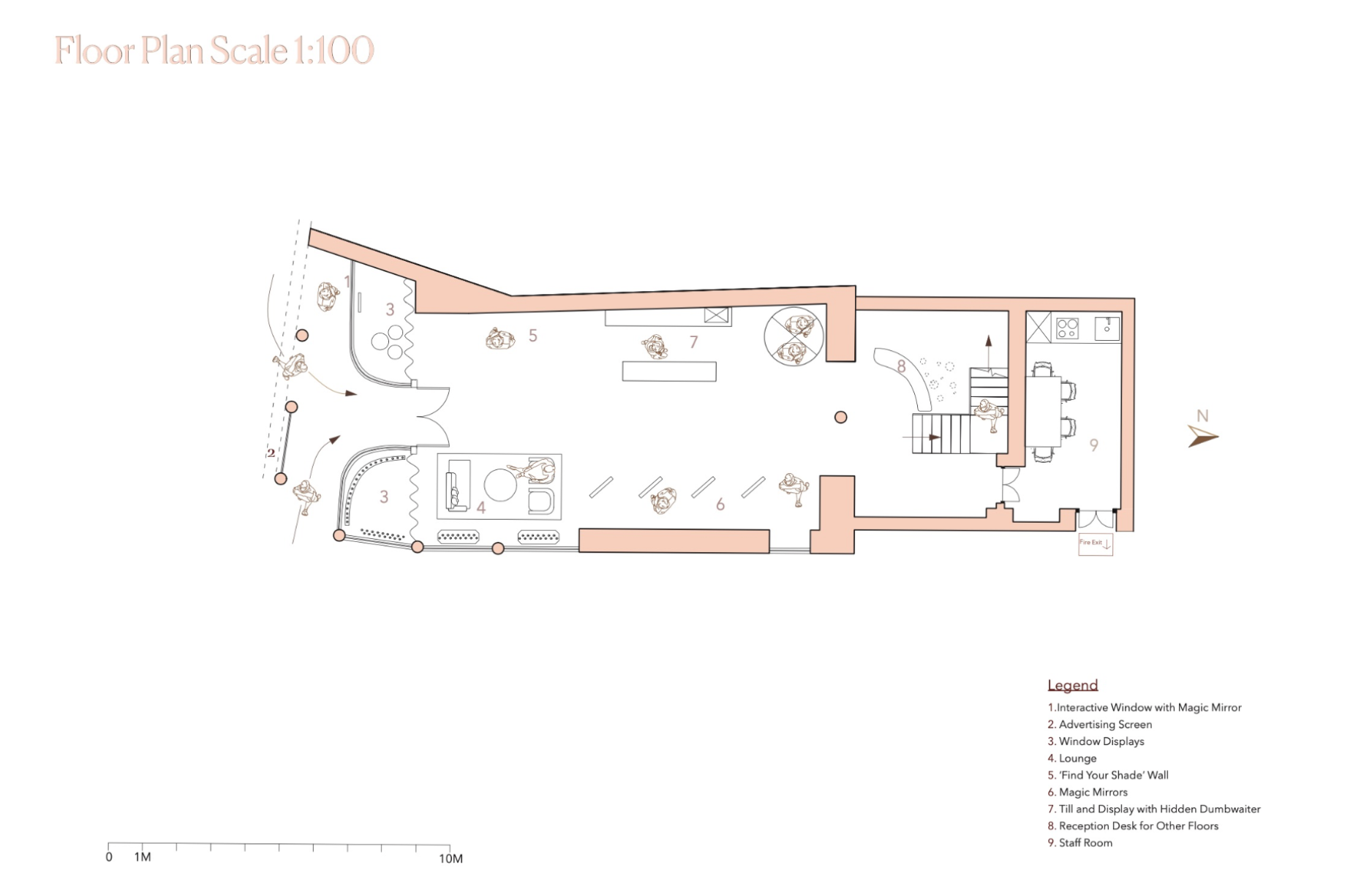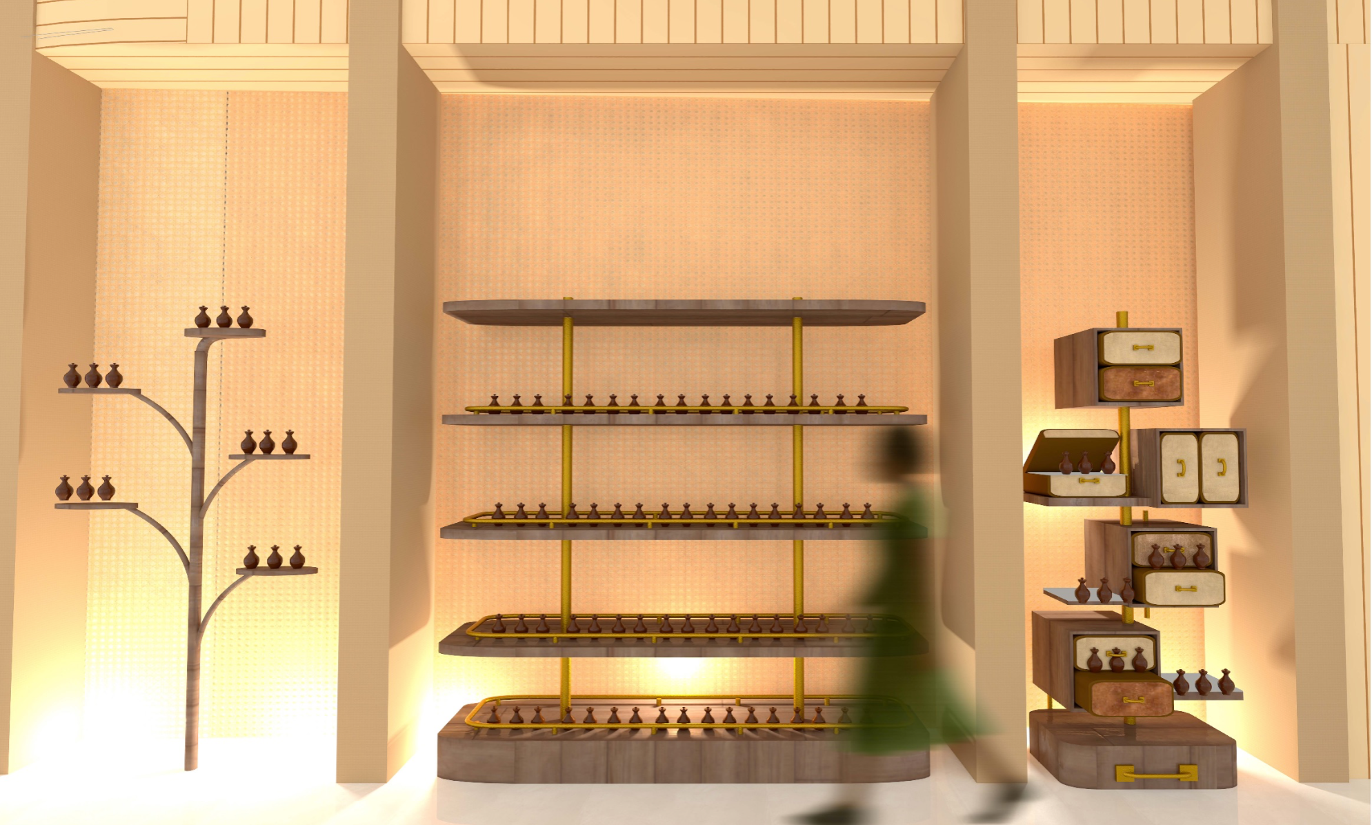 Shades is a beauty retail concept that celebrates multiculturalism and inclusivity, with a focus on people of colour and those of mixed heritage. The design reimagines the beauty store as a space centred on identity, connection, and confidence. Spread across five themed floors, it offers immersive experiences like smart mirrors, swatch-matching tools, workshops, and a multicultural tea bar. Every material, texture, and furniture piece draws from global craft traditions. Rooted in warm, earthy tones, Shades creates an environment where the customer is at the centre — a place where individuality is embraced and everyone feels seen.
