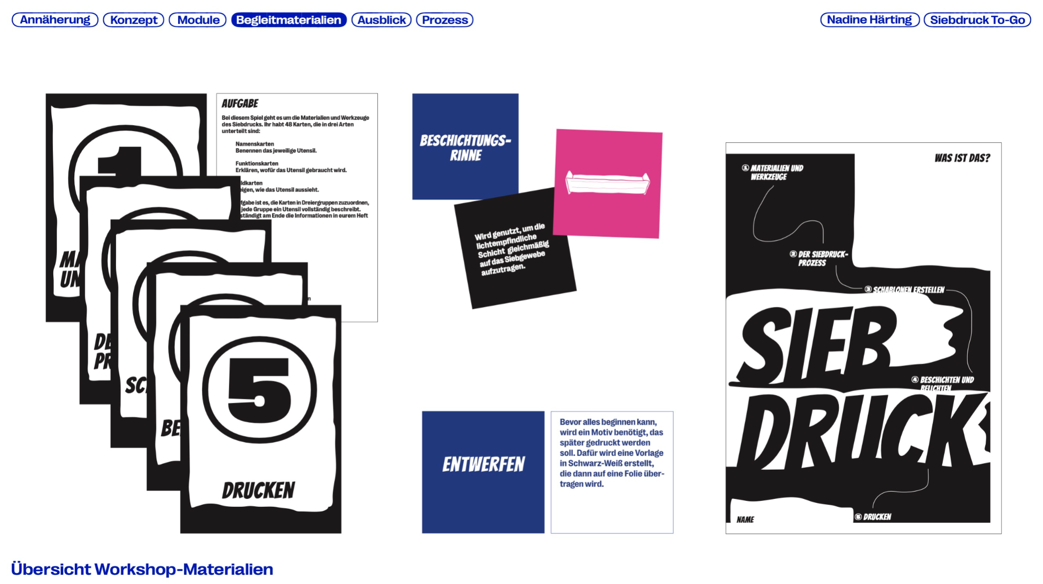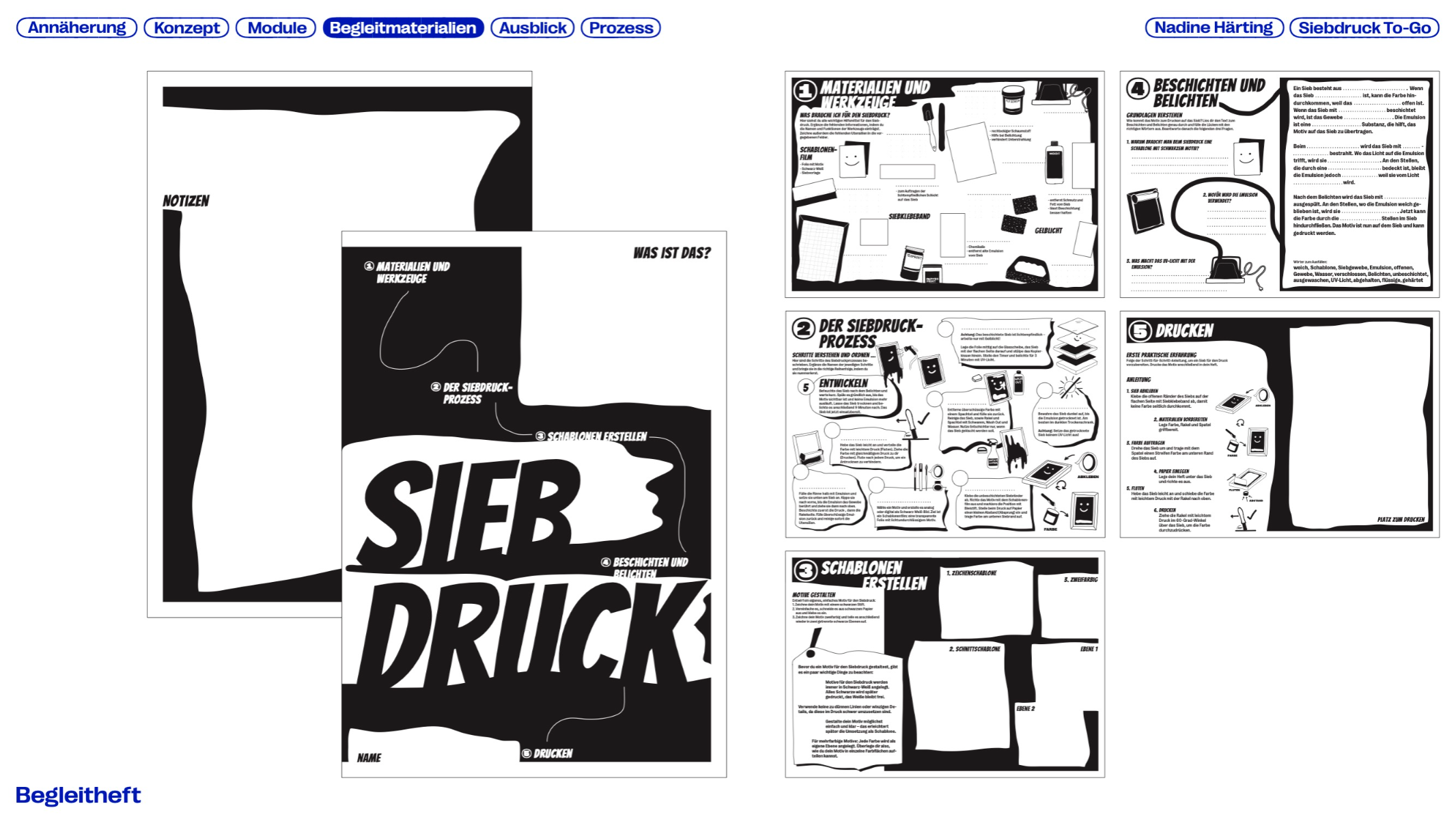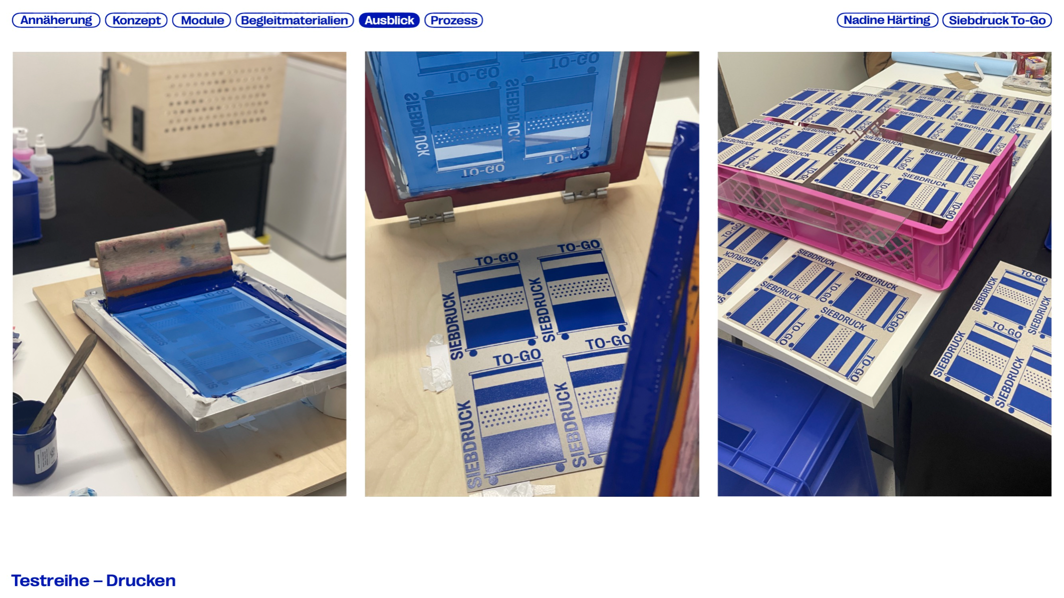 Printing is a traditional craft and an important part of cultural history. Screen printing is versatile, capable of printing on many materials while producing durable results, yet it is rarely used in educational contexts. This master’s thesis explores the potential of screen printing in schools and the barriers to its integration, developing SIEBDRUCK TO-GO — a mobile concept that makes the technique more accessible. The modular system combines portable units with tools and materials for workshops. A flexible workshop cart based on the Eurobox system enables screen printing even in limited spaces. The project aims to give students a playful way to develop creative and manual skills while promoting this traditional craft in a digital world.