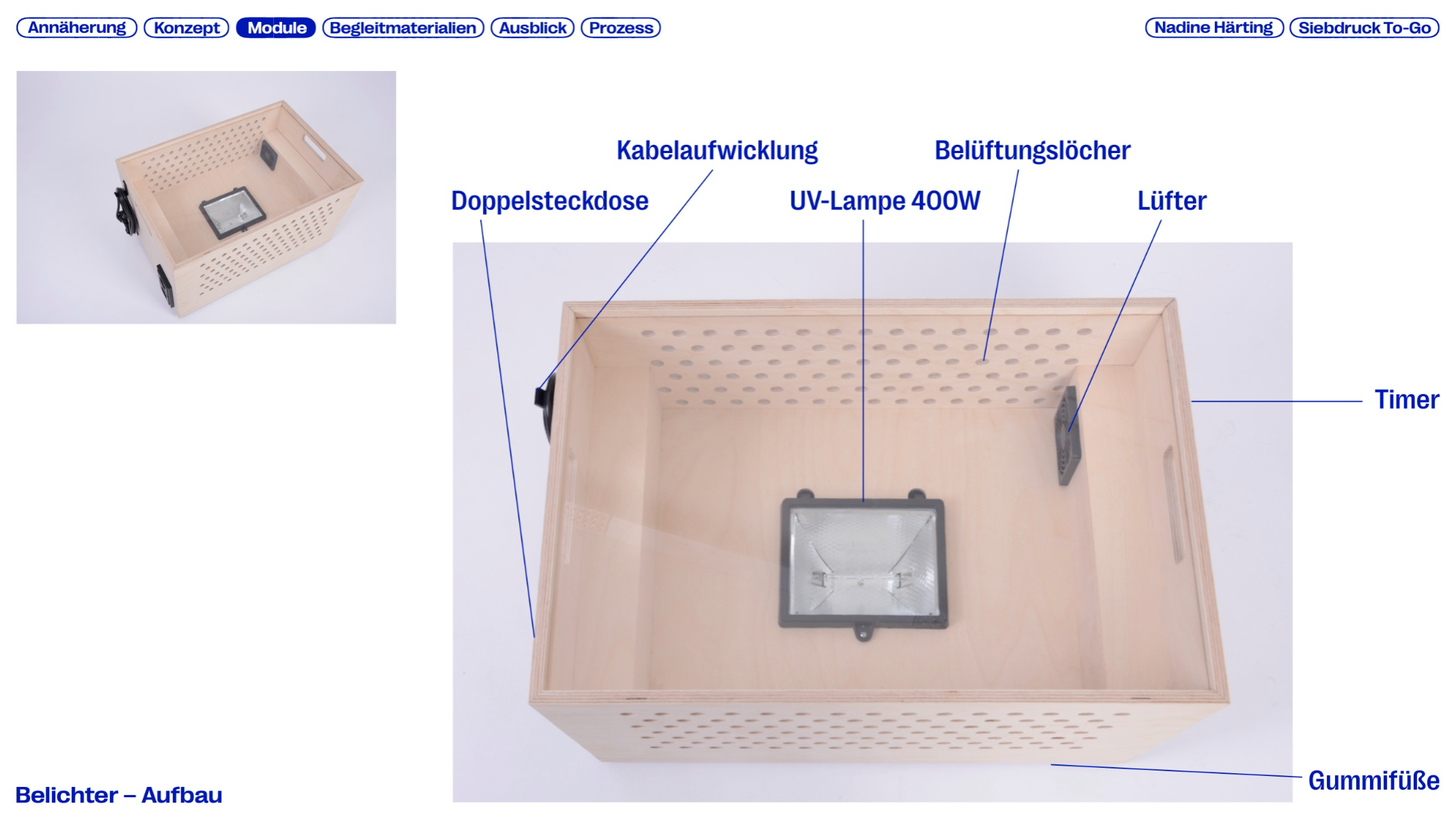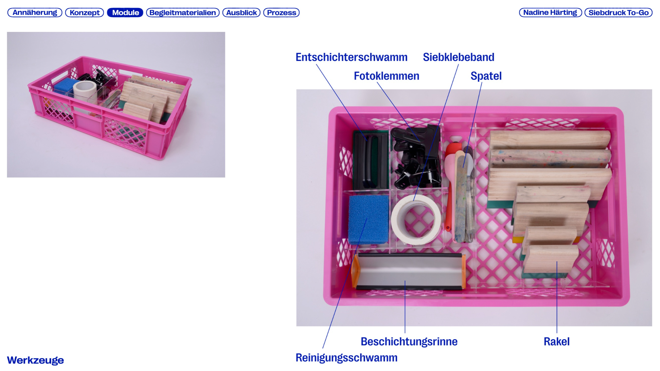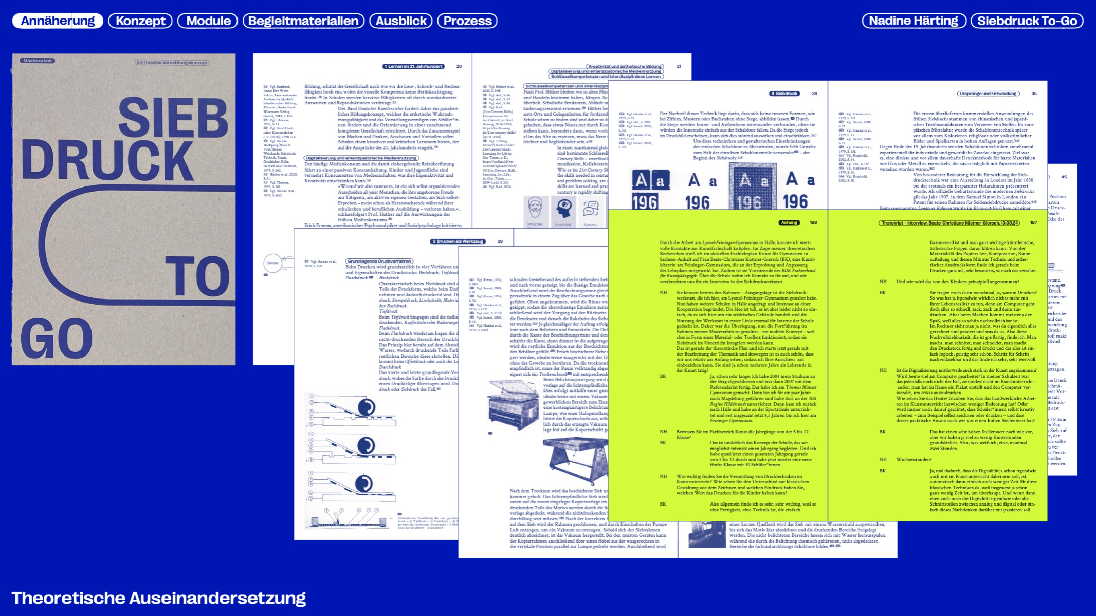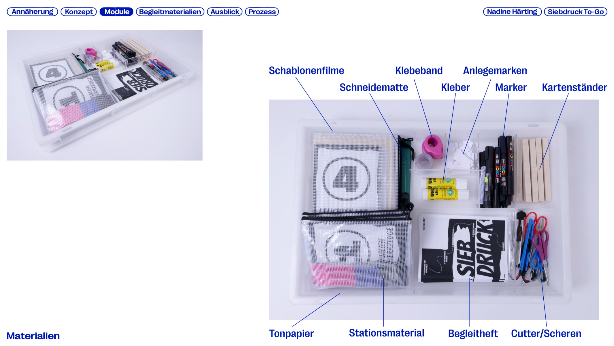 Printing is a traditional craft and an important part of cultural history. Screen printing is versatile, capable of printing on many materials while producing durable results, yet it is rarely used in educational contexts. This master’s thesis explores the potential of screen printing in schools and the barriers to its integration, developing SIEBDRUCK TO-GO — a mobile concept that makes the technique more accessible. The modular system combines portable units with tools and materials for workshops. A flexible workshop cart based on the Eurobox system enables screen printing even in limited spaces. The project aims to give students a playful way to develop creative and manual skills while promoting this traditional craft in a digital world.