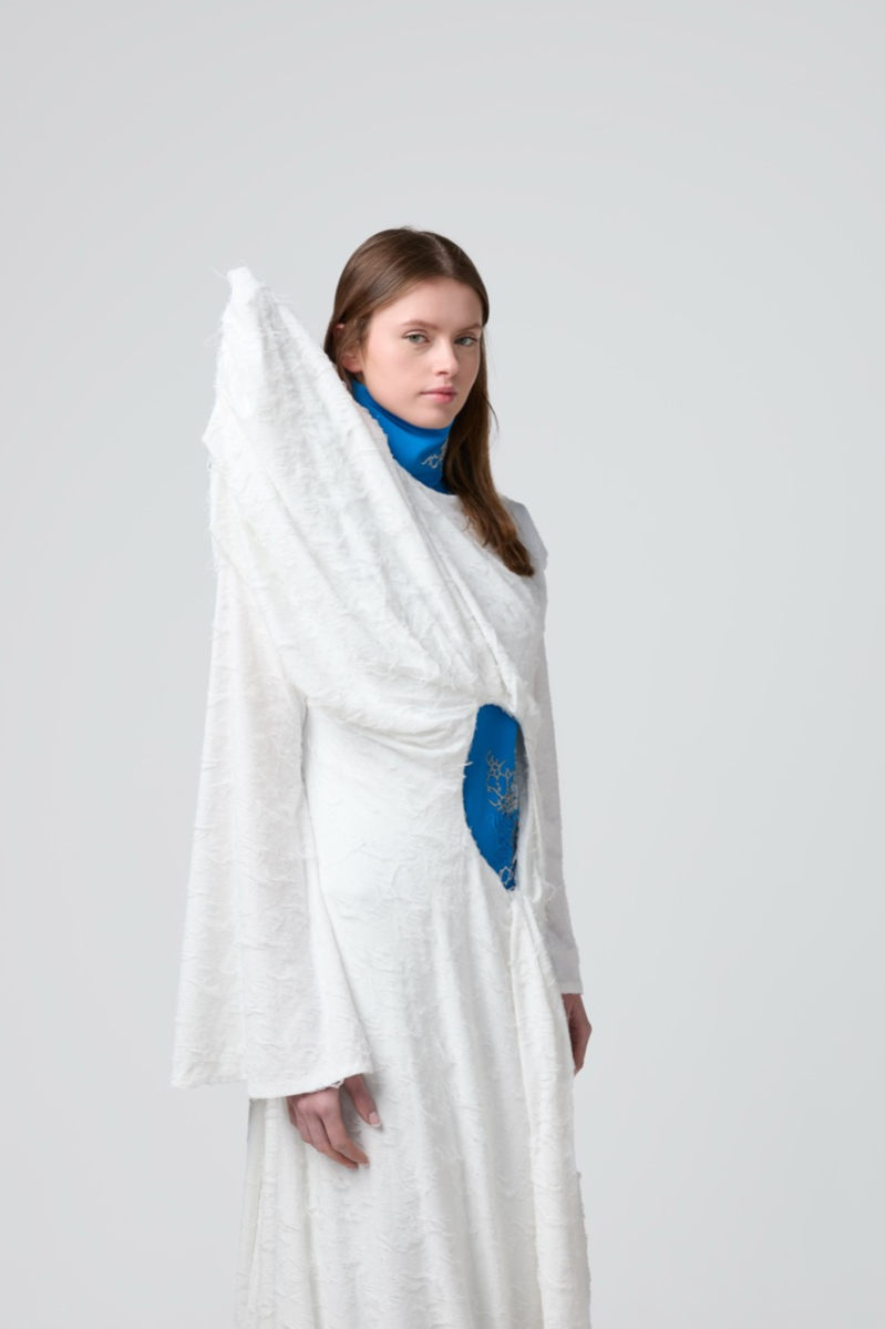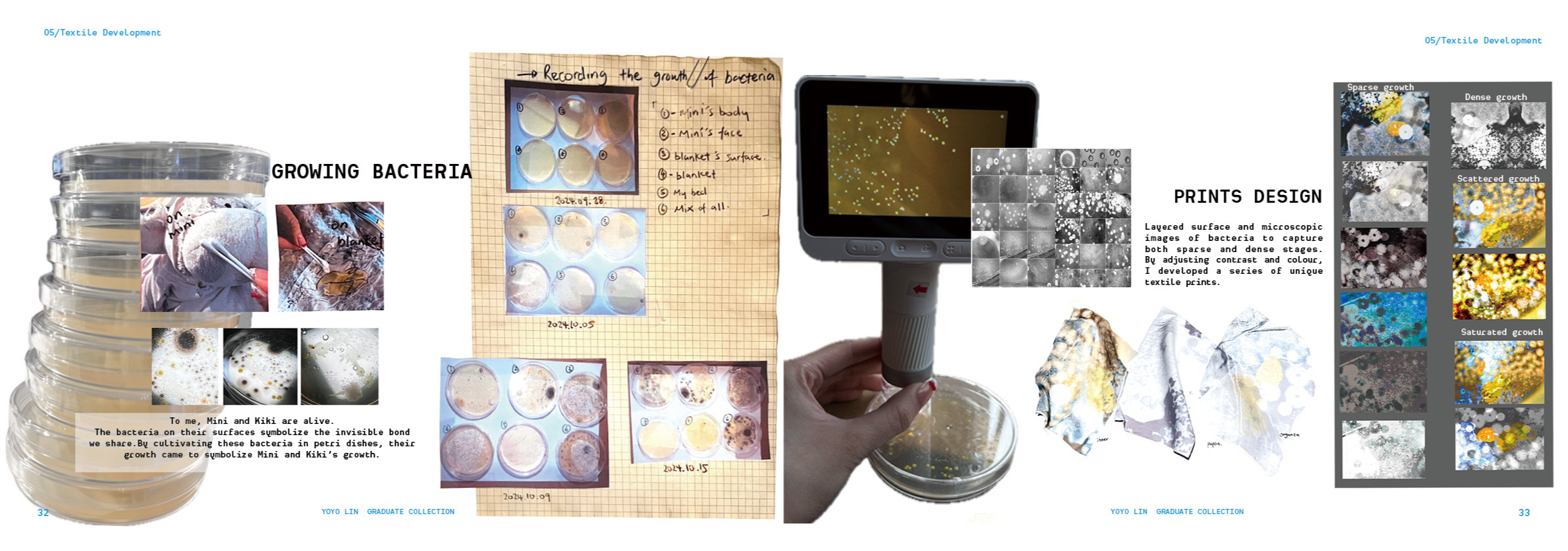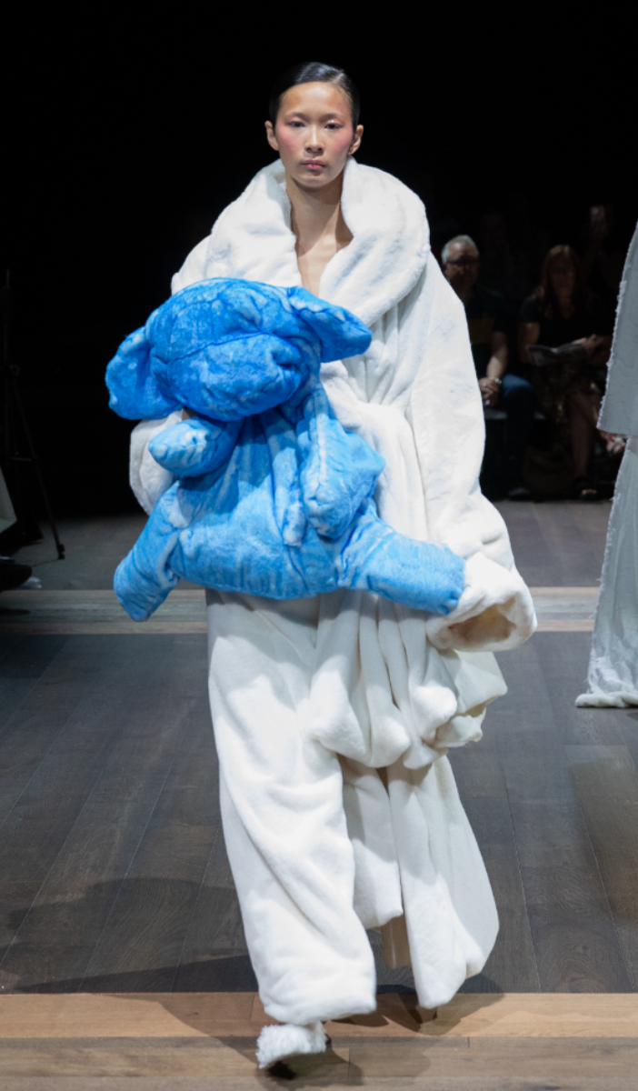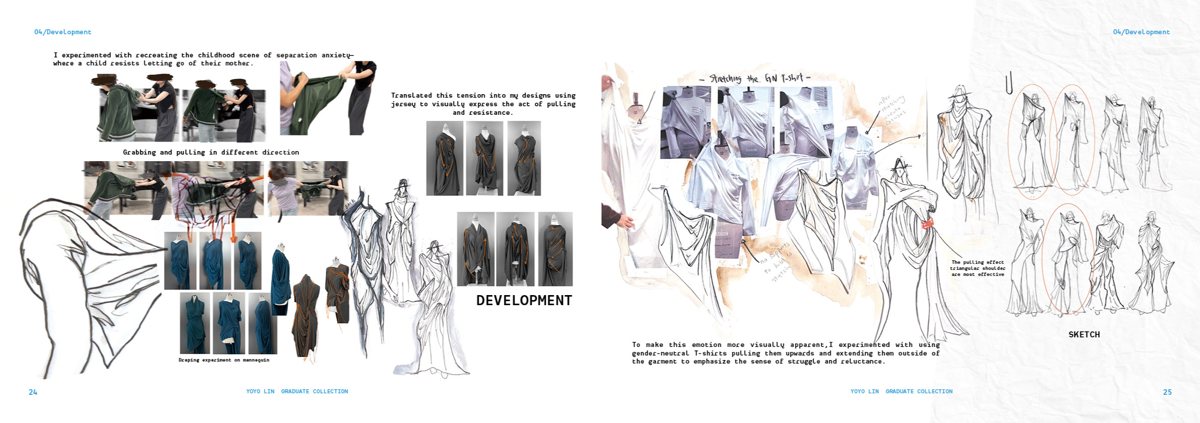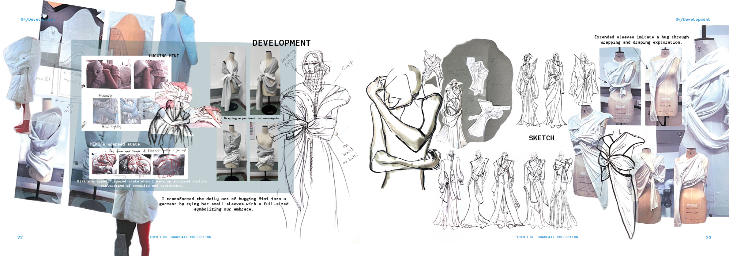 My designs reflect the struggle of letting go through techniques like pulling, wrapping, and distortion. Inspired by Mini’s transformation from soft to worn, my textile work captures the passage of time, honouring her not as an object, but as a lifelong companion shaped by touch, memory, and time. Rooted in my personal journey with Mini and Kiki, this collection challenges the belief that emotional attachment is childish or should be hidden. Instead, it celebrates the courage to embrace our feelings and to express love for the companions—and memories—that have shaped who we are.