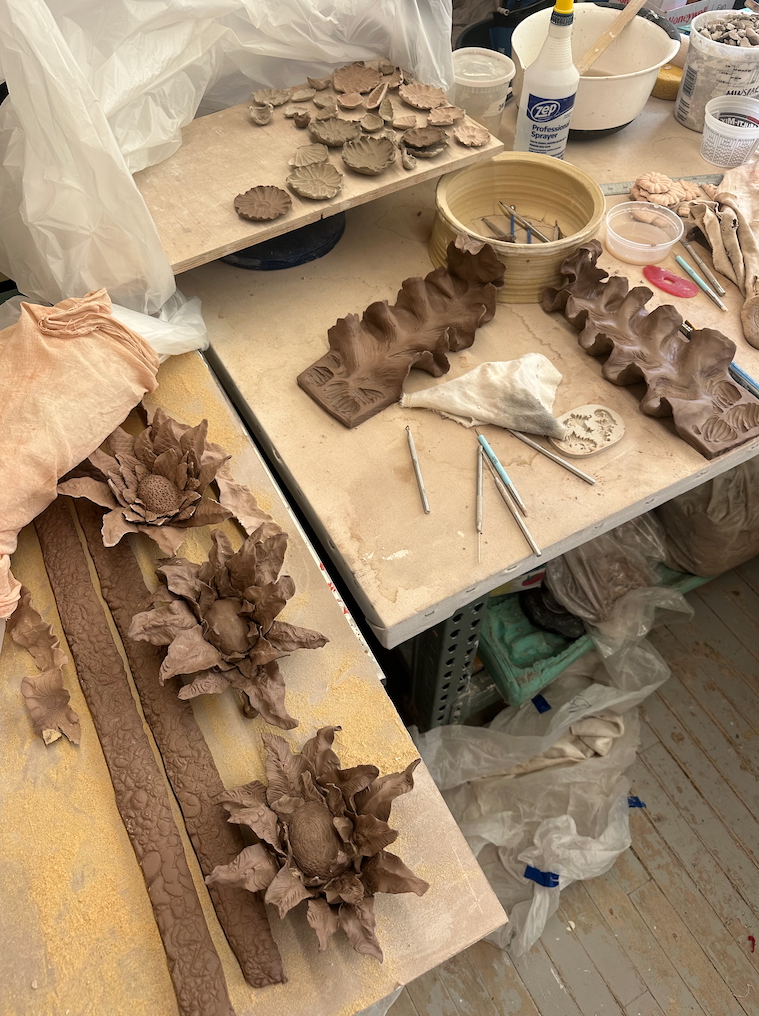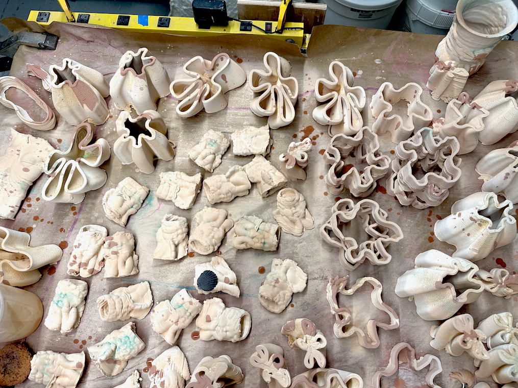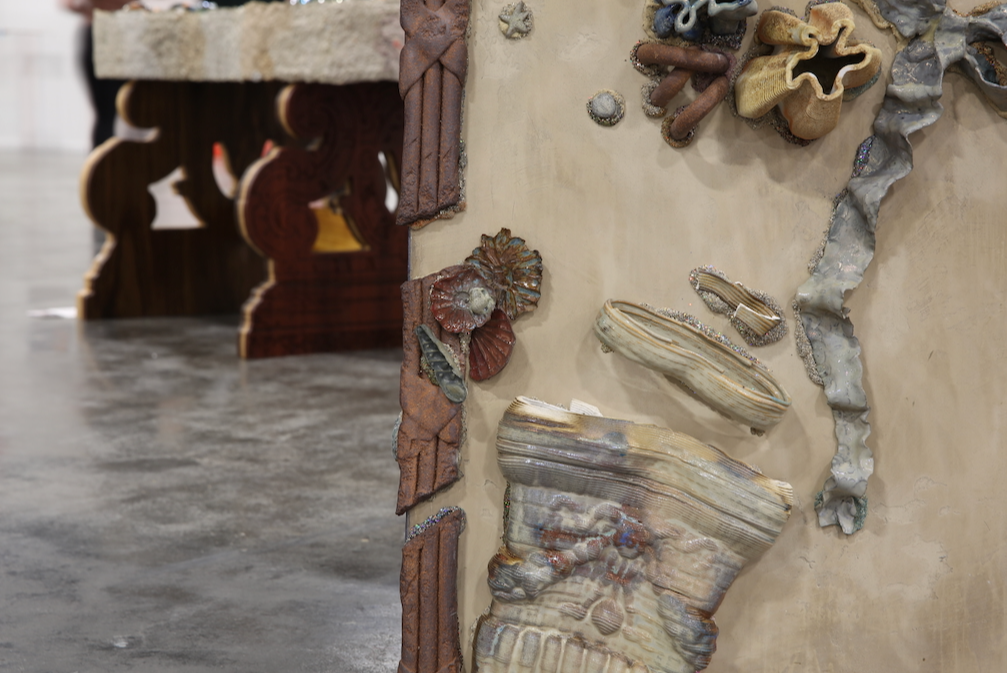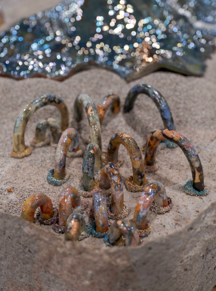 Ana Popescu (b. 1988) is a Romanian-American, multi-disciplinary artist currently living in Providence, Rhode Island. After receiving her BFA from Pratt Institute, Ana co-founded an immersive underground event company in NYC where, under the moniker A.Pop, she designed and produced site-specific art installations, and curated a roster of local performance artists for each thematic event. She continued to grow her production career from there, leading large-scale, high-profile branded productions across the US for various prominent advertising agencies based in NYC. One positive outcome of the pandemic was the opportunity for Ana to focus more deeply on her fine art practice. She earned the Friends of Arrowmont Scholarship and the Trudy and Henry Gillette Sculpture Scholarship for the 148th Regular Session at the Art Students League of New York in 2022. In 2023, she completed a residency at the Watershed Center for Ceramic Arts, followed by the Anderson Ranch Scholarship in 2024. Ana received her MFA in Ceramics from the Rhode Island School of Design in 2025, where she was awarded the RISD Fellowship, the Windgate Foundation Scholarship, the RISD Graduate Ceramic Award, and the Graduate Ceramic Residency. She has exhibited her work in over two dozen exhibitions across New York City, Bucharest, and Providence, Rhode Island. My practice explores the tensions and contradictions that shape identity, memory, and perception. As an immigrant from communist-era Romania raised in the hyper-ornamented sprawl of suburban Florida, I exist between worlds—between austerity and excess, mythology and fact, survival and comfort. This in-betweenness is both a site of inquiry and a source of creation. Whether working in large immersive installations or object-based sculptural works, I draw from the historical forms, scale, and energy of monuments, ruins, and maximalist decorative motifs—not to replicate them, but to question the ideologies they carry. Ornament becomes a tool for reflection: a language of illusion, power, and embedded narrative. By deconstructing these excessive details, I aim to reveal the scaffolding behind the spectacle—the hidden frameworks that shape how we remember, value, and mythologize. Each piece is built from accumulations of fragments, found materials, ceramics, and cast objects already charged with personal meaning. Through an intuitive process of collecting and embedding, these elements become part of a broader system of remembrance.By combining materials such as wood and ceramic, or fibers and resin, with both old and new processes, I aim to subvert the ornament’s original purpose—allowing a new record to take its place in history. What began as an instinctive impulse to hold onto past spaces soon crystallized into a way of thinking. I began referring to these works as “time capsules”: vessels for memory and transformation, containers of personal history reframed through making. This process is intuitive, guided as much by material response as by conceptual intent. As the work evolves, it absorbs traces of my past, my questions, and my unconscious. Each piece becomes a kind of sealed diary—imprinted with my psyche, layered with contradiction, and offered as both artifact and mirror.