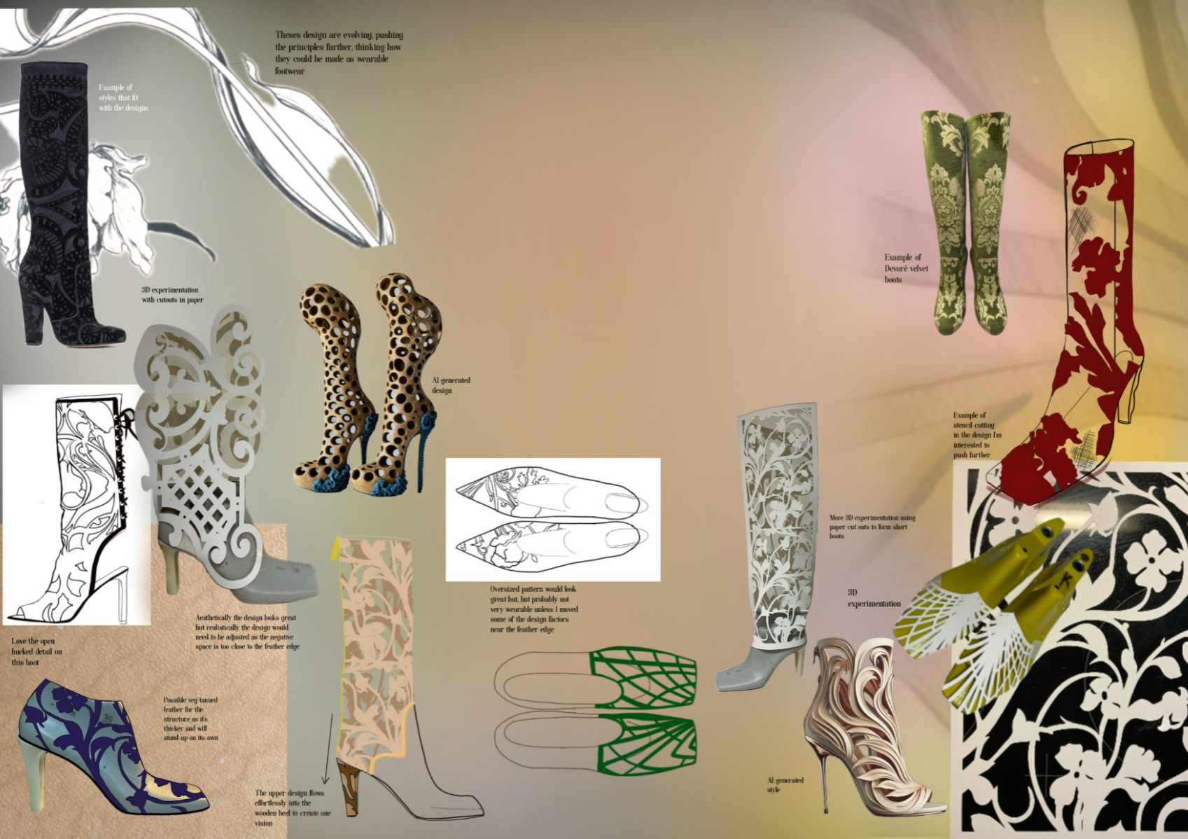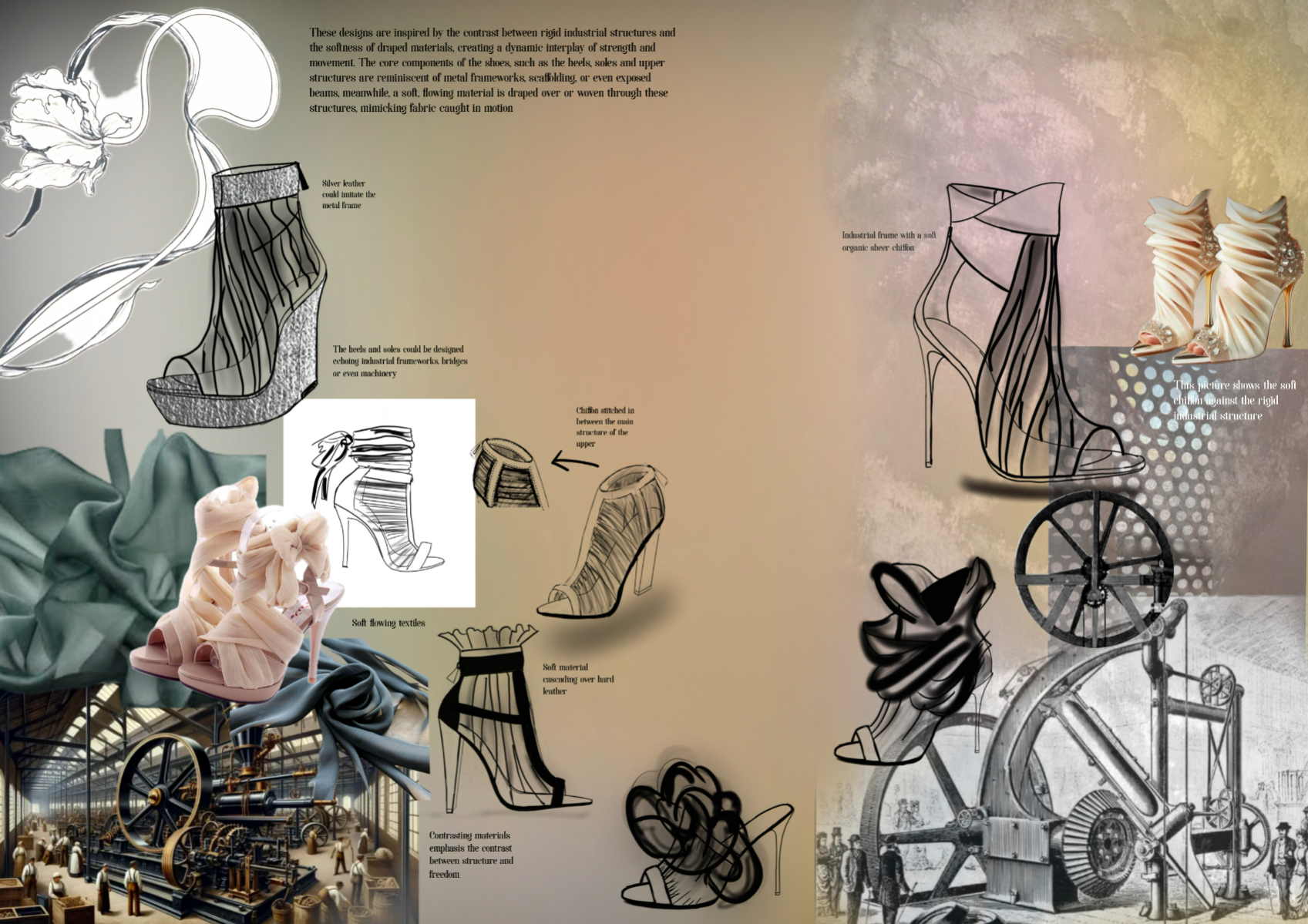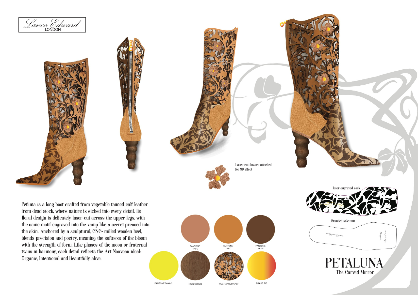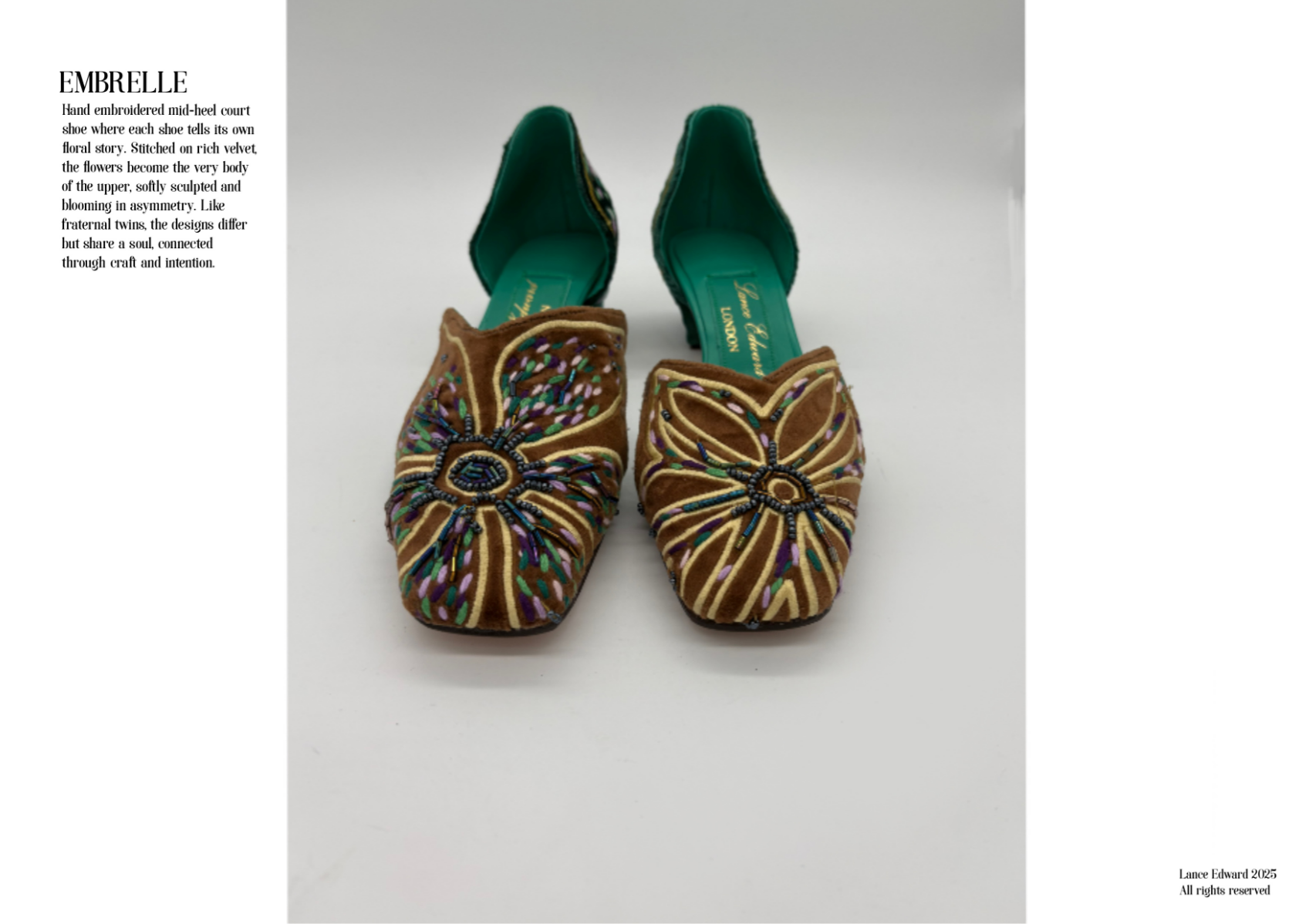 Being an identical twin has made me deeply aware of the tension between sameness and individuality. While my twin and I mirror one another, we are never truly identical, this duality inspires my footwear. I design shoes that reject repetition, instead becoming “fraternal twins” that flow together yet remain distinct. Each pair tells a story across both feet, forming a dialogue rather than a duplication. In contrast to the uniformity of mass production, my work celebrates difference, craftsmanship, and the beauty of imperfection. Through this approach, I aim to challenge conventions and offer footwear that feels both personal and poetic.
