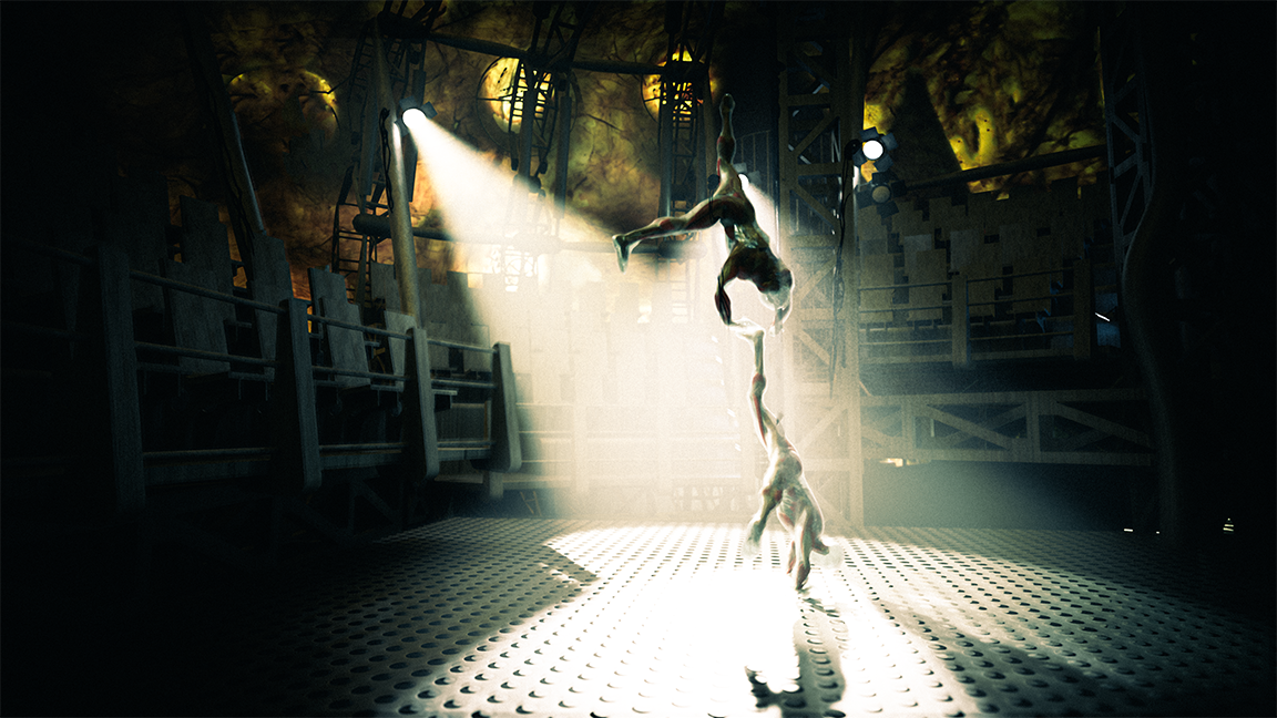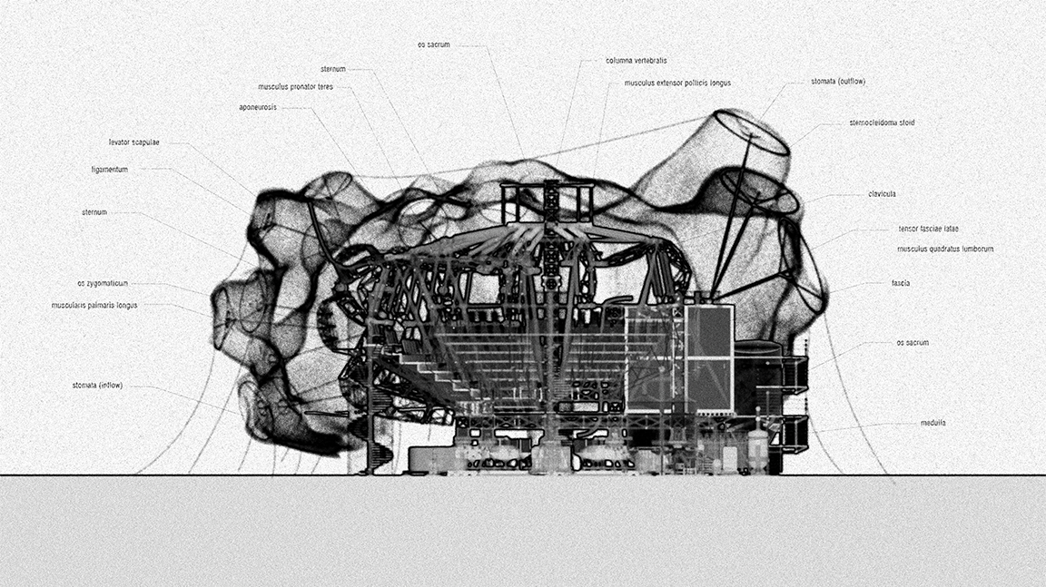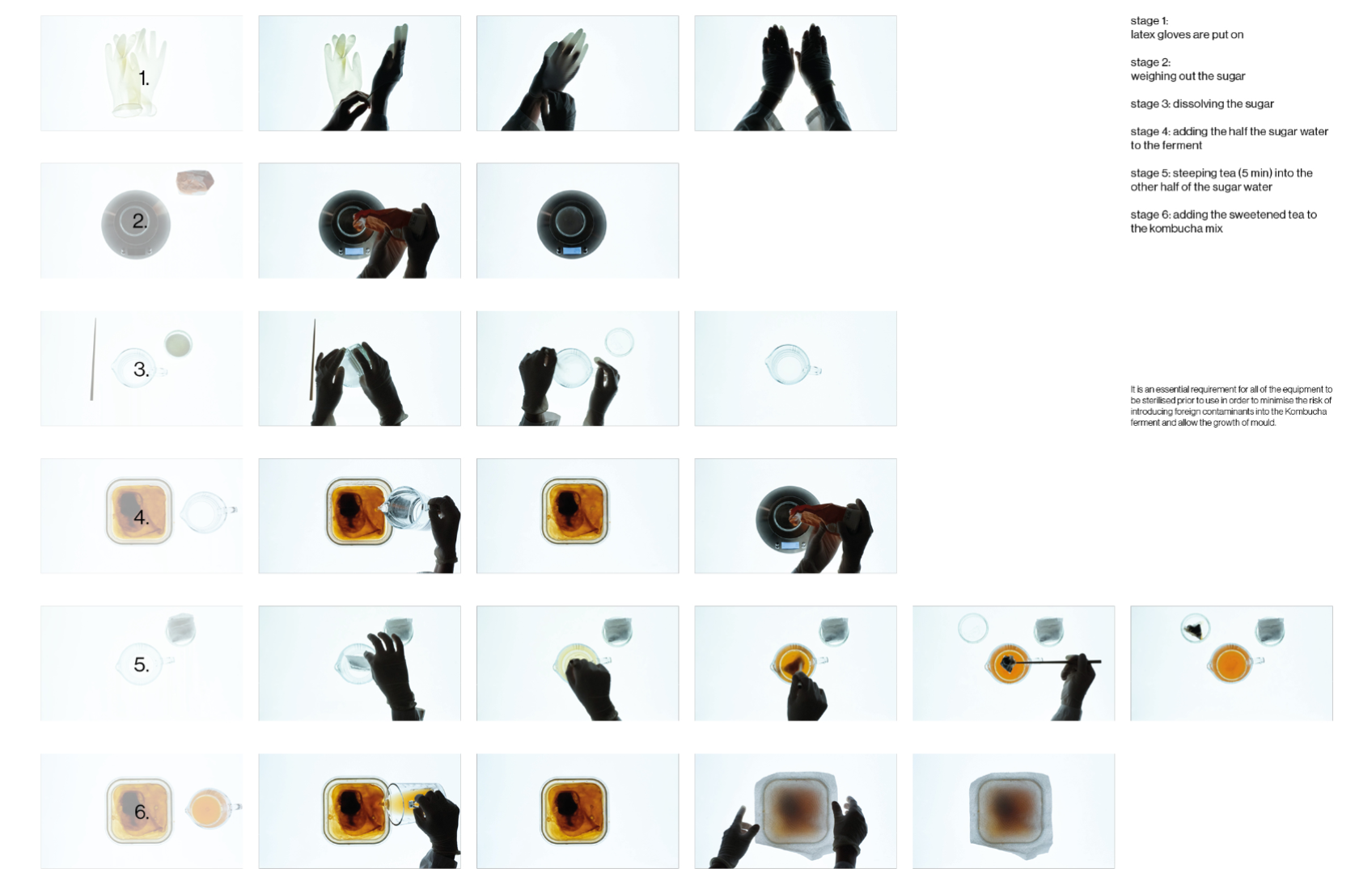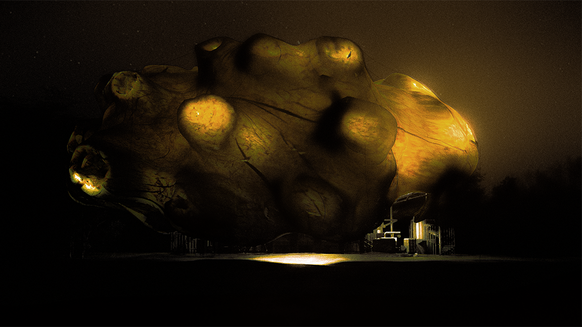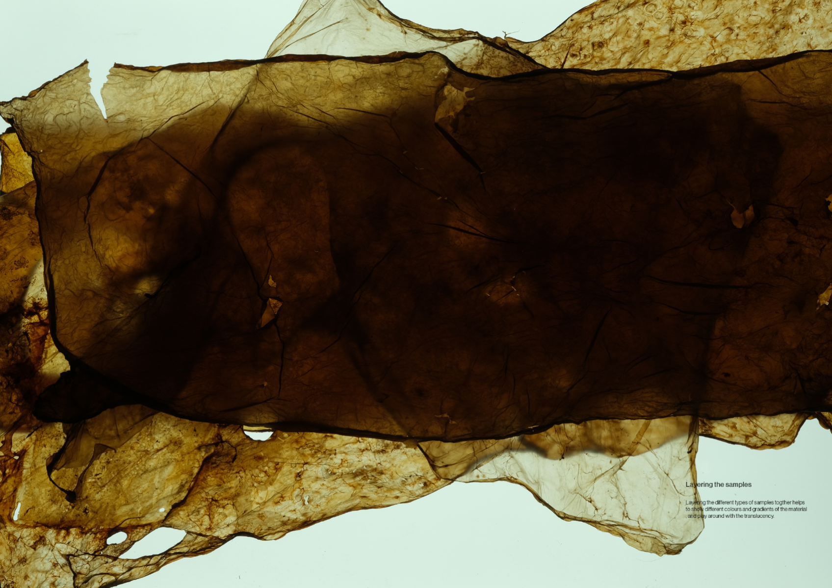 Haringey is at a crossroads. With its rich industrial heritage and vast nature reserves the borough is poised for a spectacle to bring the community together. Waste from the Beavertown Brewery and the disused canal is metabolised by a culture of kombucha bacteria and yeast, transforming it into a cellulose mat. This flesh-like material, once dried becomes a golden translucent leather, that slowly envelopes the scaffolding structure that houses the Jackson’s Lane circus troupe. Spotlights project the acrobats onto the building’s skin, a way of celebrating both the fleshy material of kombucha, the dynamism of the human body and how it moves within the space.