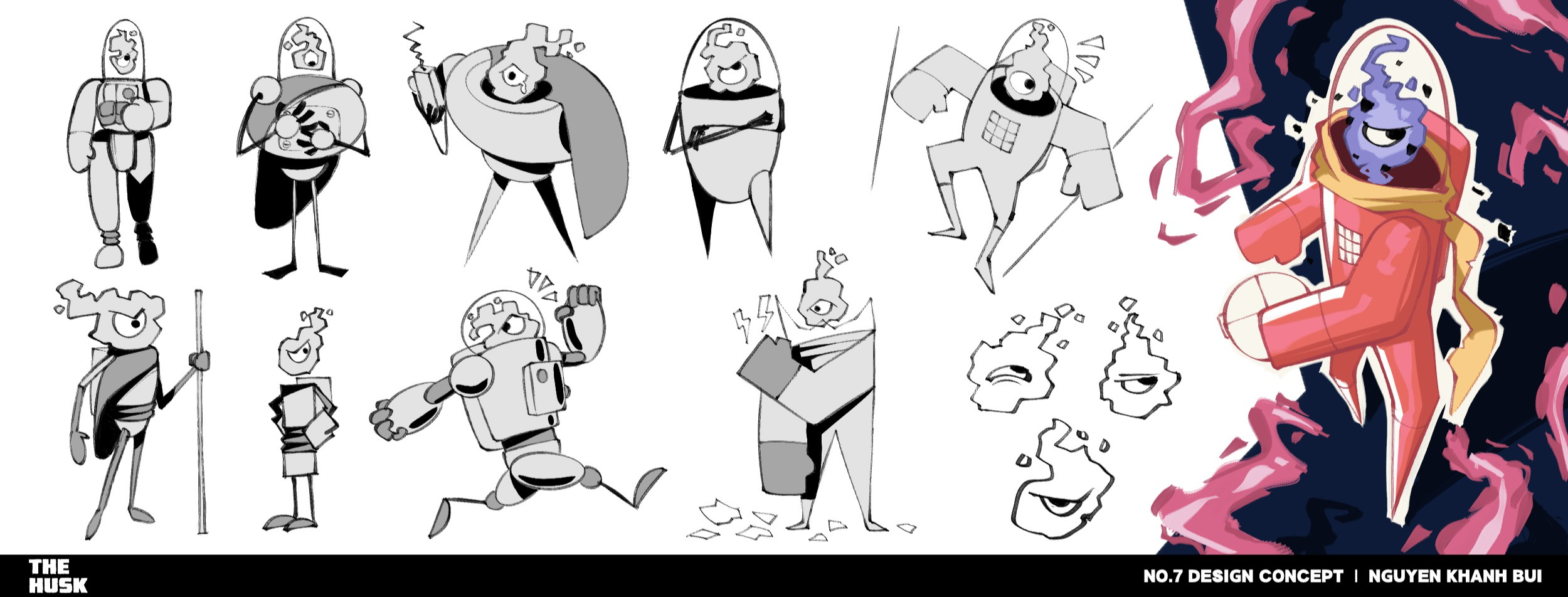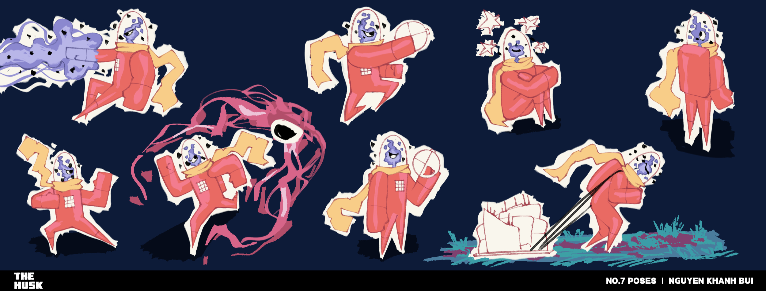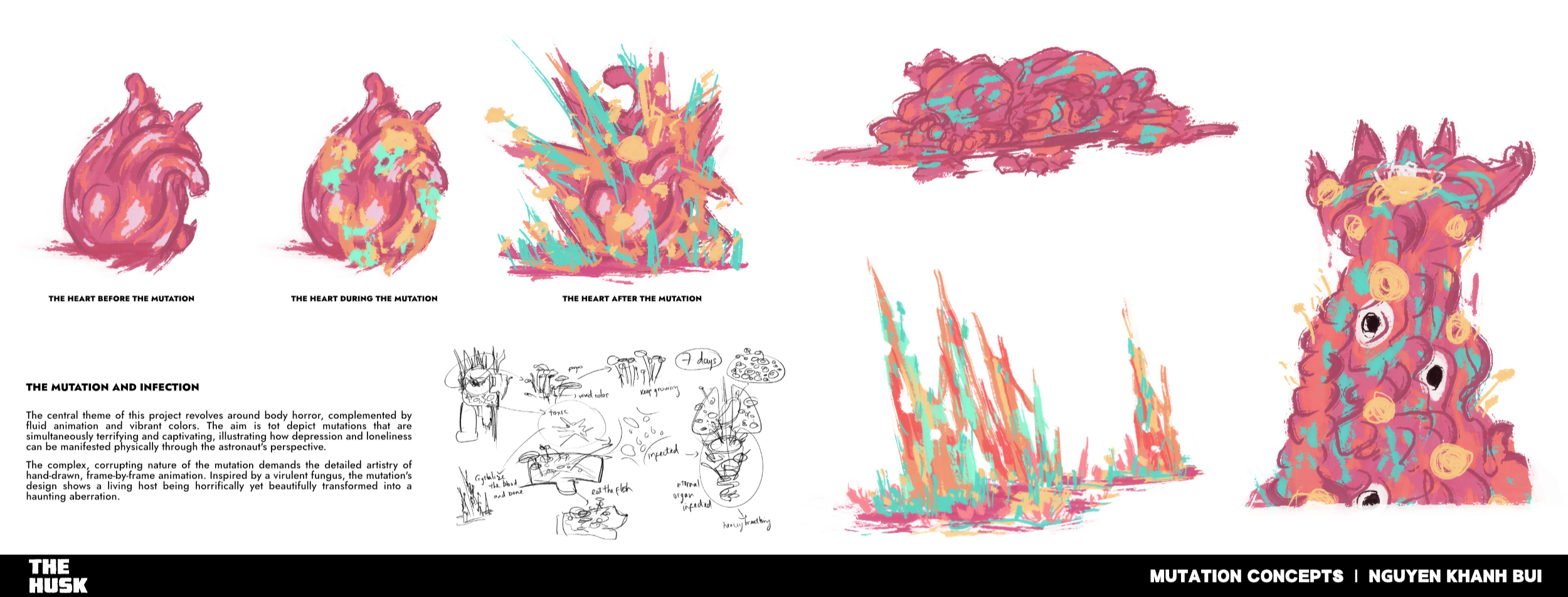 Synopsis: A stranded astronaut fights for survival on a hostile planet that warps his body and mind, tormented by a hidden entity that feeds on his suffering and loneliness in a twisted act of love. About: The 2D short animation, The Husk (2025), experiments with hand-drawn animation, utilizing its expressive art style to evoke cosmic dread and existential despair. By employing an unsettling atmosphere and symbolic imagery, The Husk strives to immerse audiences in an experience that is both visually striking and psychologically unnerving, depicting the danger of an isolated victim amidst the vast and unknown void of space.
