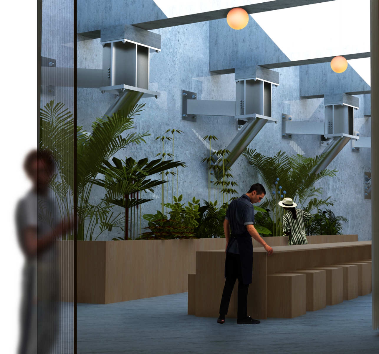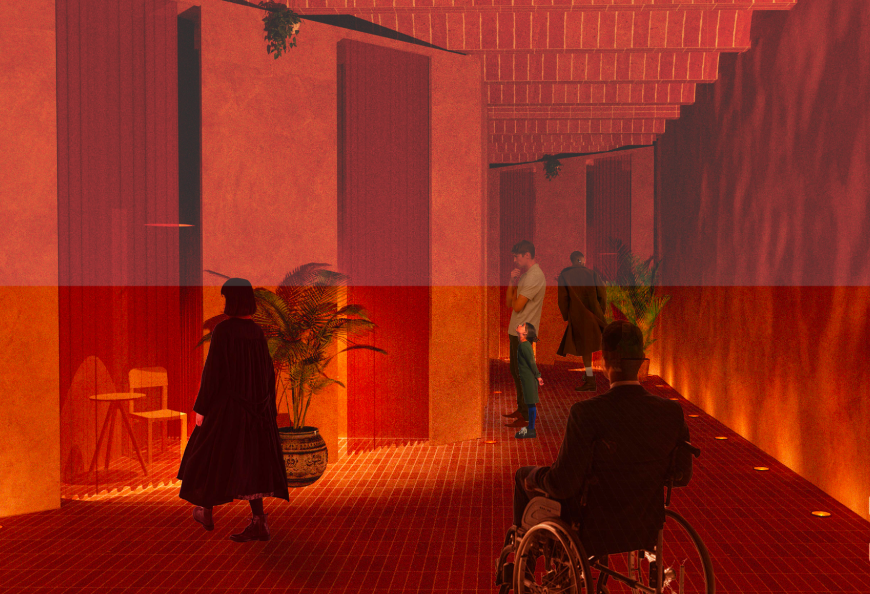 The world is currently facing a very real issue surrounding digitality and the magnitude of unmanageable problems beginning to arise due to the fast-paced evolution of technology -particularly generative A.I. In response to the chaos, The Search Engine presents itself as a permanent digital detox facility that focuses primarily on healing the body through unconventional means of rehabilitation -responding to the dark side of the digital age through a series of anatomically driven amenities that counter human disconnection. The 1km-long facility is designed to evolve in parallel with technological and societal developments, offering users eye-opening experiences that resonate with the complexities of our current digital landscape. Our human bodies represent the most authentic aspect of our existence; therefore, the body’s varying anatomical systems (nervous, respiratory, circulatory, digestive, skeletal), played a pivotal role in the development of the amenities, experience structure, and site analysis. The narrative of my project touches upon this topic with a gentle hand, placing the body front and centre through a series of dreamlike photographs. Alongside this, the majority of my design process was conducted through an analogue lens, in an effort to ground myself back to planet Earth while producing digital renders and plans. I found myself in a technological paradox -struggling to detach from my own devices while trying to design a space meant for detox. As the user journey begins, the first 600 metres of the Botanic Gardens Railway tunnel is transformed into an oddly familiar memory. The colours used are a whirlpool of shades from nostalgic photos, presented in a highly digital design language. It's not until we travel through the 1km, we eventually transition into greenery, completing the detox. This project stemmed from a desire to feel again. All I ask is that you remember my attempt at grasping the devastatingly beautiful essence of humanity when we finally succumb to the digital age. In the absence of the smartphone, who will we become?