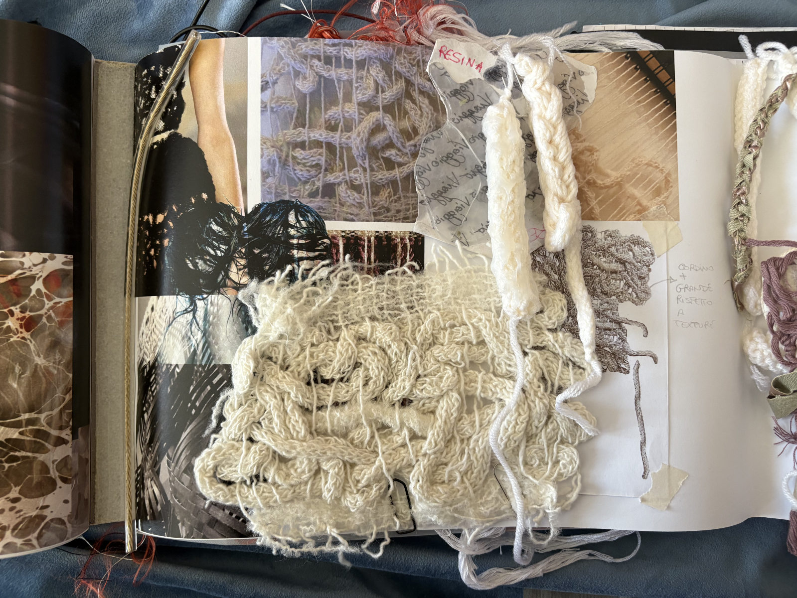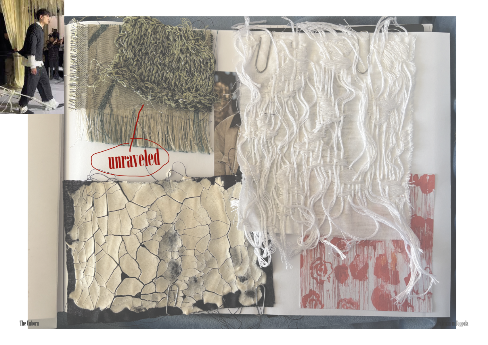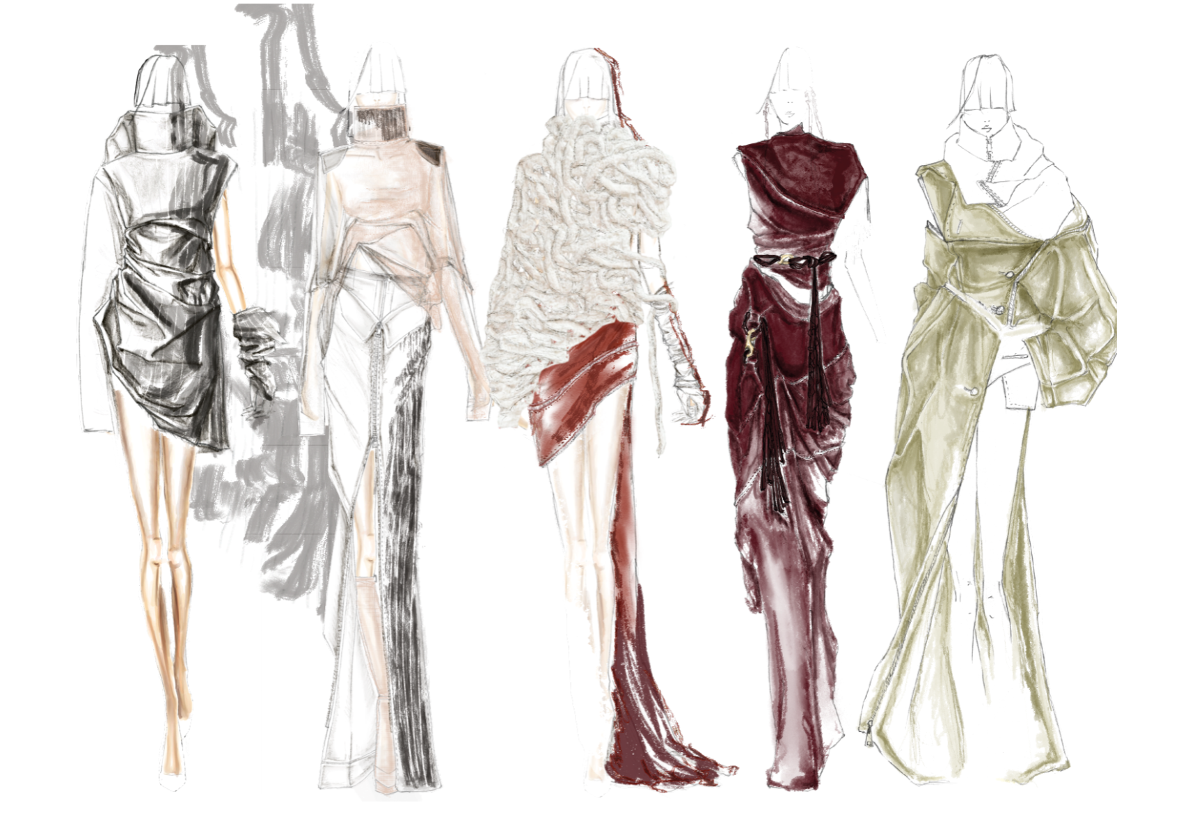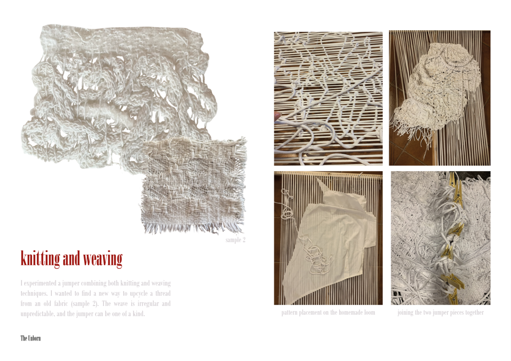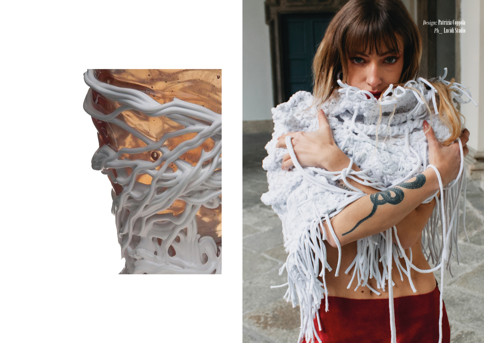 ‘The Unborn: Gestational Modernity’ is rooted in a reflection on contemporary society, inspired by Z. Bauman’s concept of Liquid Modernity. But, in a world marked by uncertainty and constant transformation, the fluid is perceived not as a loss of values but as a fertile environment: an amniotic fluid from which new forms, identities, and values can be born. As a result, the fabrics are manipulated to achieve a more fluid appearance, through draping or unraveling them. The collection embodies this transitional phase: a gestational modernity where everything changes and is going to be defined. So the garments are wearable in different ways, letting anyone to find their own style, through the use of zippers and cords. The garments includes Lineapelle deadstocks and the upcycling use of textile scraps. Visual inspirations range from pictures of exhibitions, contemporary art and vases to the moulting of the snake as a symbol of rebirth.